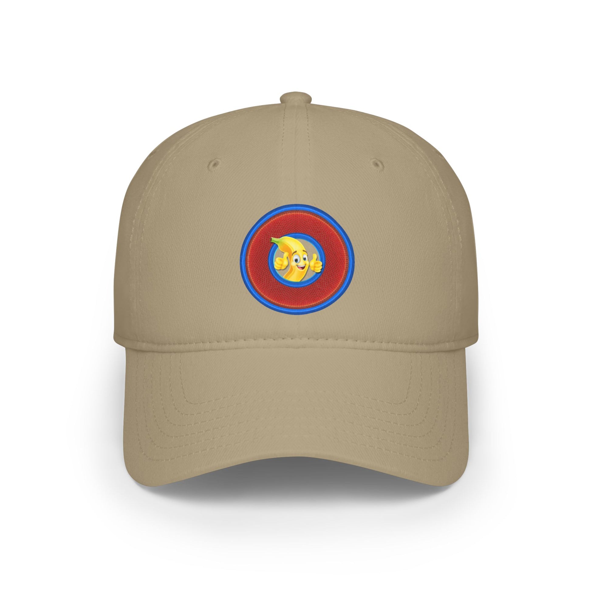 Lumpy Donut Baseball Cap - "This Donut Hat is Bananas" - variant 1 - rustic red donut w/