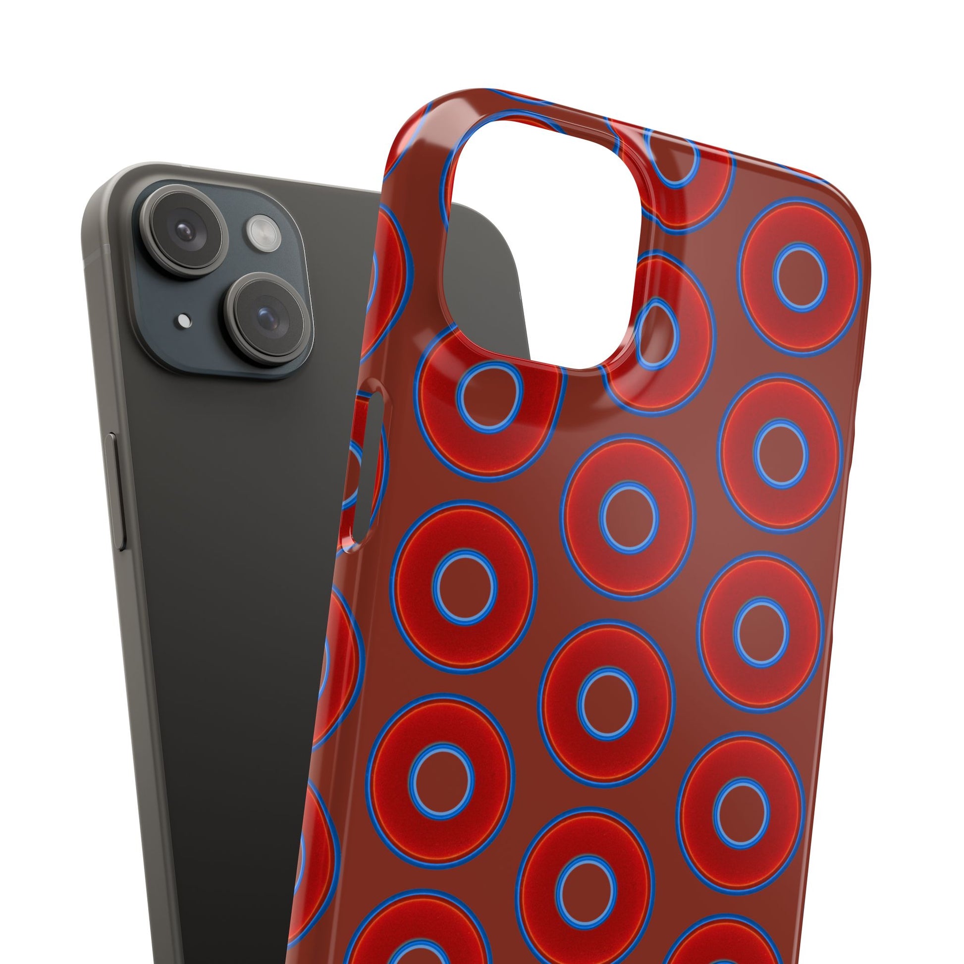 Lumpy Donut Snap Case - red vivid donut print w/burnt umber background