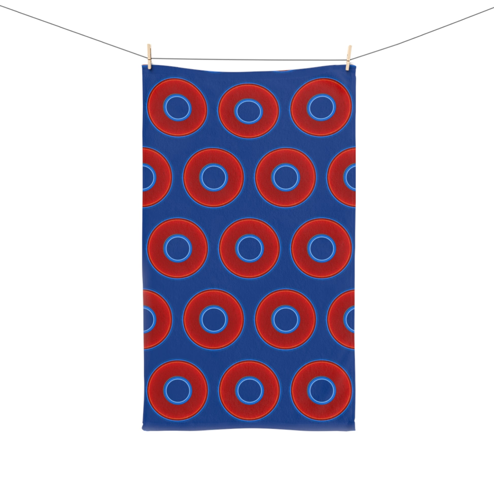 Lumpy Kitchen/Hand Towels - vivid red donuts w/dark blue background
