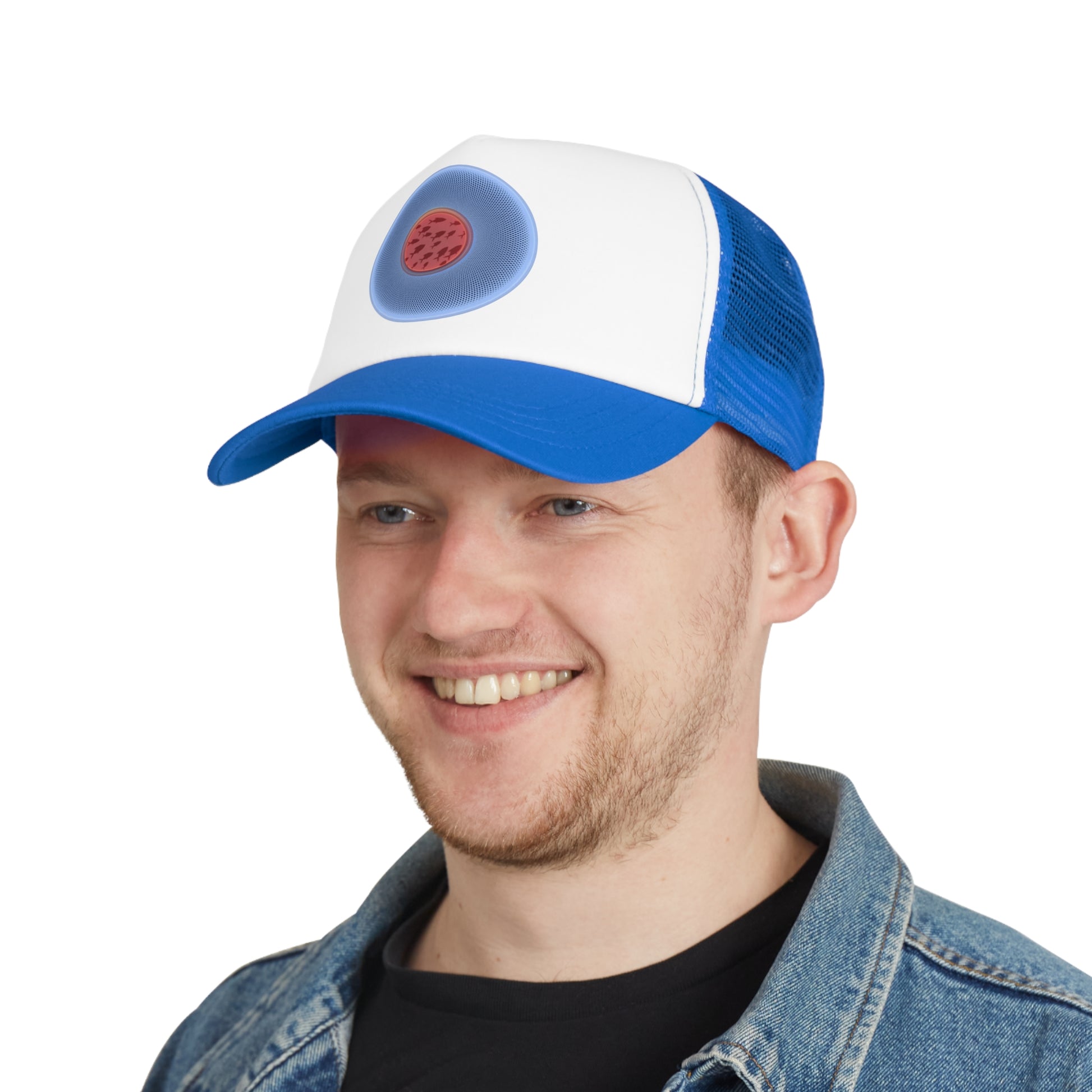 Lumpy Trucker Hat - "Donut Pastels Skool of Phishies" - variant 2 - baby blue/red