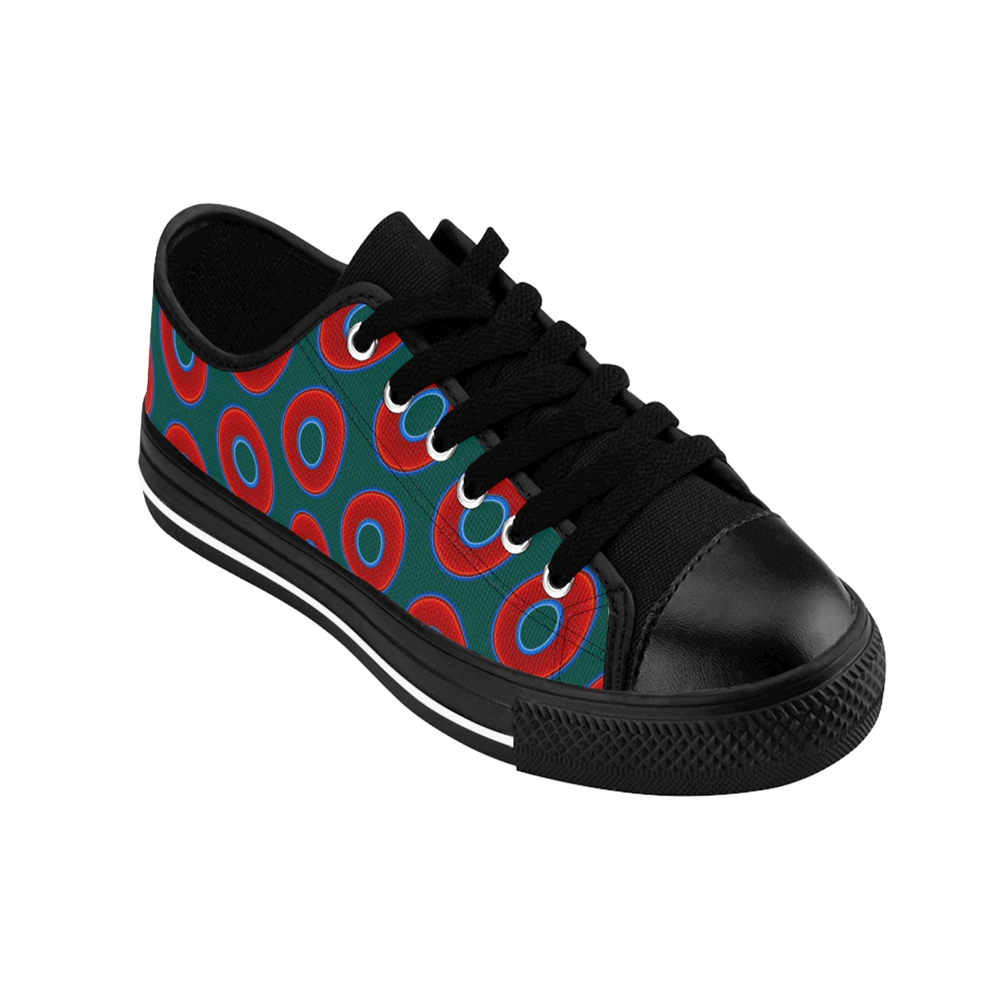 Men's Cushiony Convectors - Low Top - large red vivid donut print w/steel green background