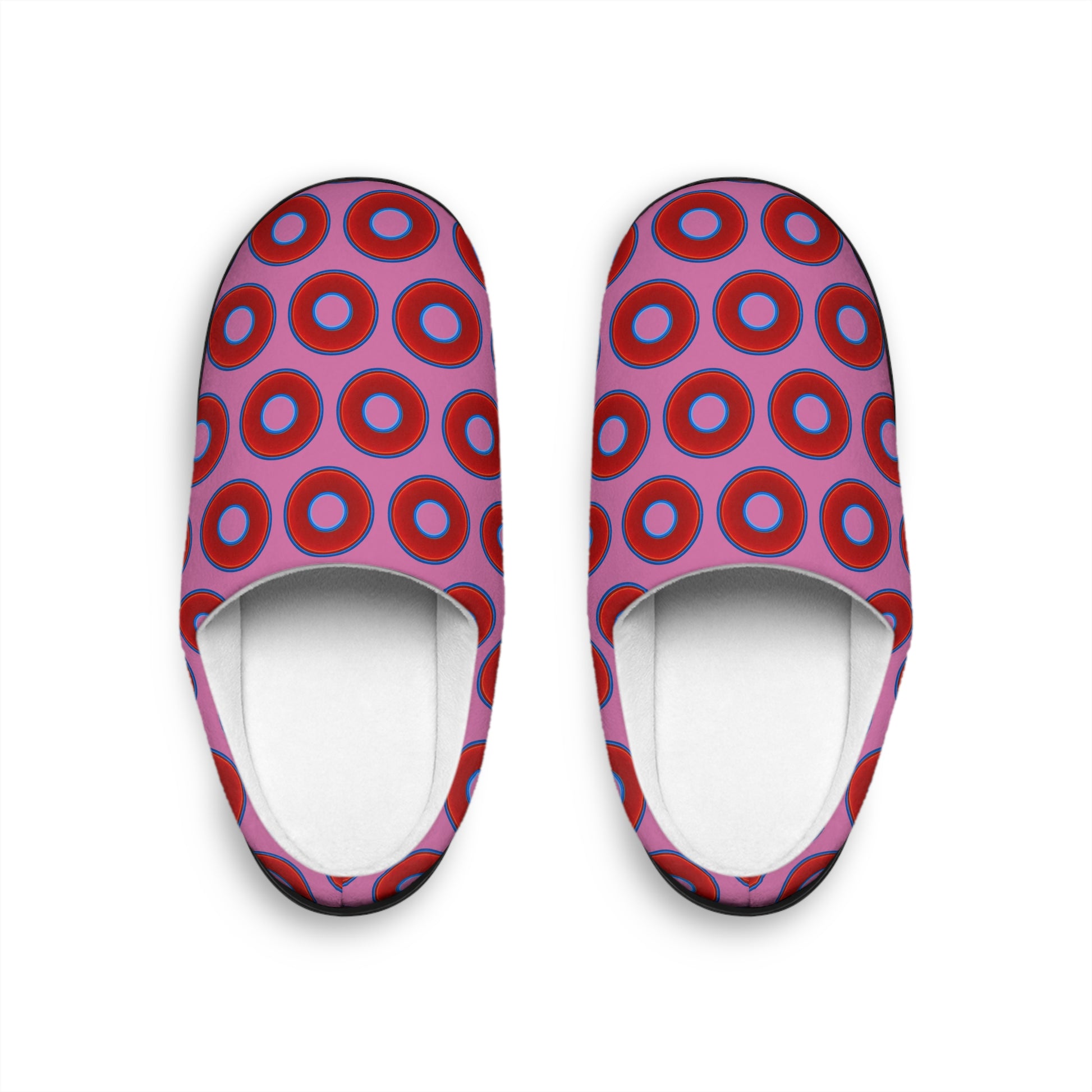 Men's Lumpy Slippers - red vivid donut print w/pink background