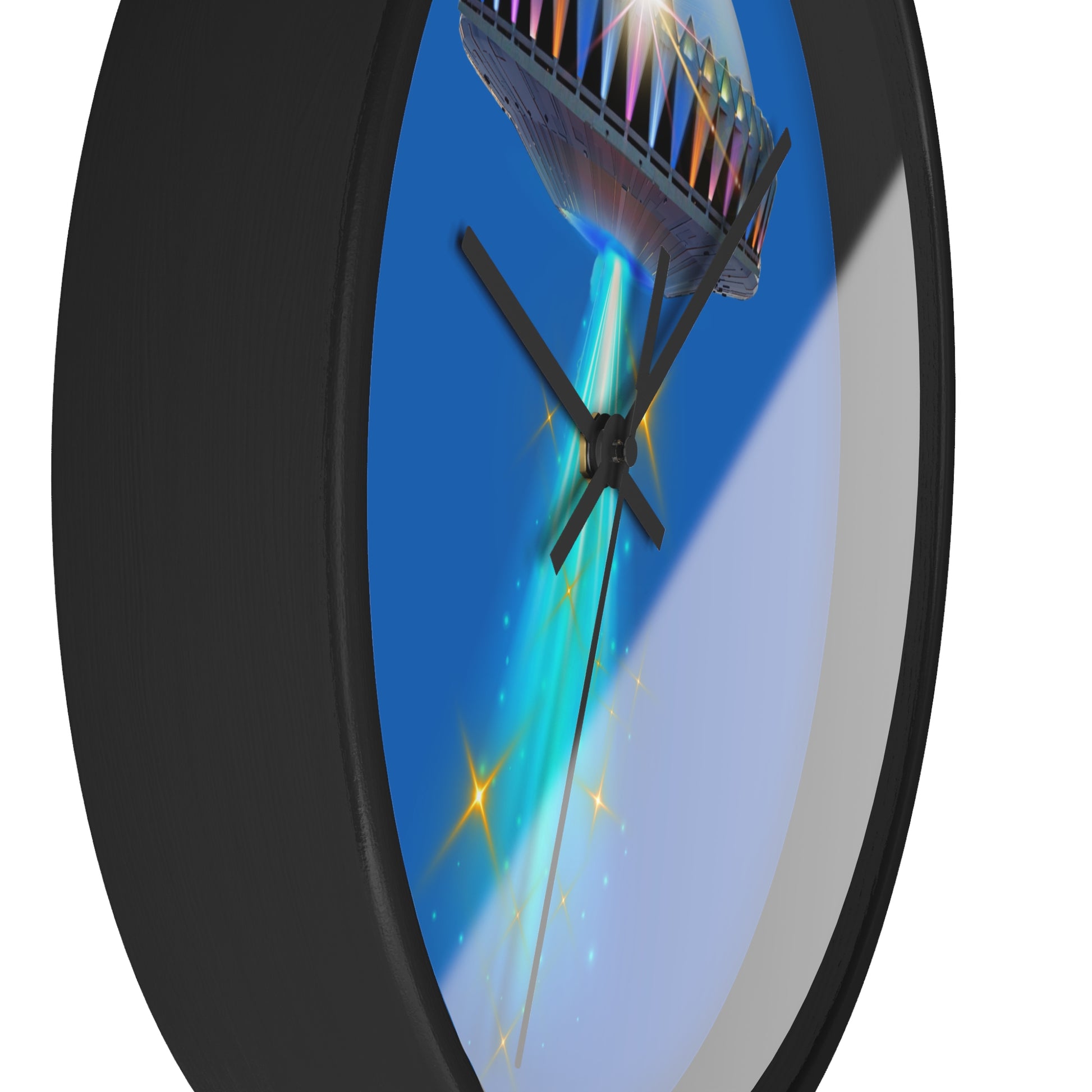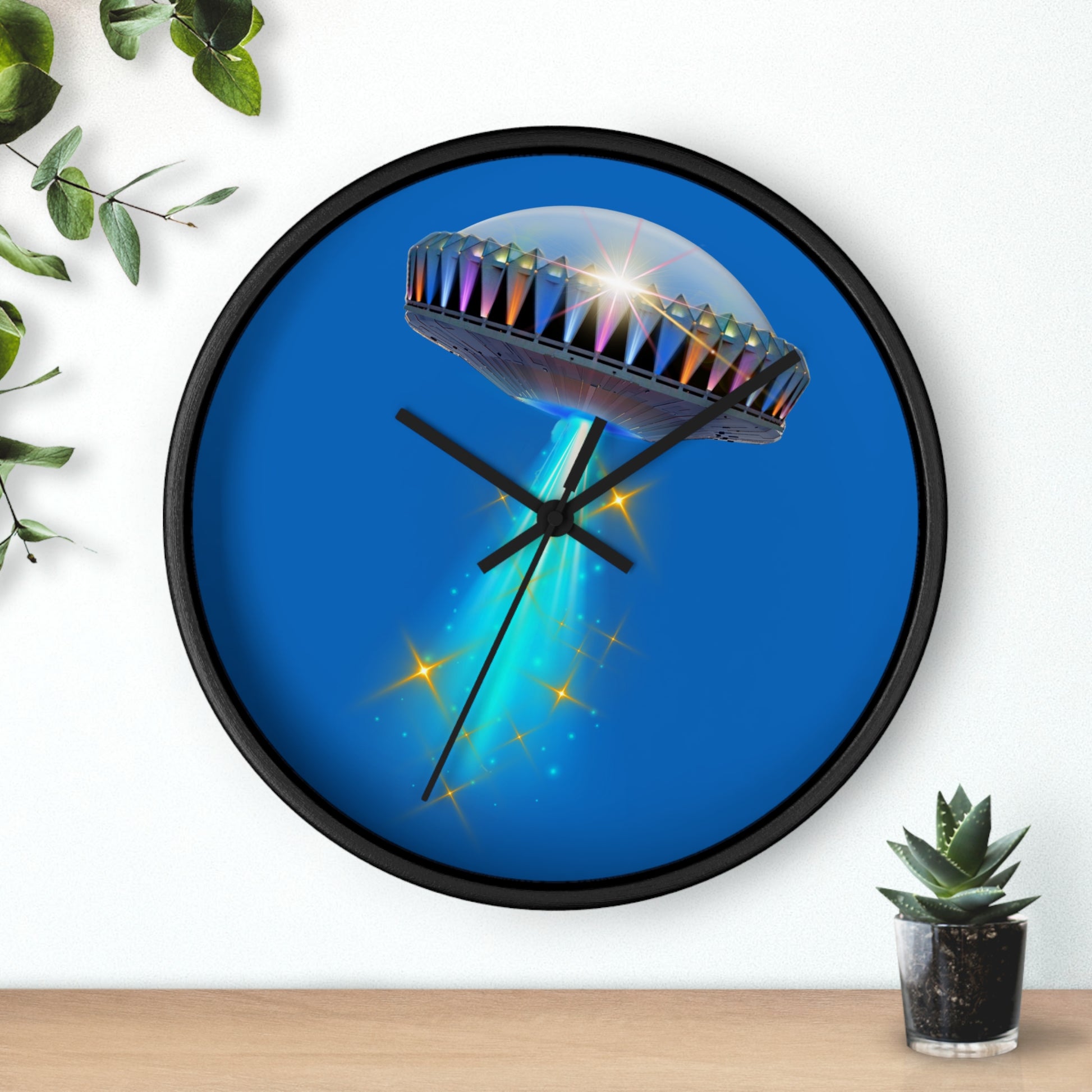 Lumpy Wall Clock - "They Serve Donuts on the Mothership now" - variant 6- mothership & donut w/dark royal blue background
