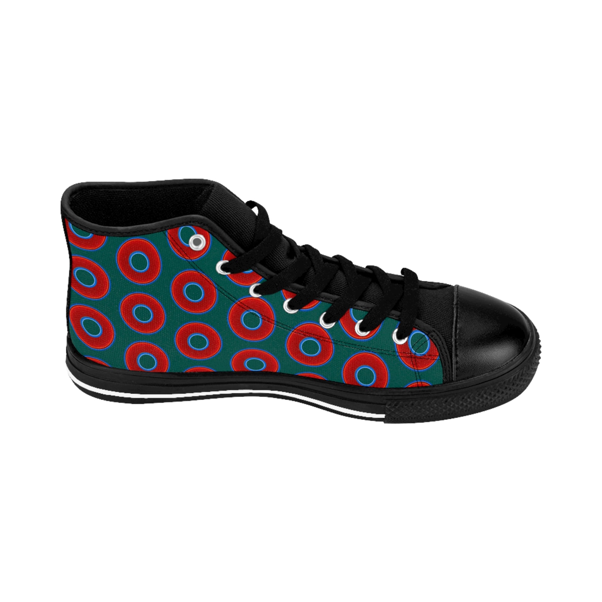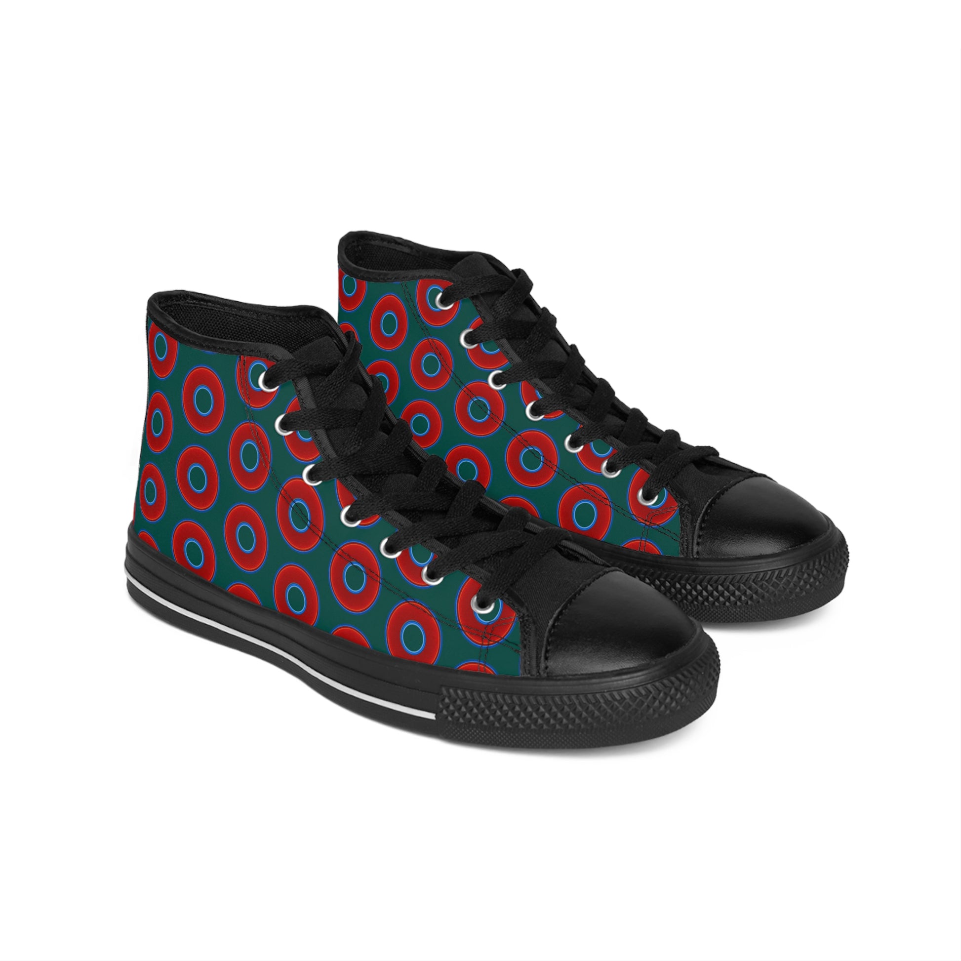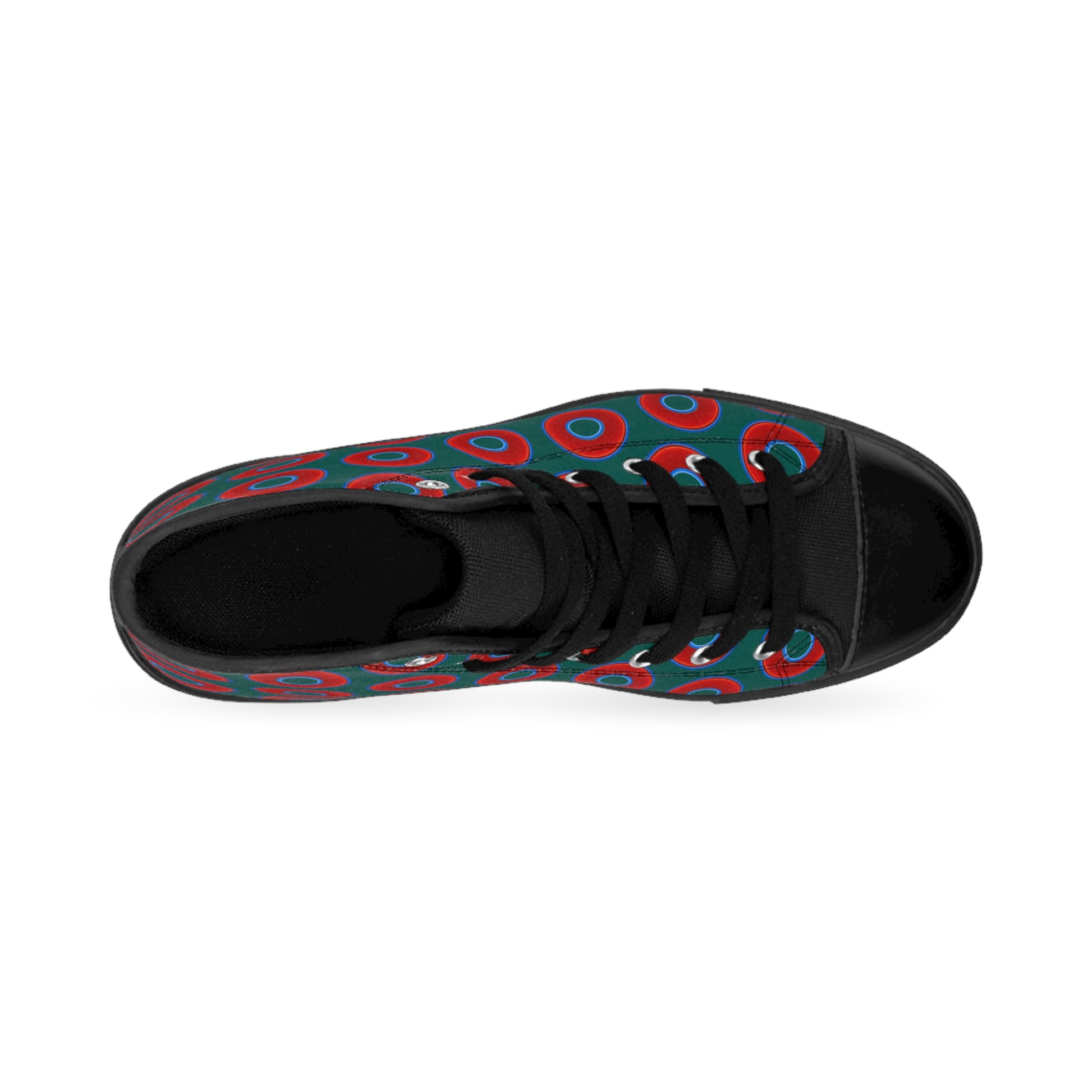 Cushiony Convectors - High Tops - red vivid donuts w/dark Fenway green background