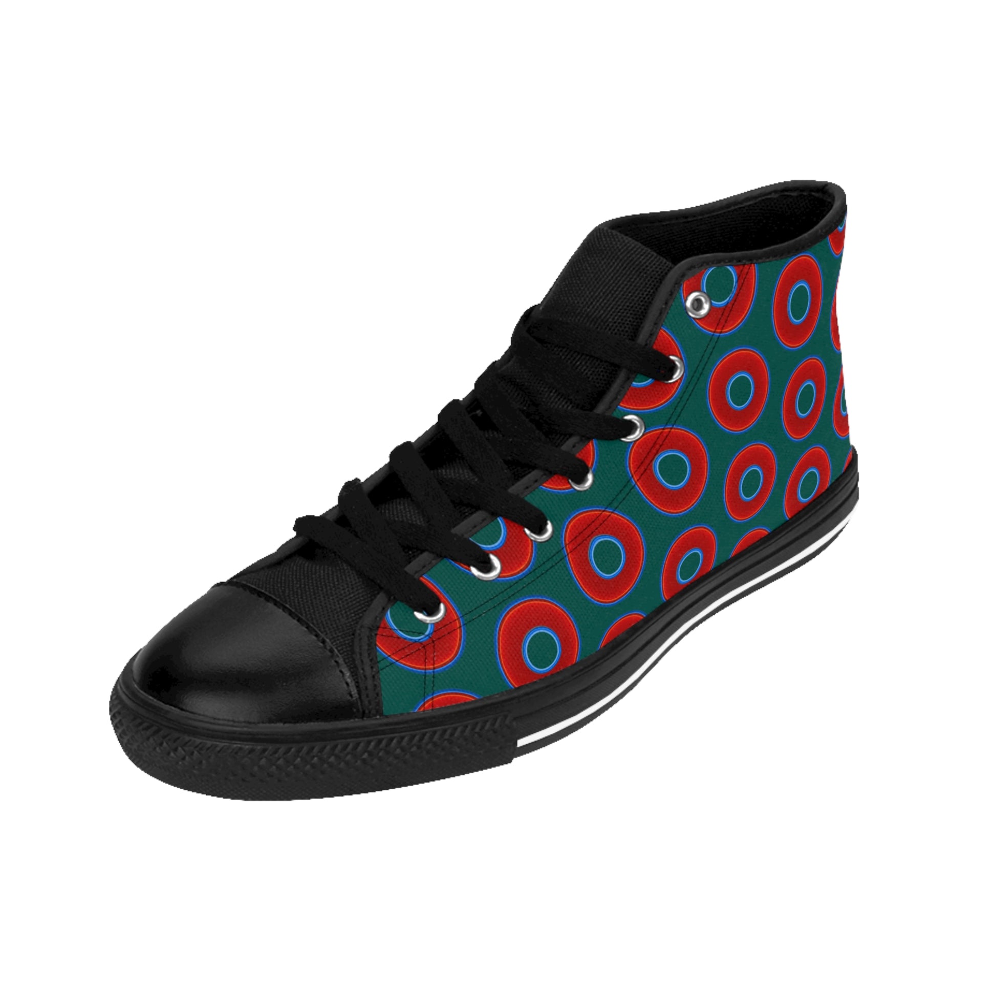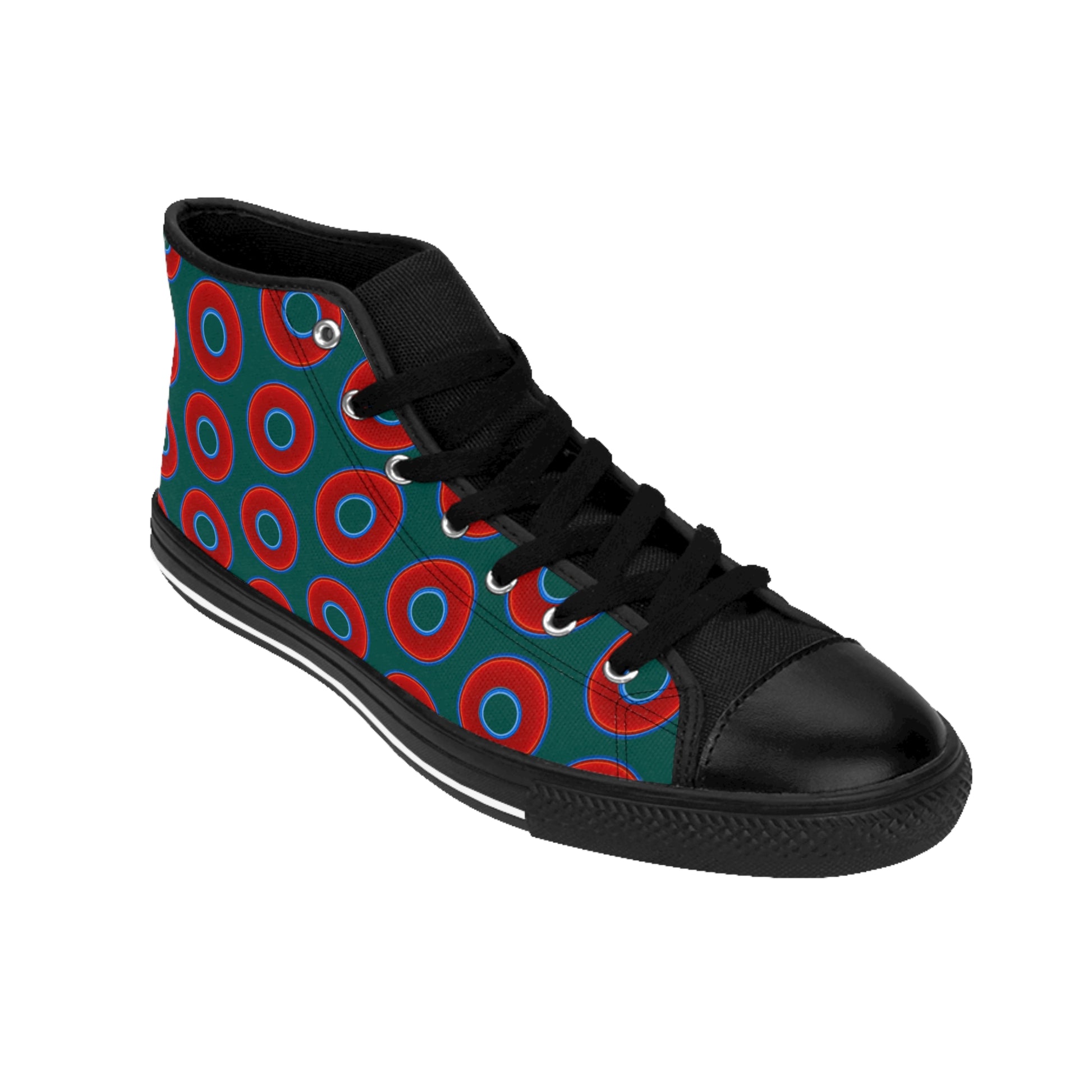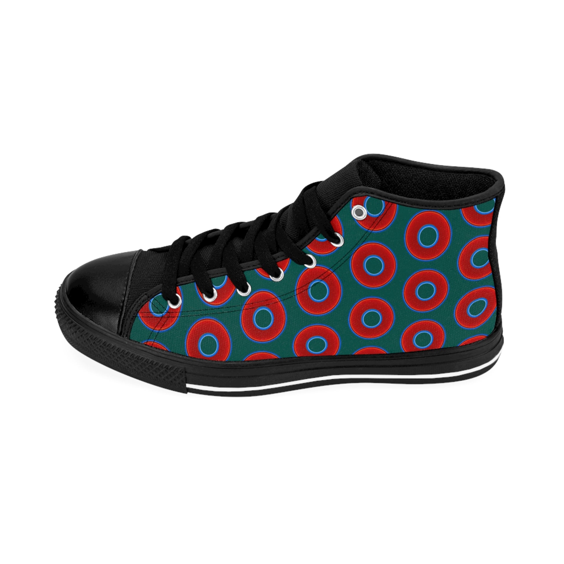 Cushiony Convectors - High Tops - red vivid donuts w/dark Fenway green background