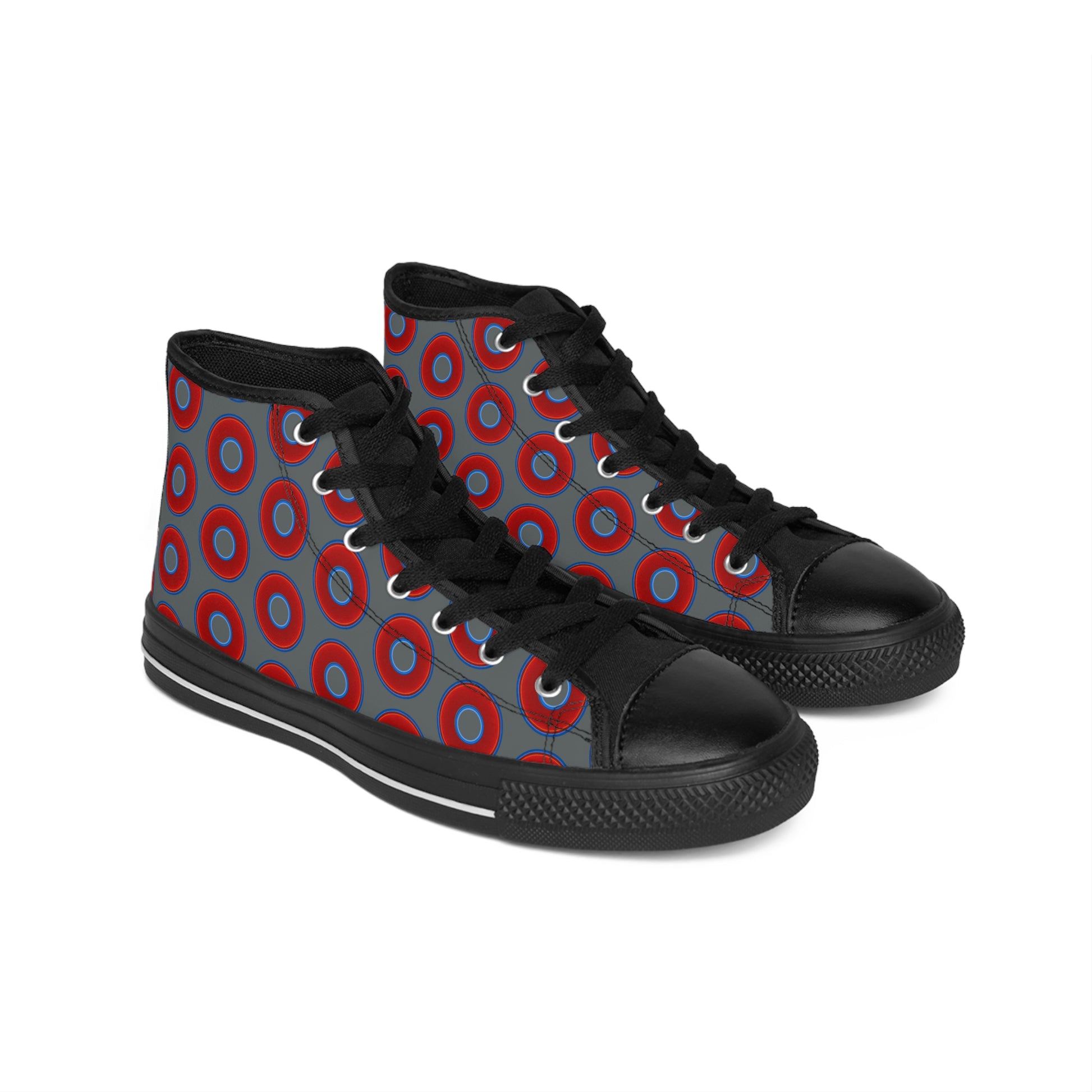 Cushiony Convectors - High Tops - red vivid donuts w/dark gray background