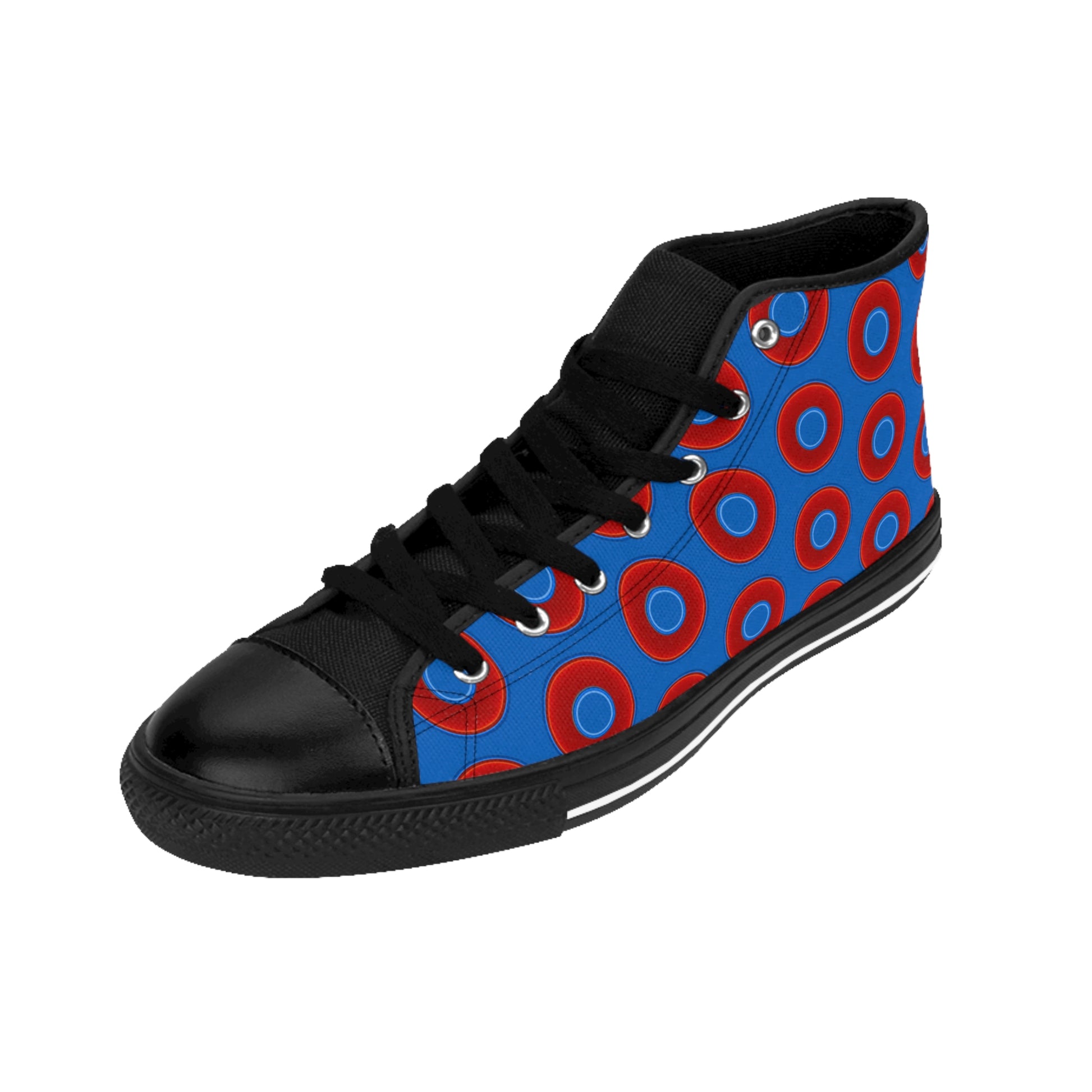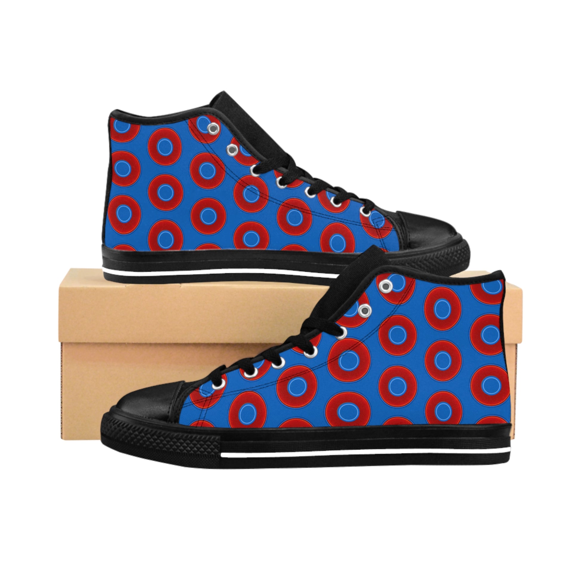 Cushiony Convectors - High Tops - red vivid donuts w/dark royal blue background
