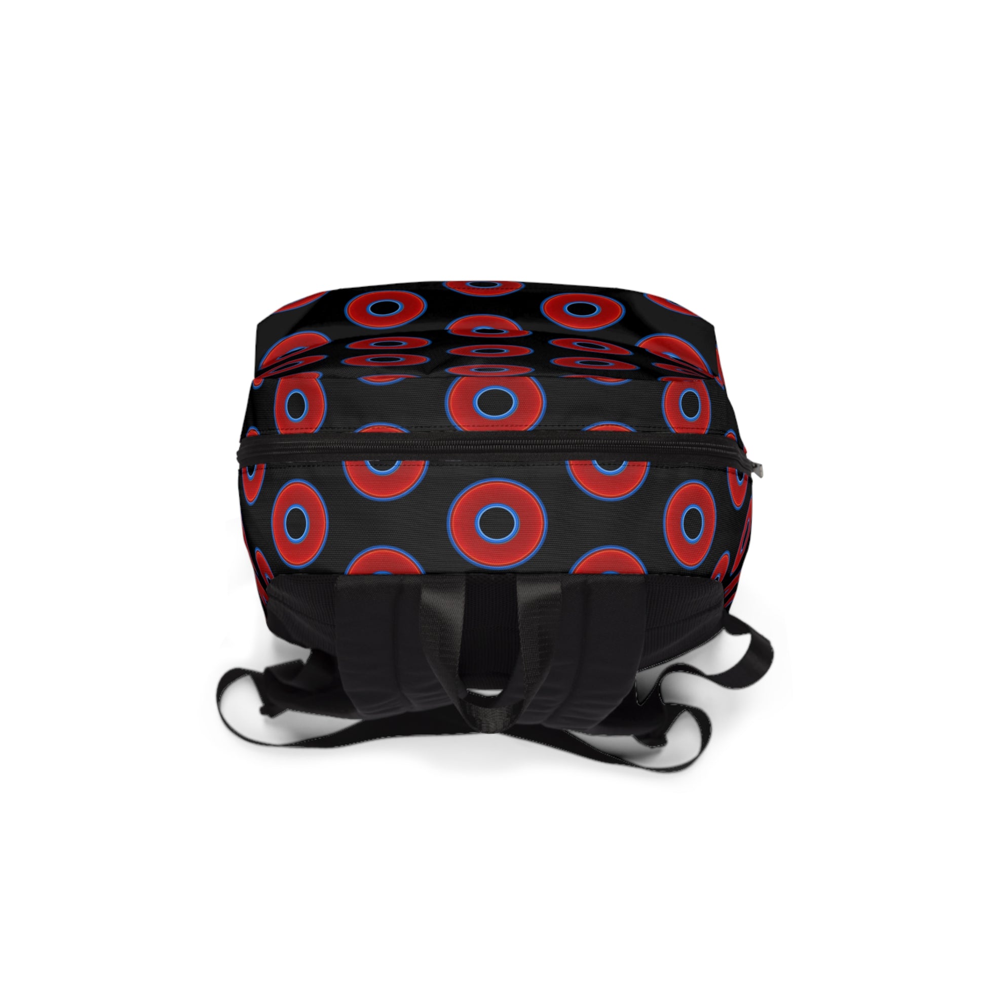Donut Backpack - red vivid donuts w/black background