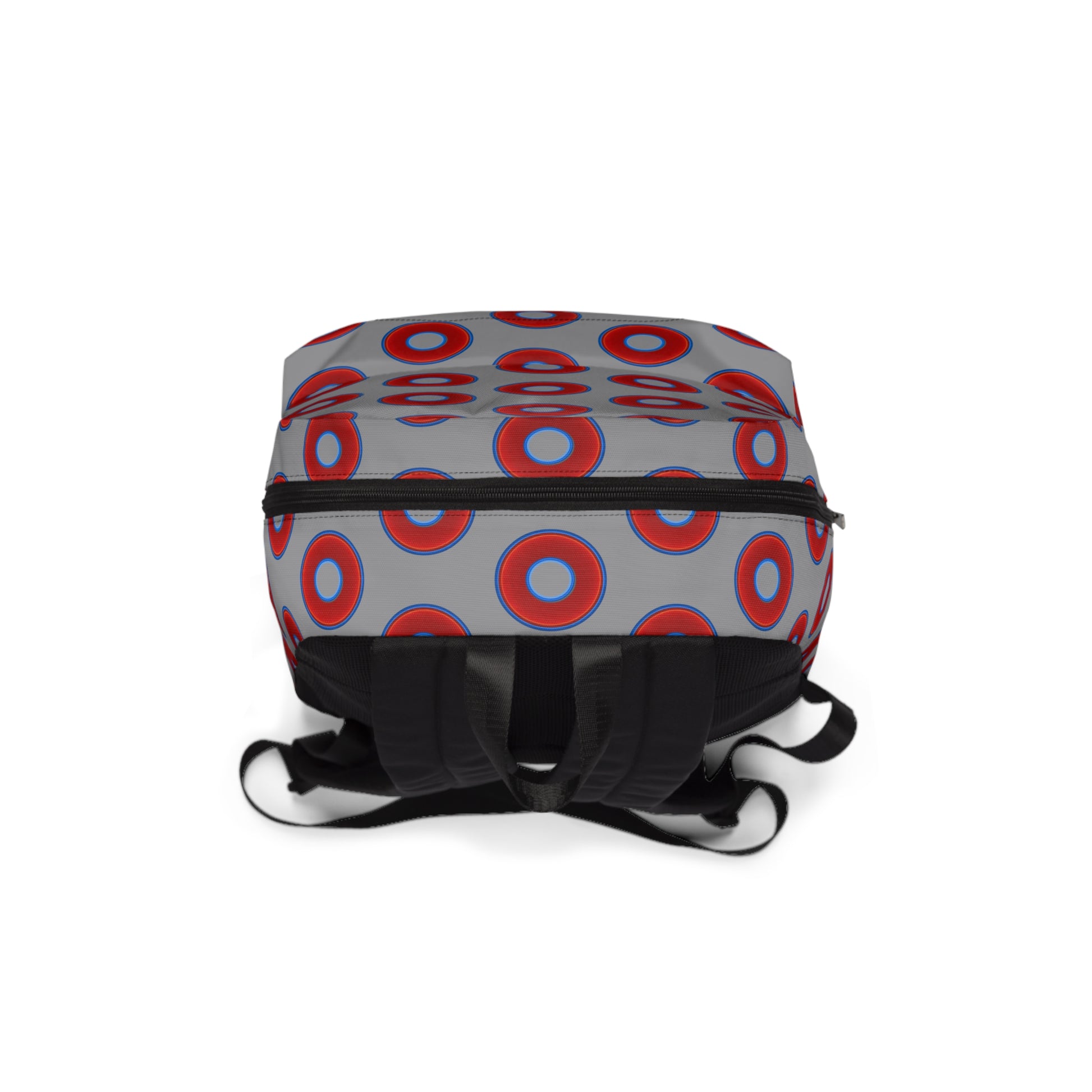 Donut Backpack - red vivid donuts w/gray background