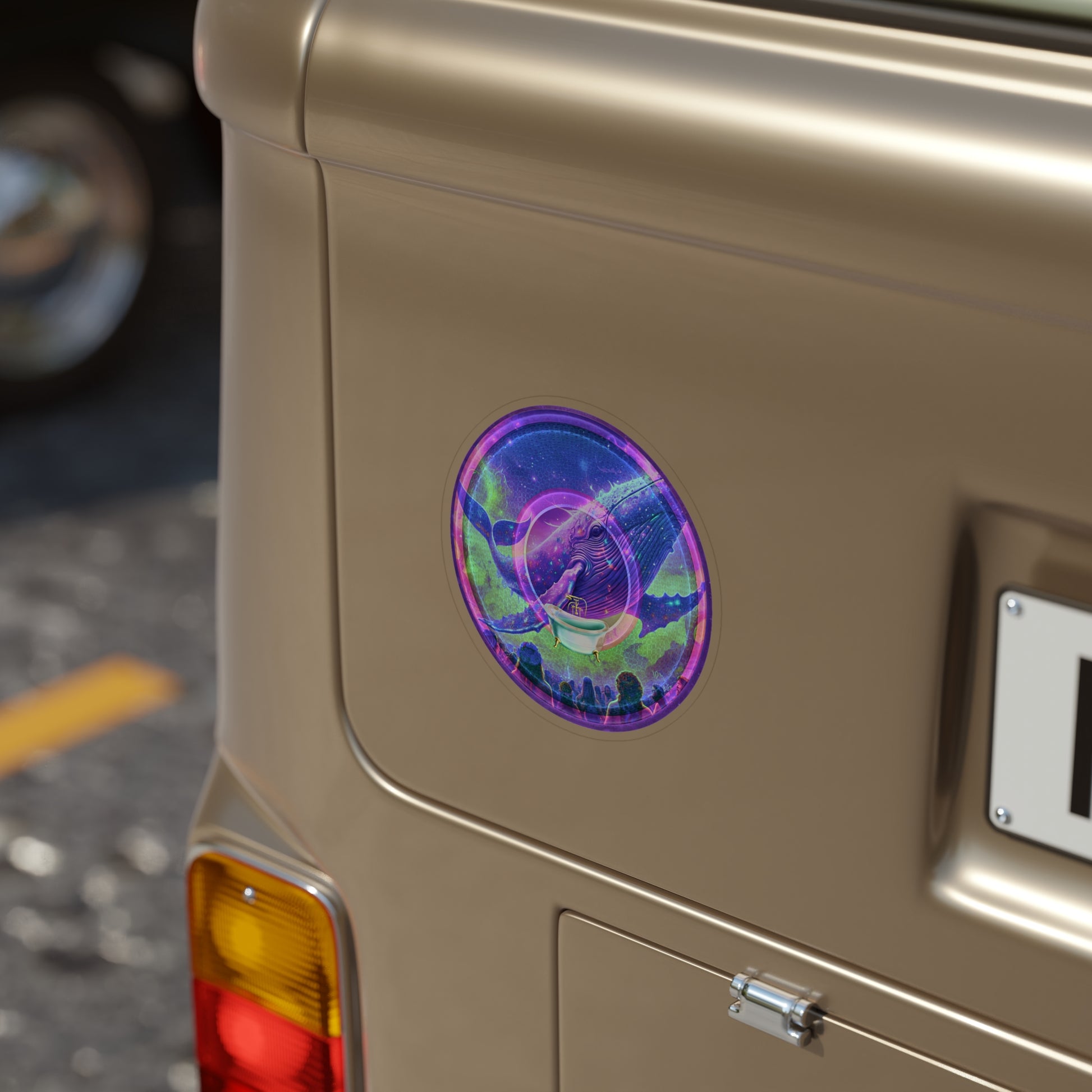 Donut Bumper/Outdoor Sticker - "A Purple Humpback Whale of a Good Time" - series 1.0 - variant 2 - purple picture donut - [Die-Cut] 6"x 6"