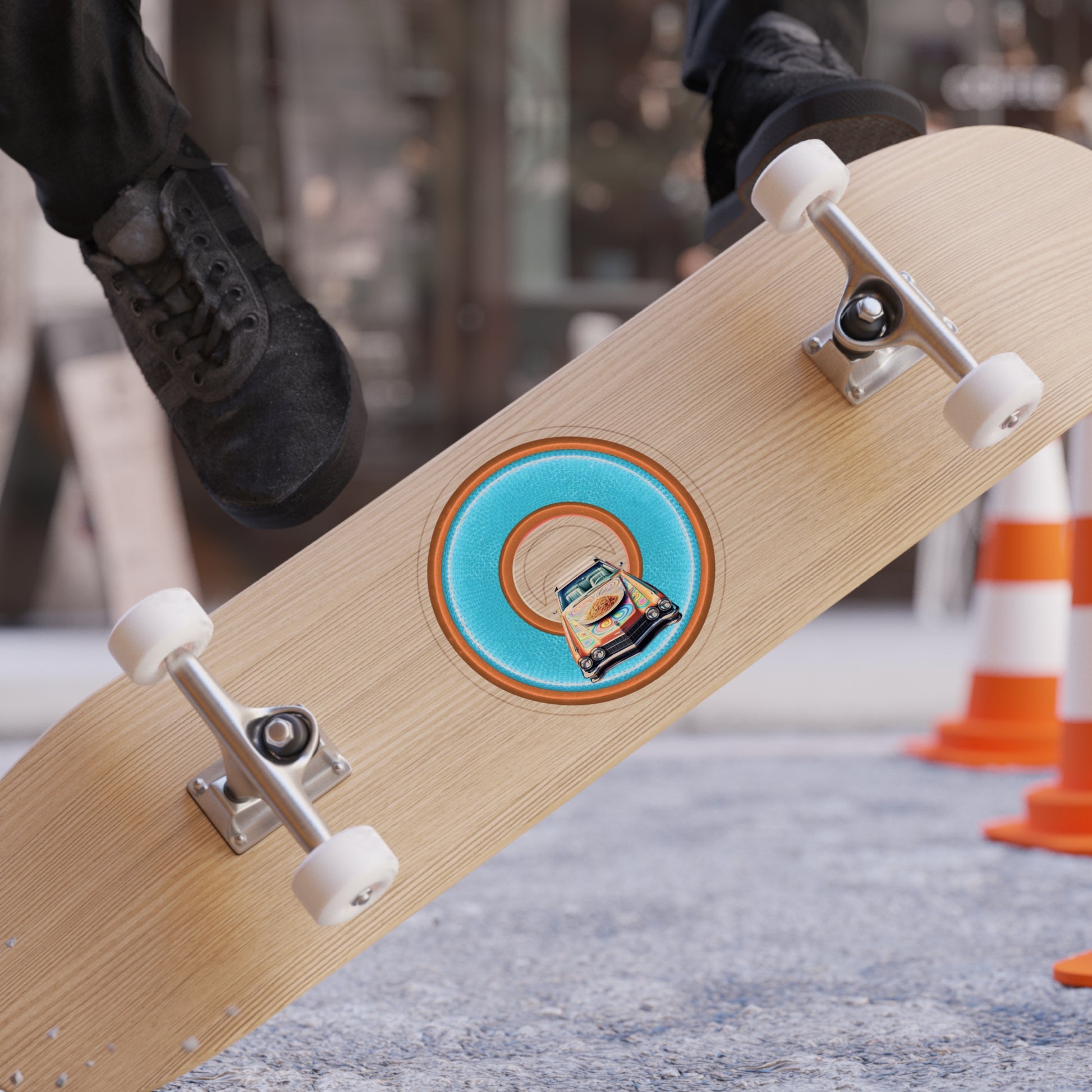 Donut Bumper/Outdoor Sticker - "Cadillac Rainbows & Eating on the Run" - series 1.0 - variant 1 turquoise/orange donut - [Die-Cut] 6"x 6"