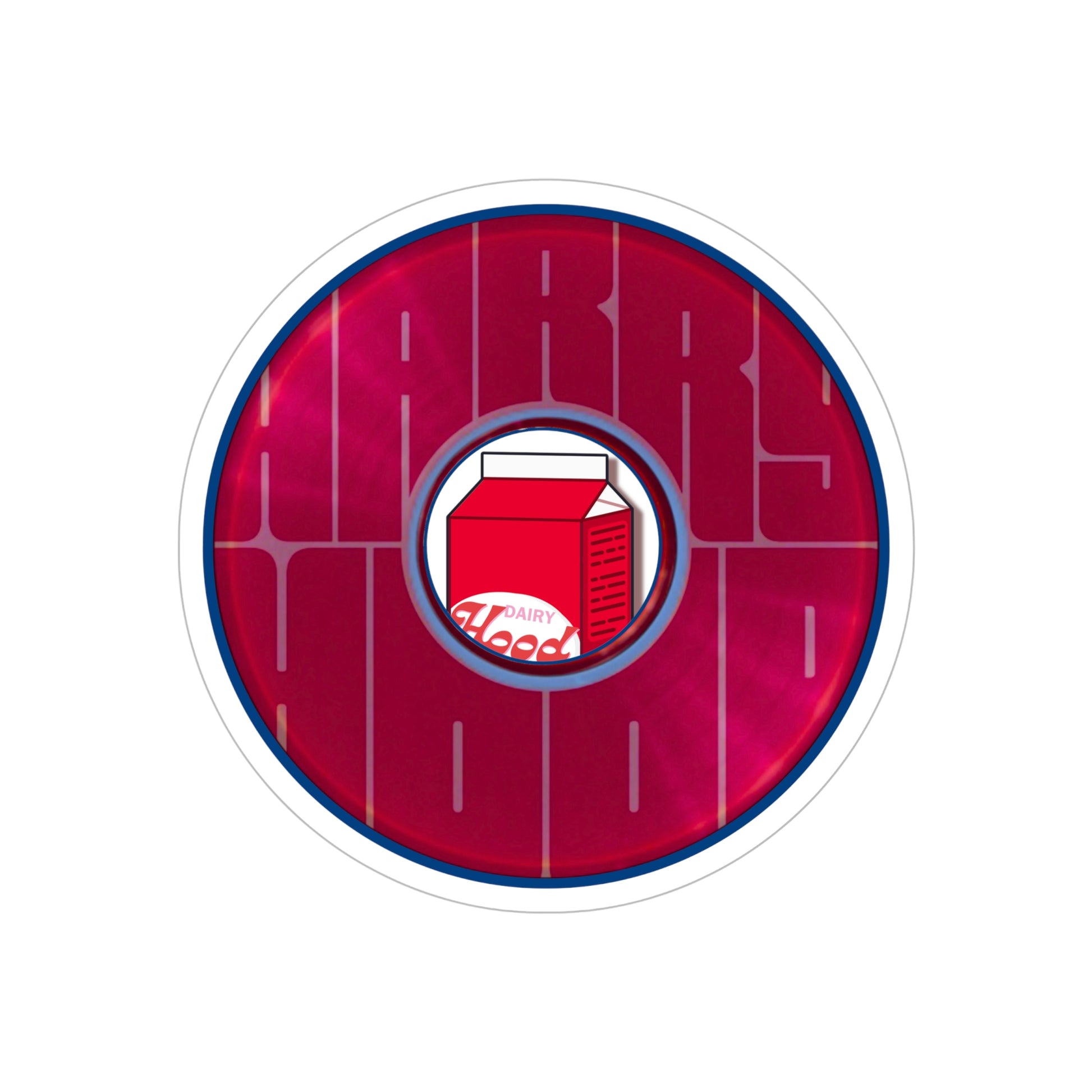 Donut Bumper/Outdoor Sticker - "Harry's Unofficial Bumper Sticker" - series 1.0 - variant - 2 - red/magenta donut w/milk - [Die-Cut] 6"x 6"