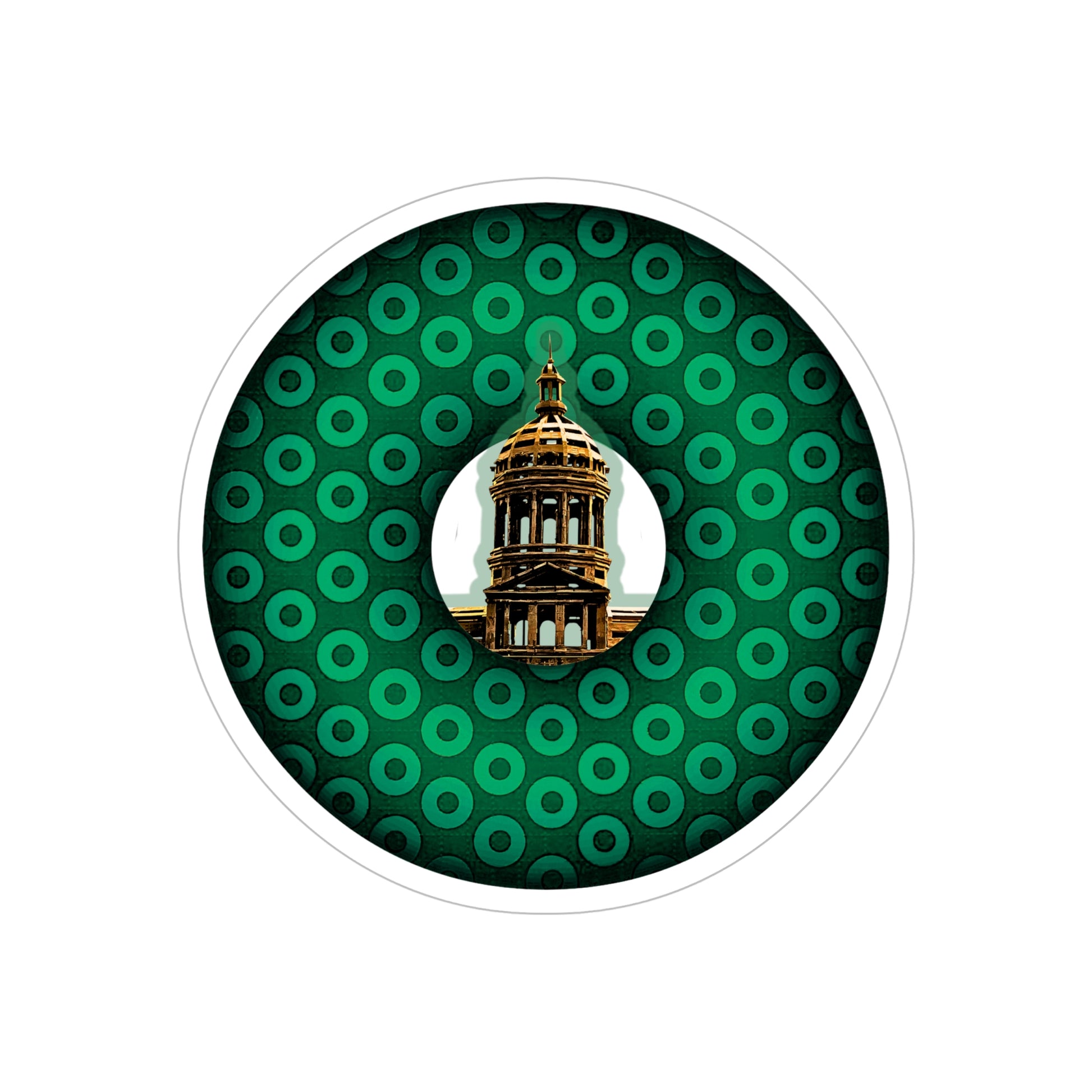 Donut Bumper/Outdoor Sticker - "Save the Mondegreen City Hall Clock Tower Donut" - variant 1 - green paradoxical donut - [Die-Cut] 6"x 6"