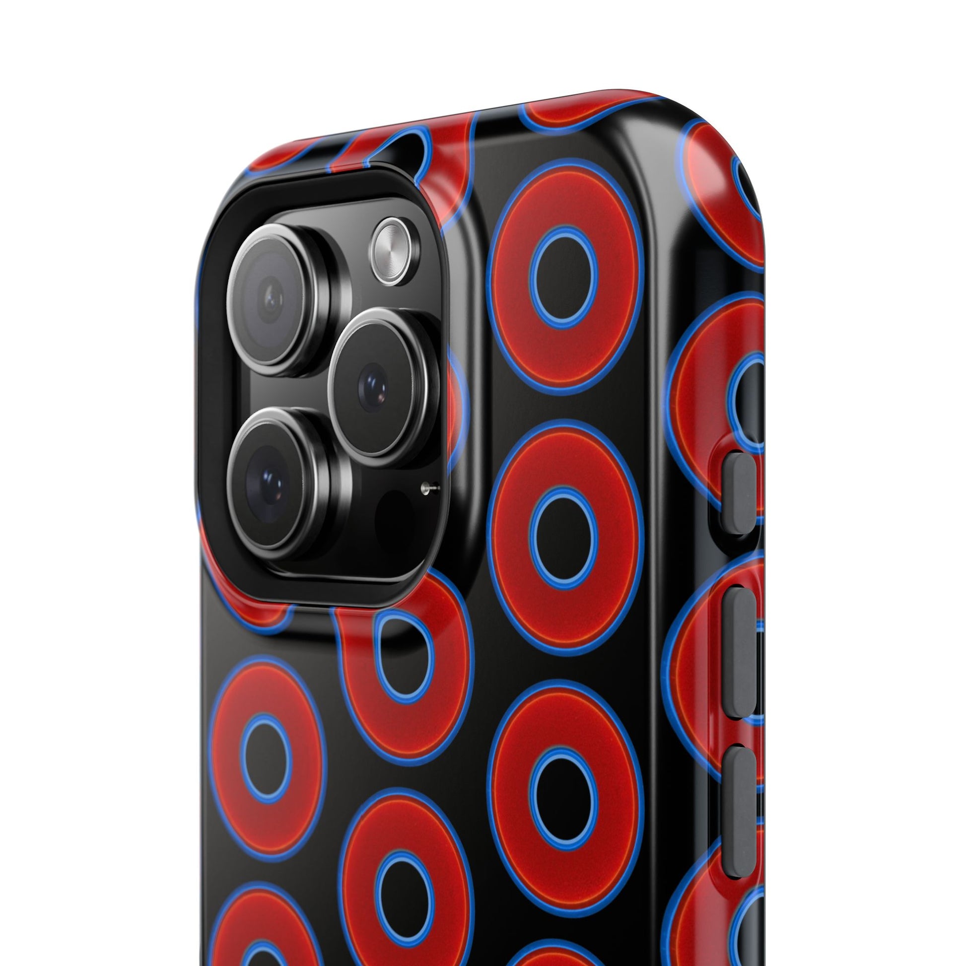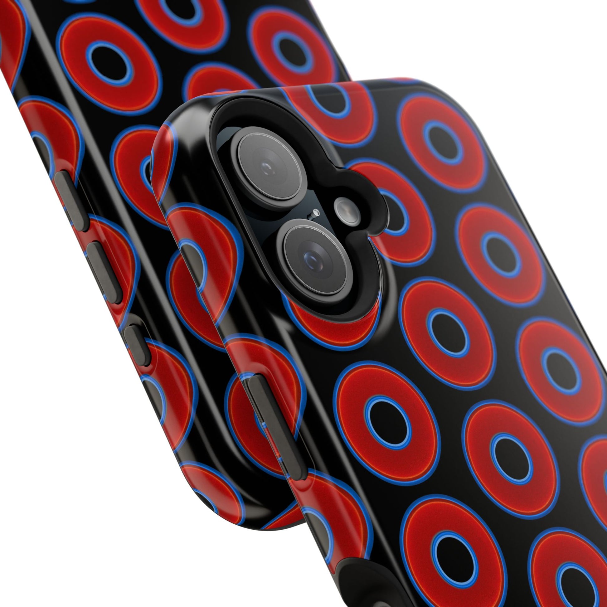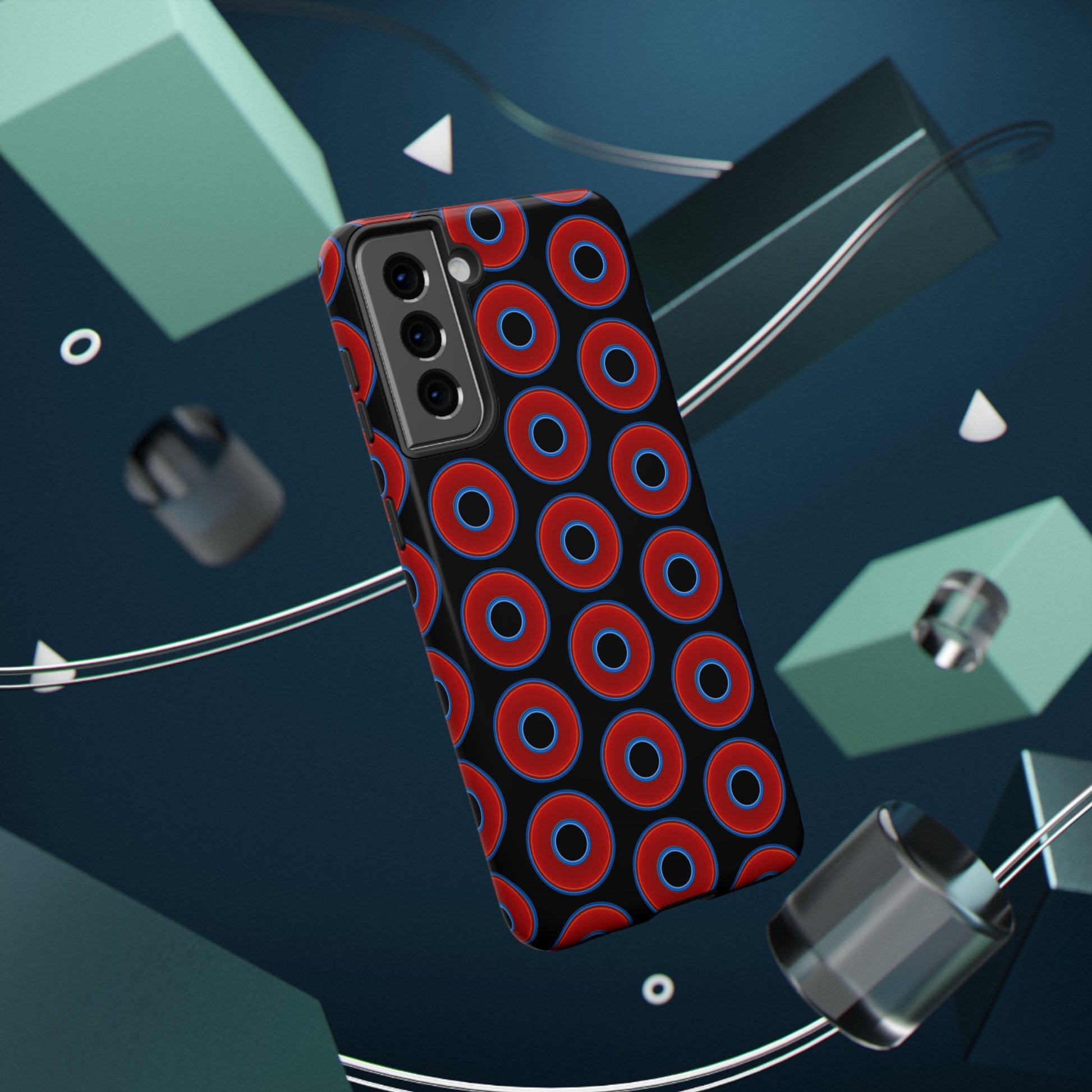 Impact-Resistant Lumpy Donut Case - red vivid donut print w/black background