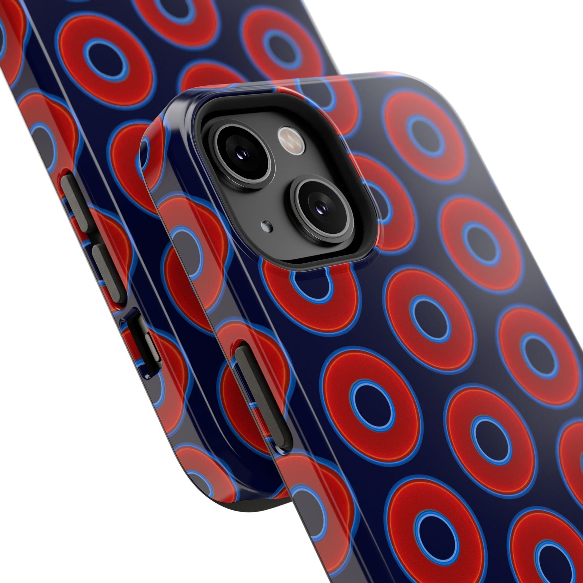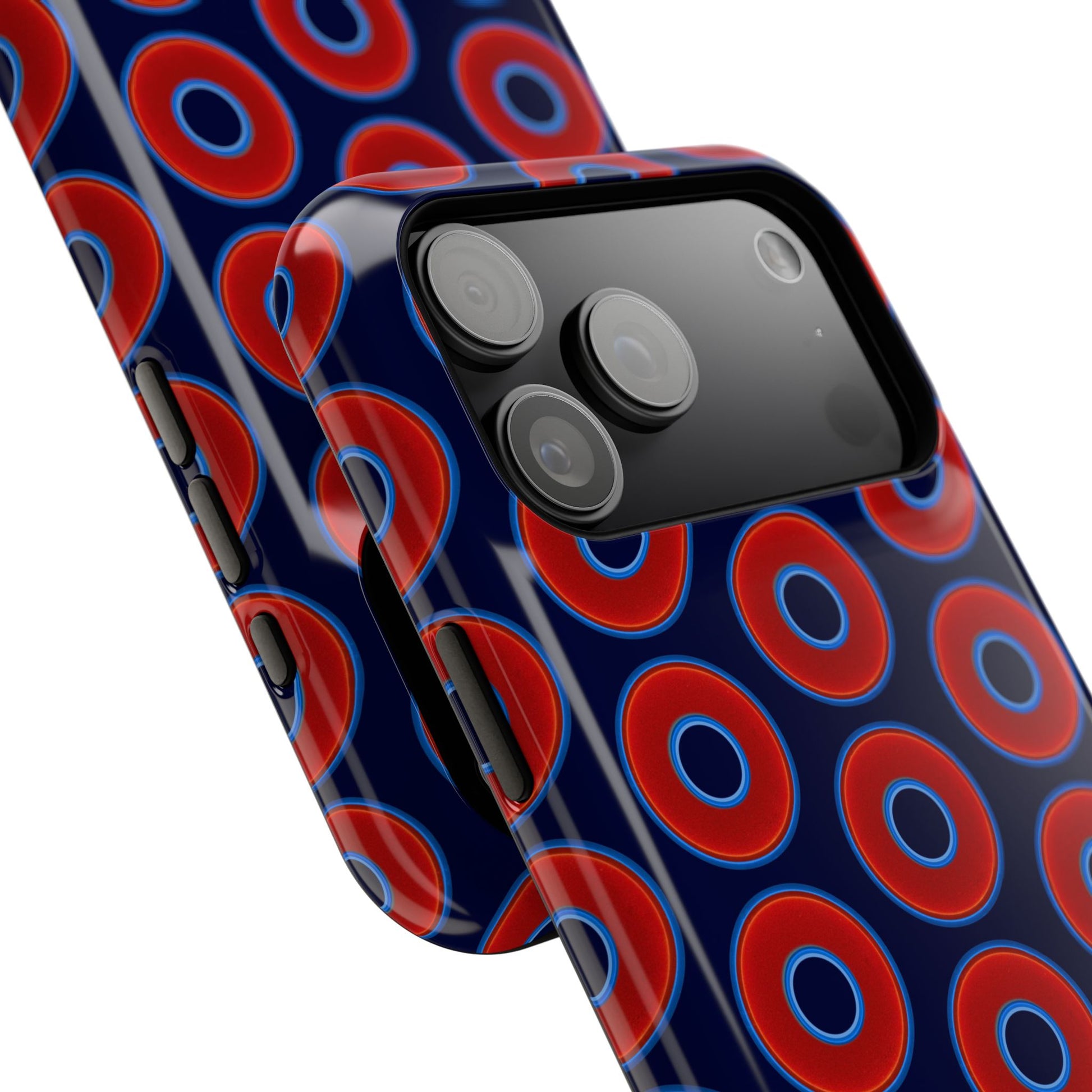 Impact-Resistant Lumpy Donut Case - red vivid donut print w/dark navy blue background