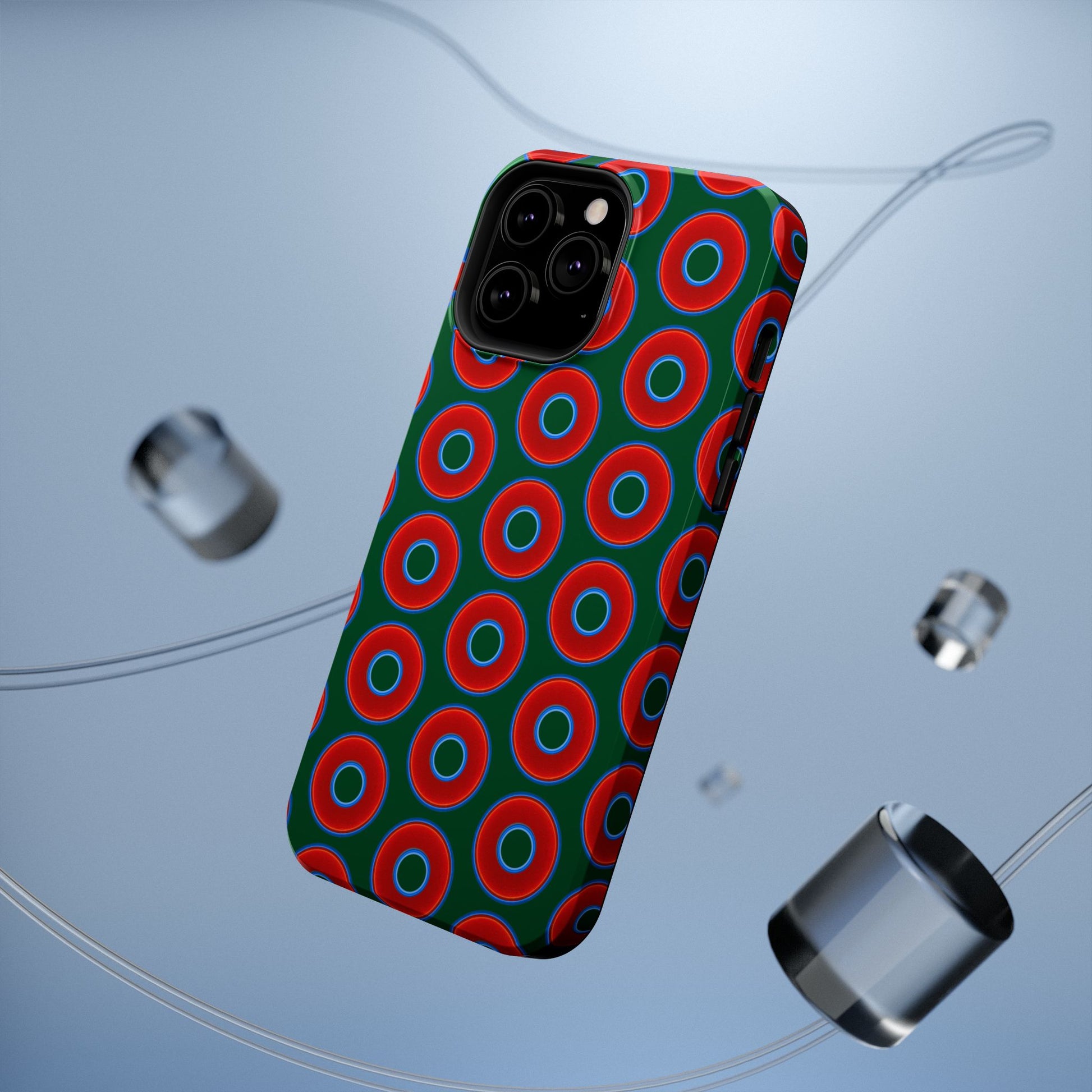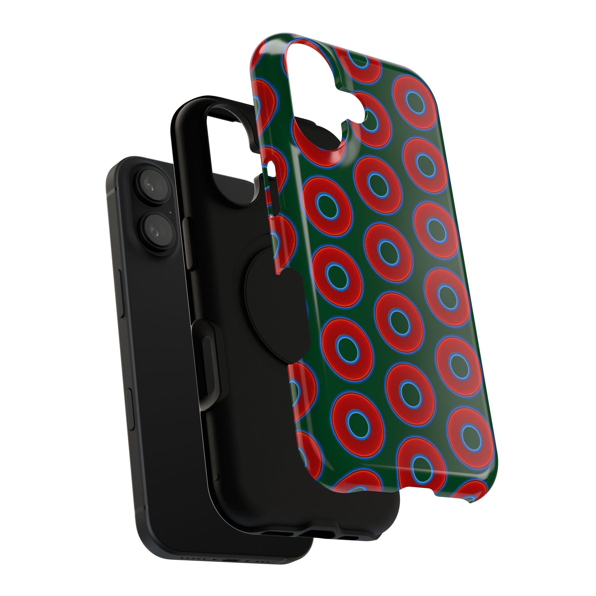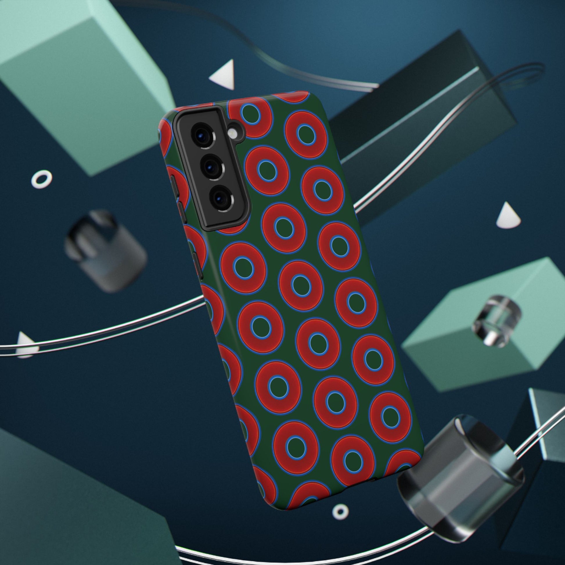Impact-Resistant Lumpy Donut Case - red vivid donut print w/dark pond green background