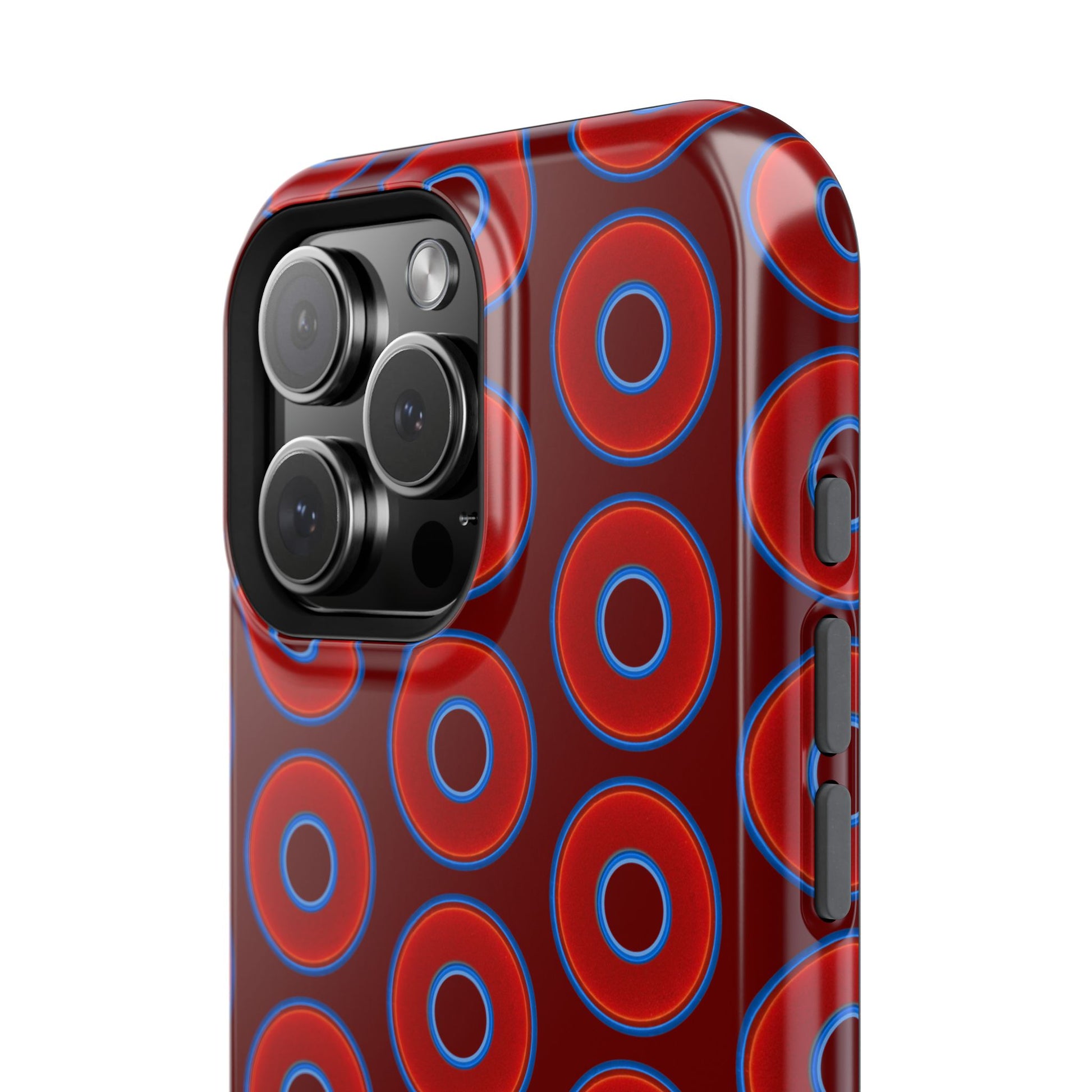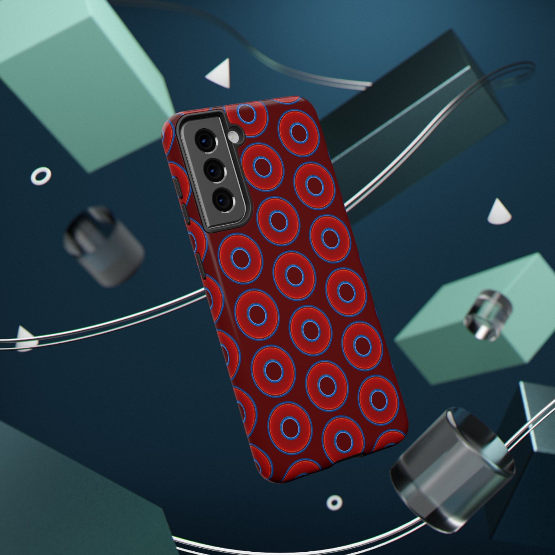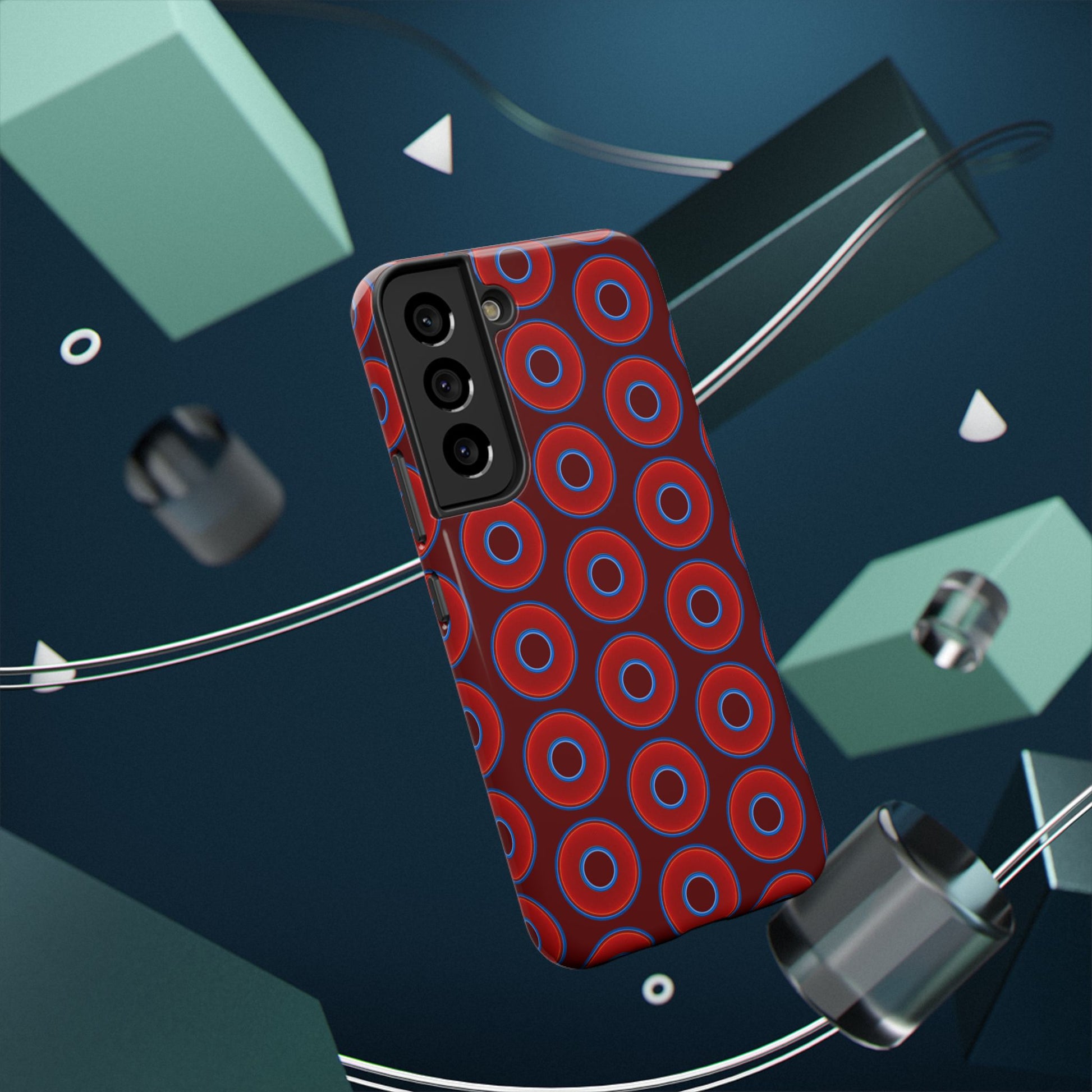 Impact-Resistant Lumpy Donut Case - red vivid donut print w/dark red background