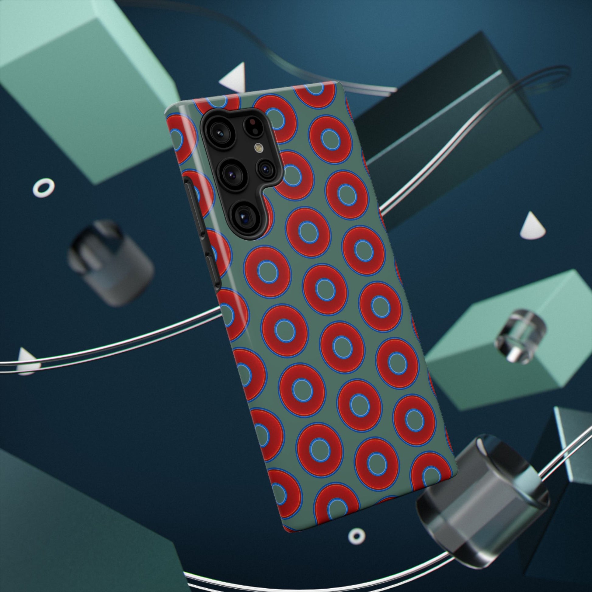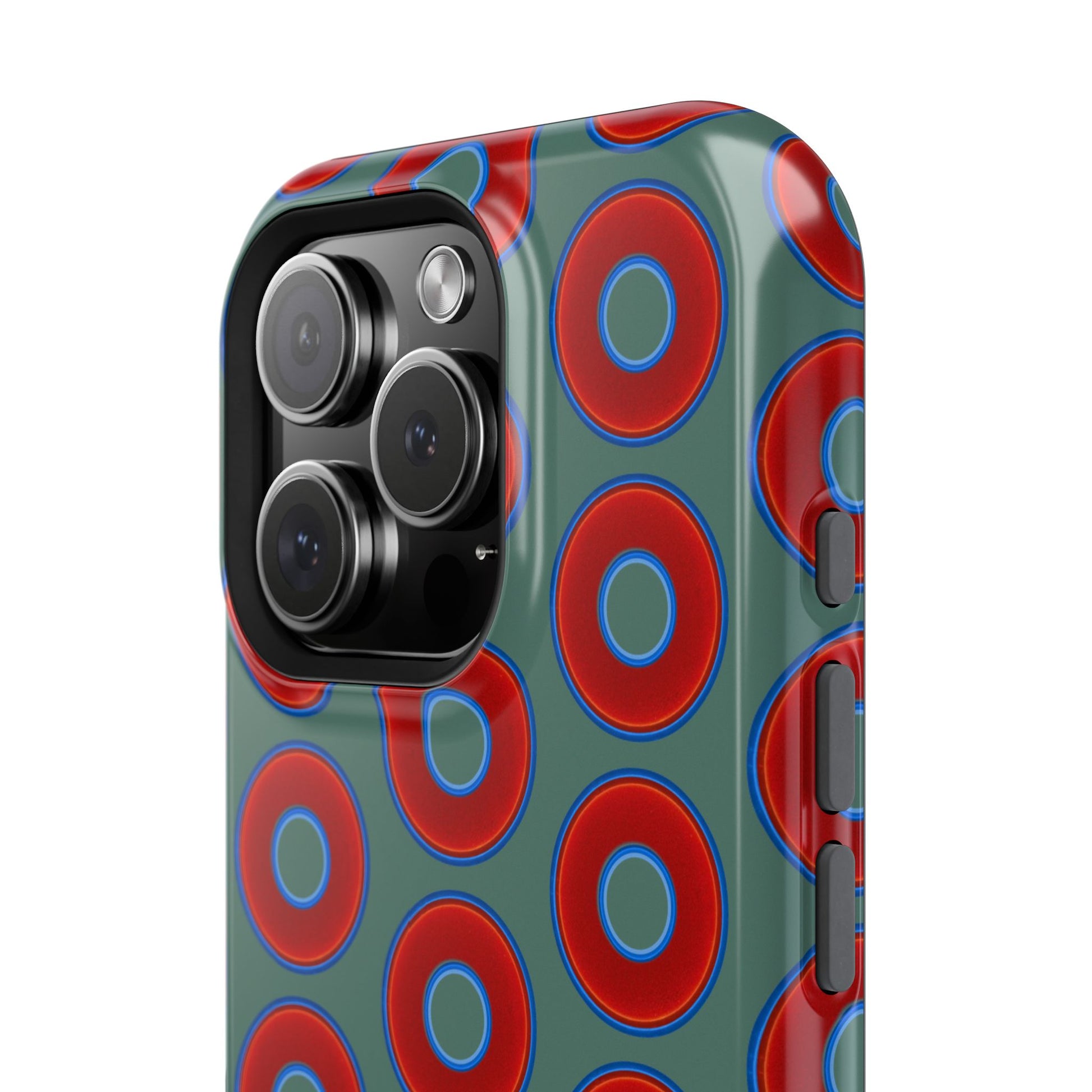 Impact-Resistant Lumpy Donut Case - red vivid donut print w/Fenway green background