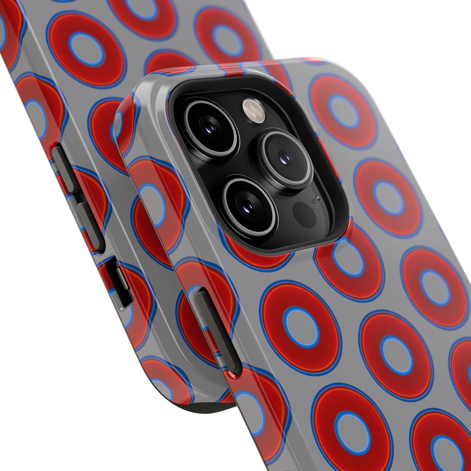 Impact-Resistant Lumpy Donut Case - red vivid donut print w/gray background
