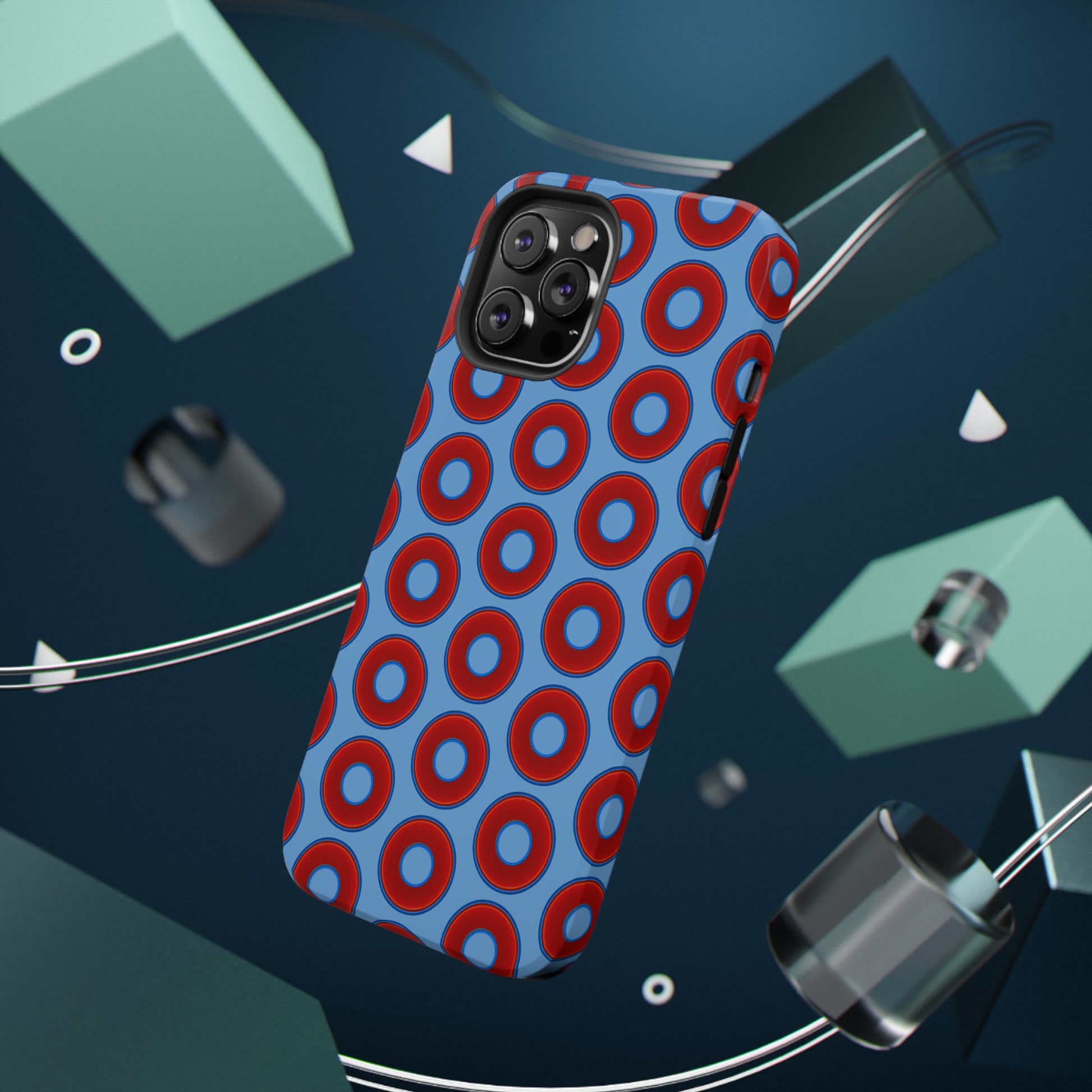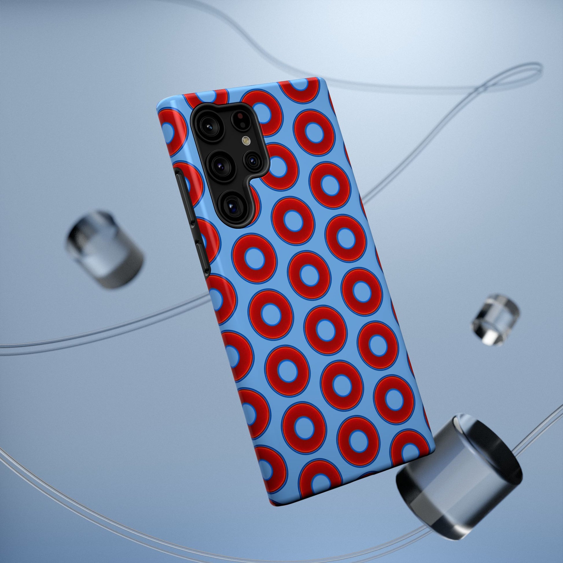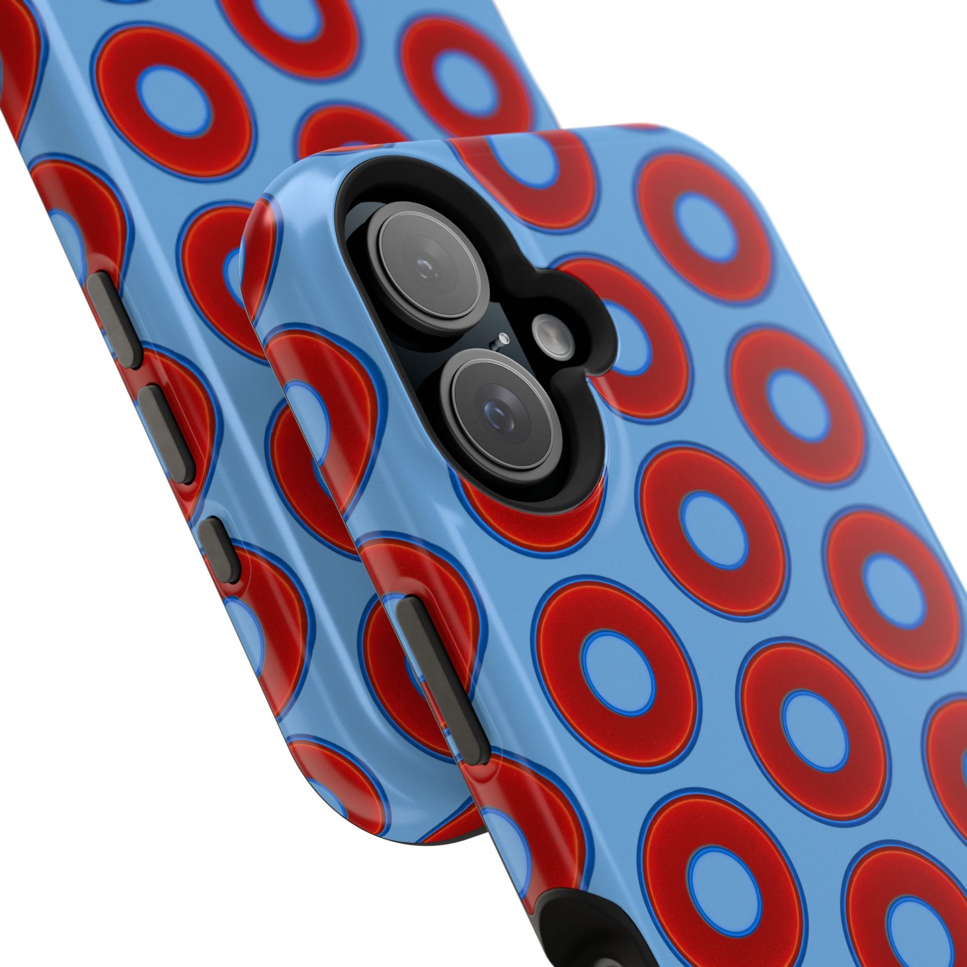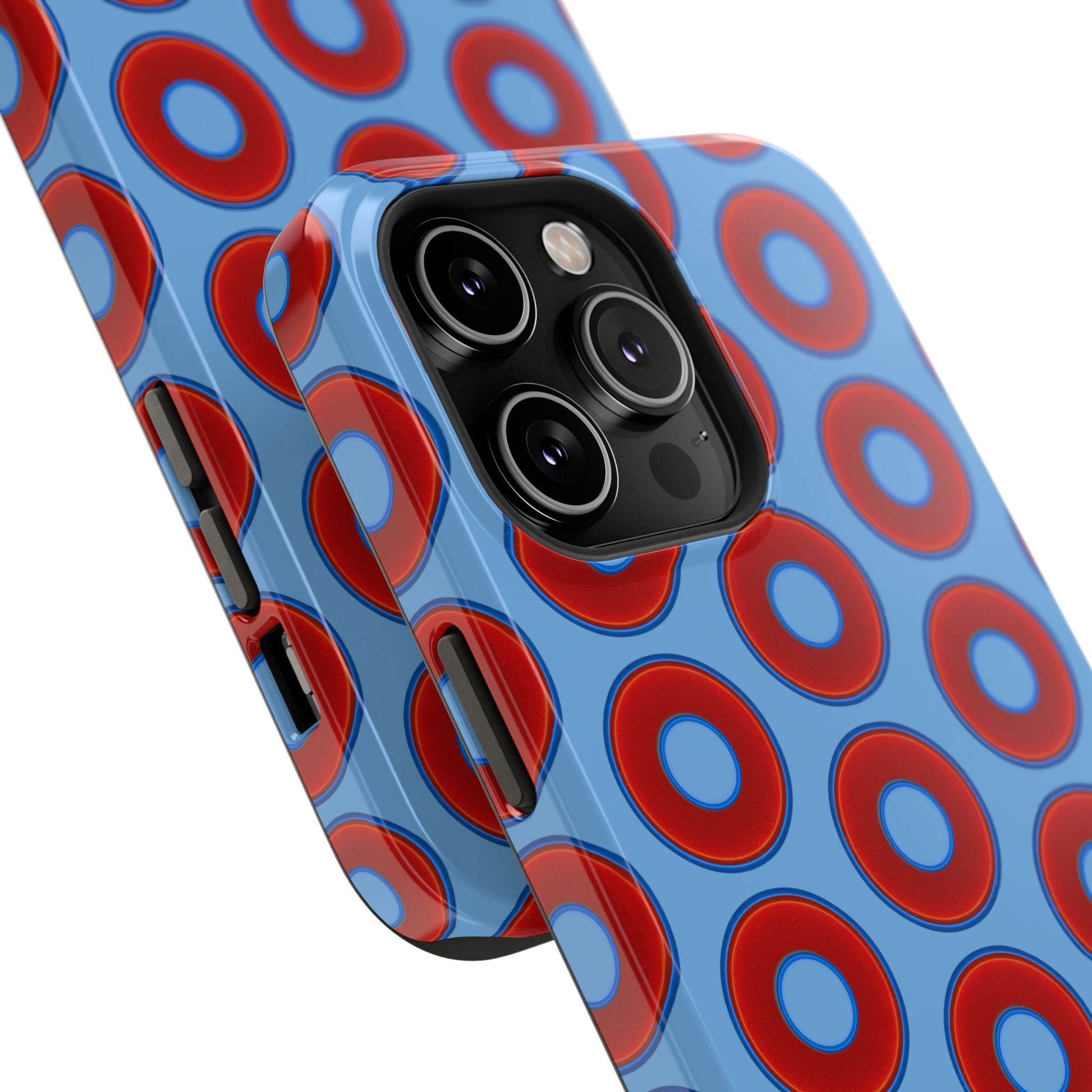 Impact-Resistant Lumpy Donut Case - red vivid donut print w/light blue background