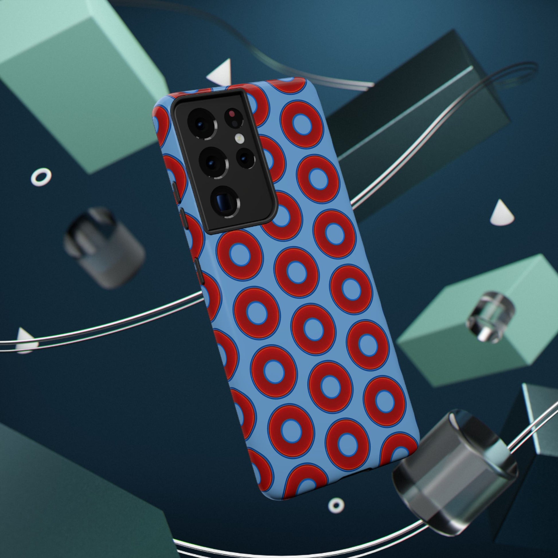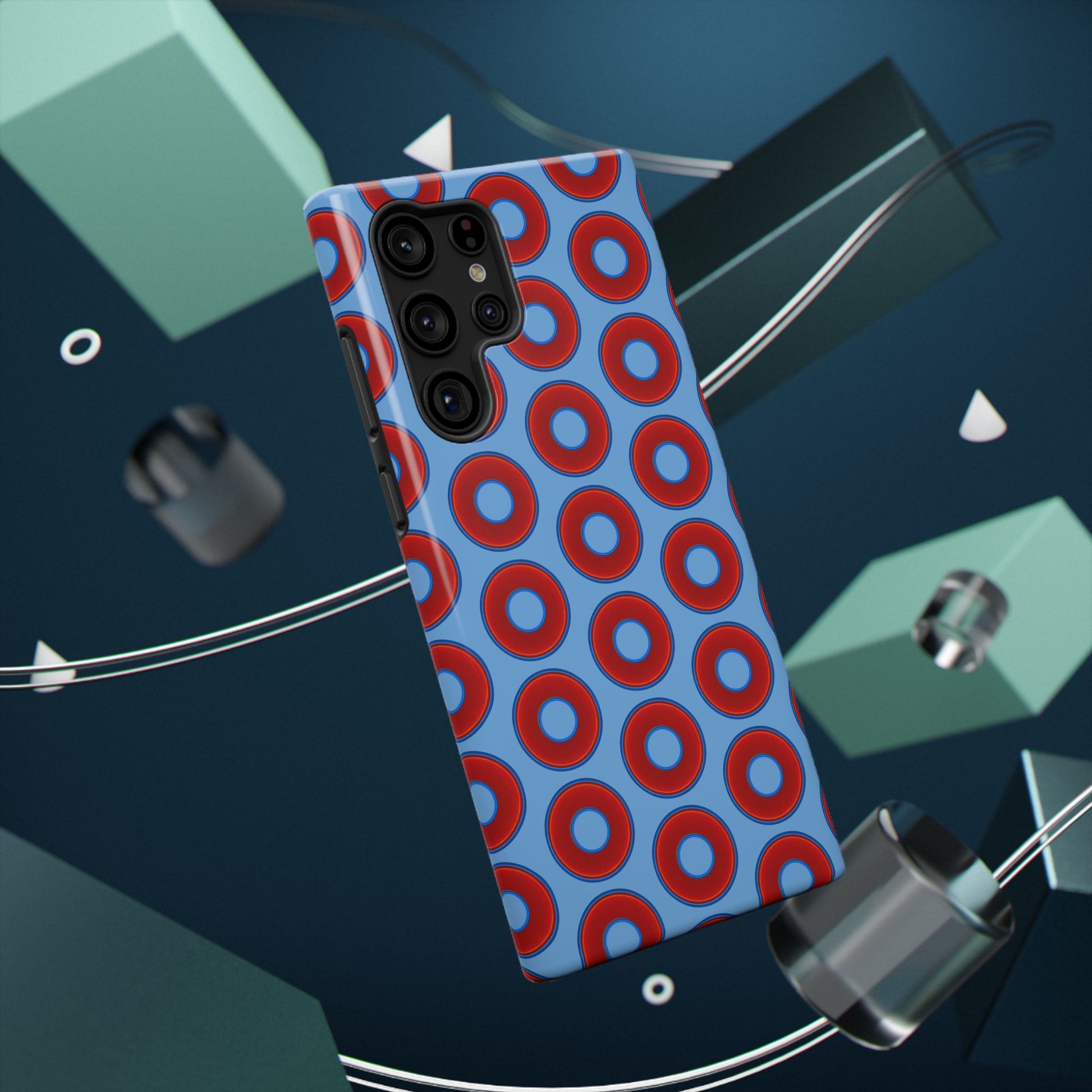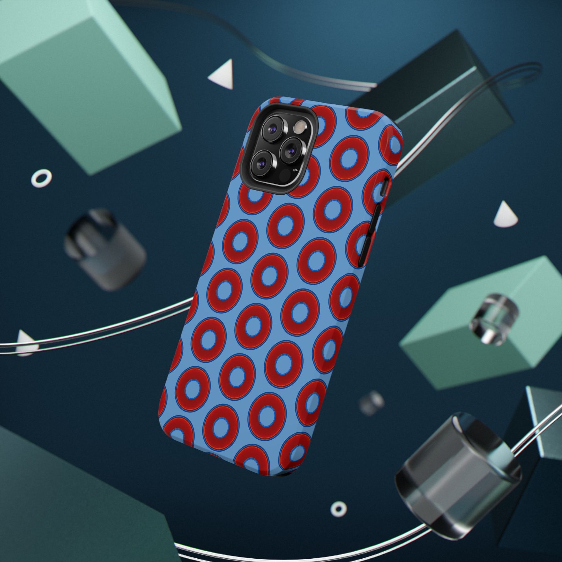 Impact-Resistant Lumpy Donut Case - red vivid donut print w/light blue background