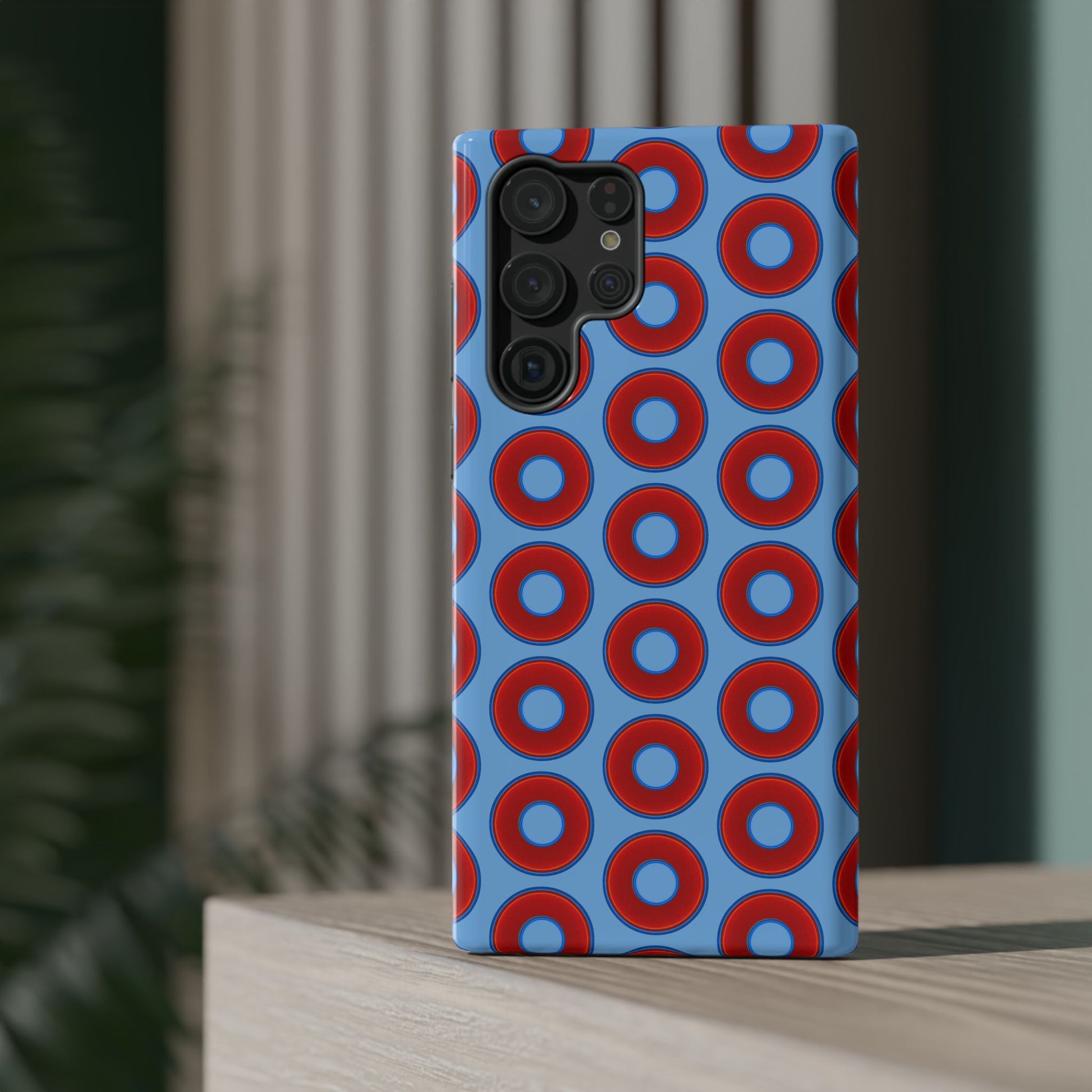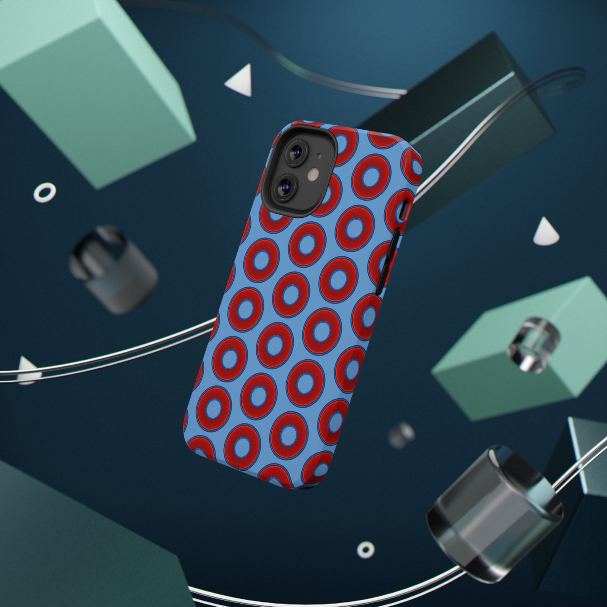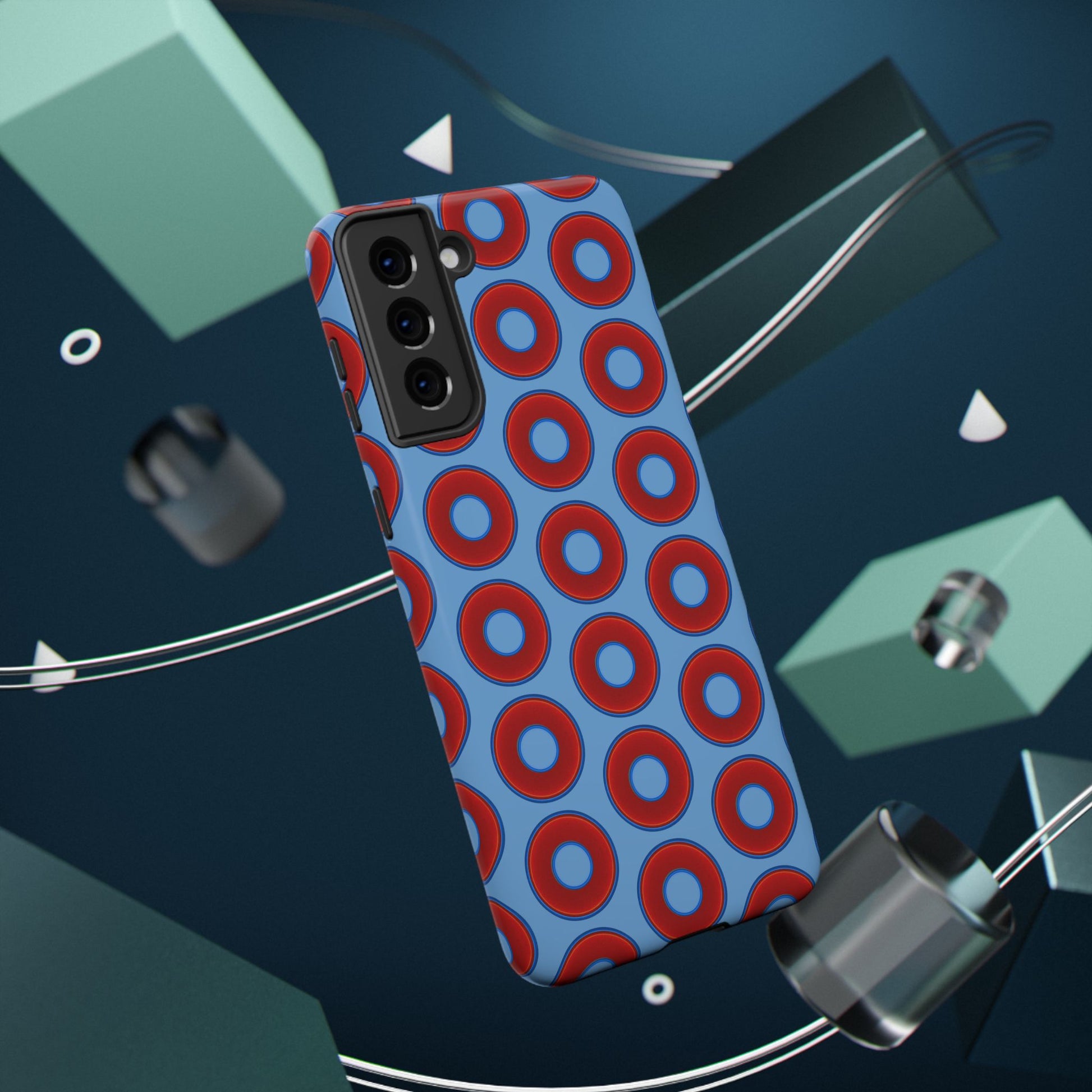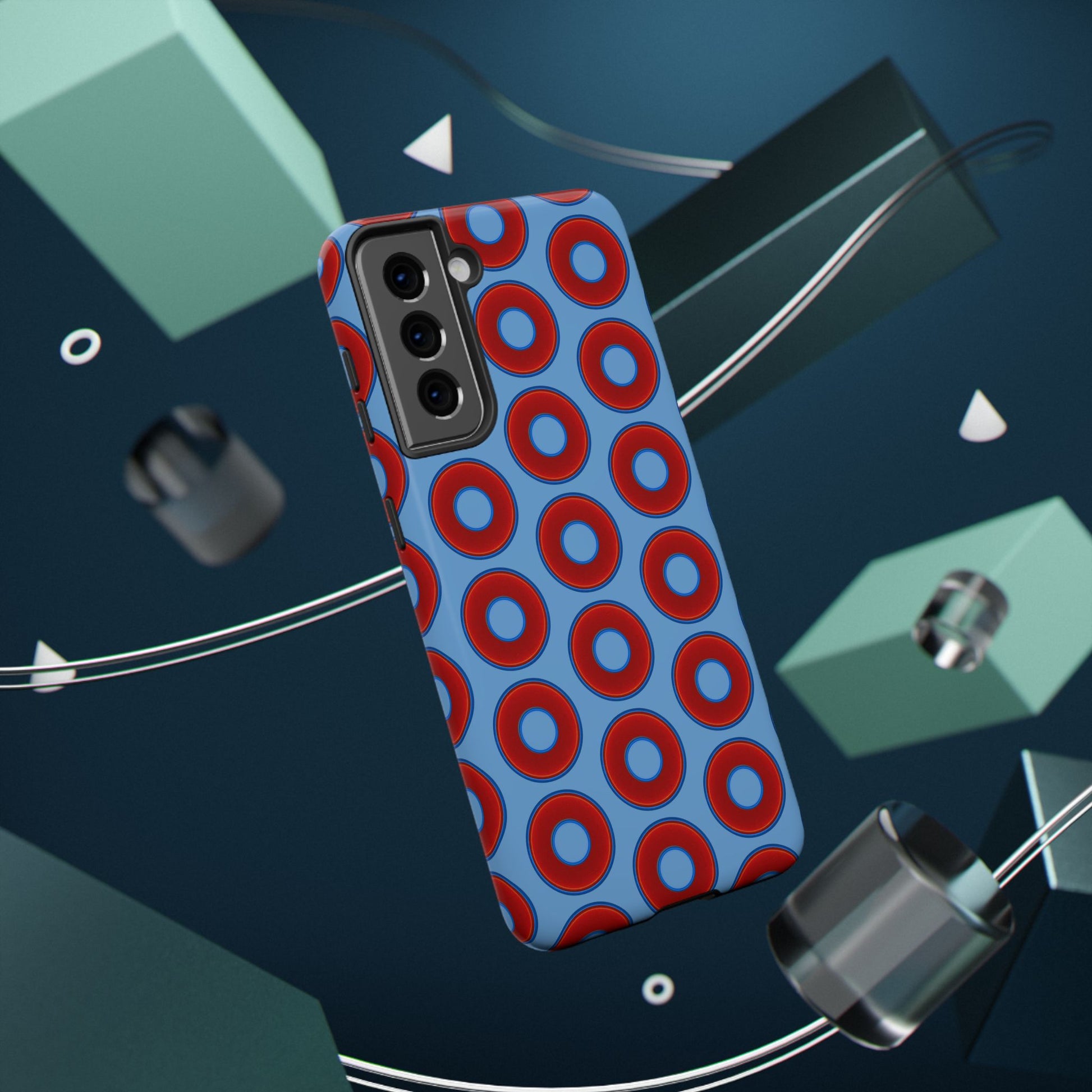 Impact-Resistant Lumpy Donut Case - red vivid donut print w/light blue background