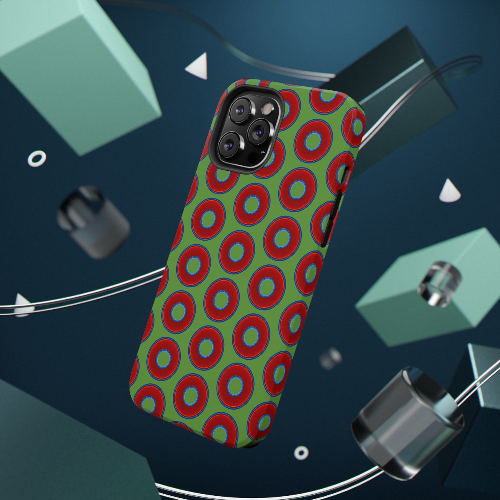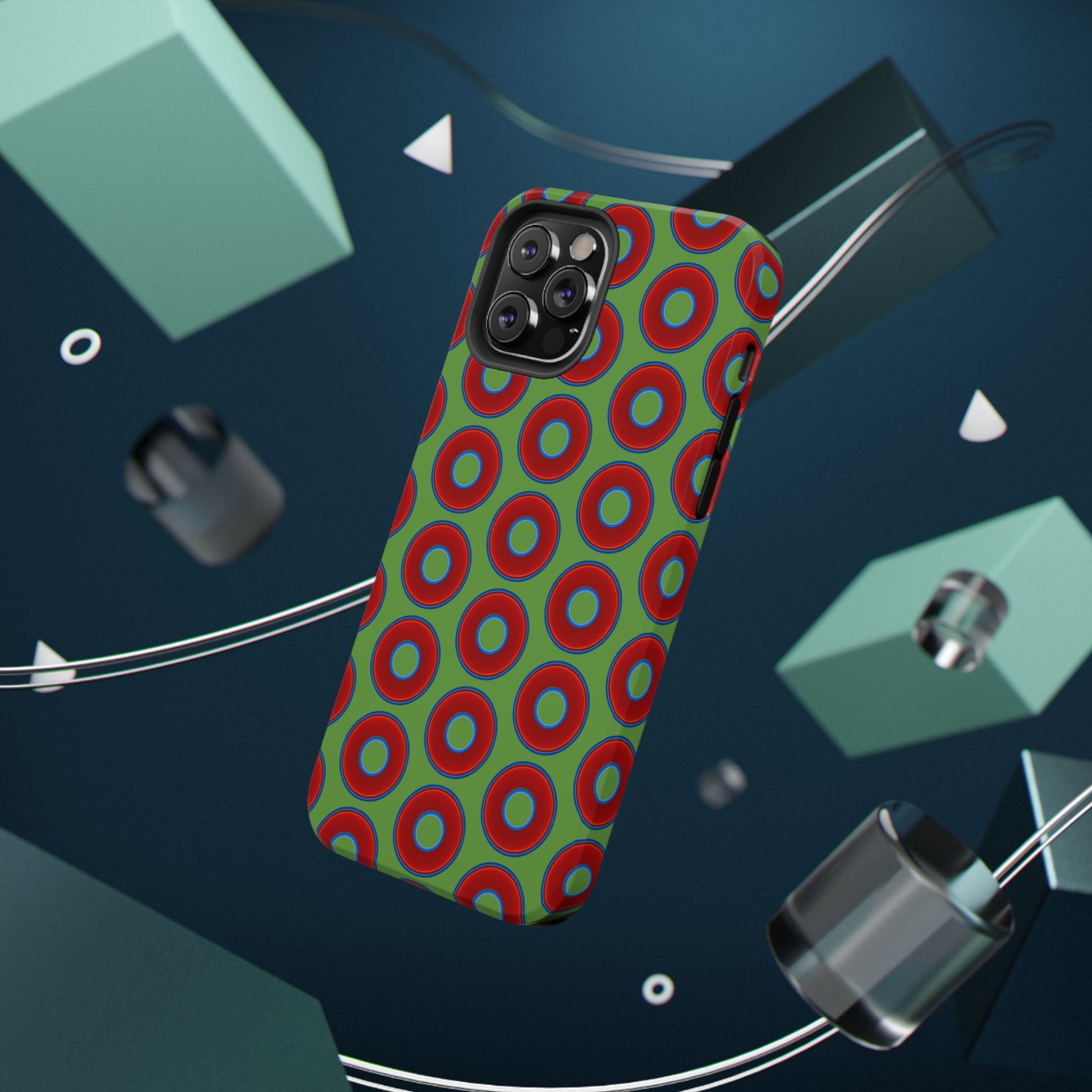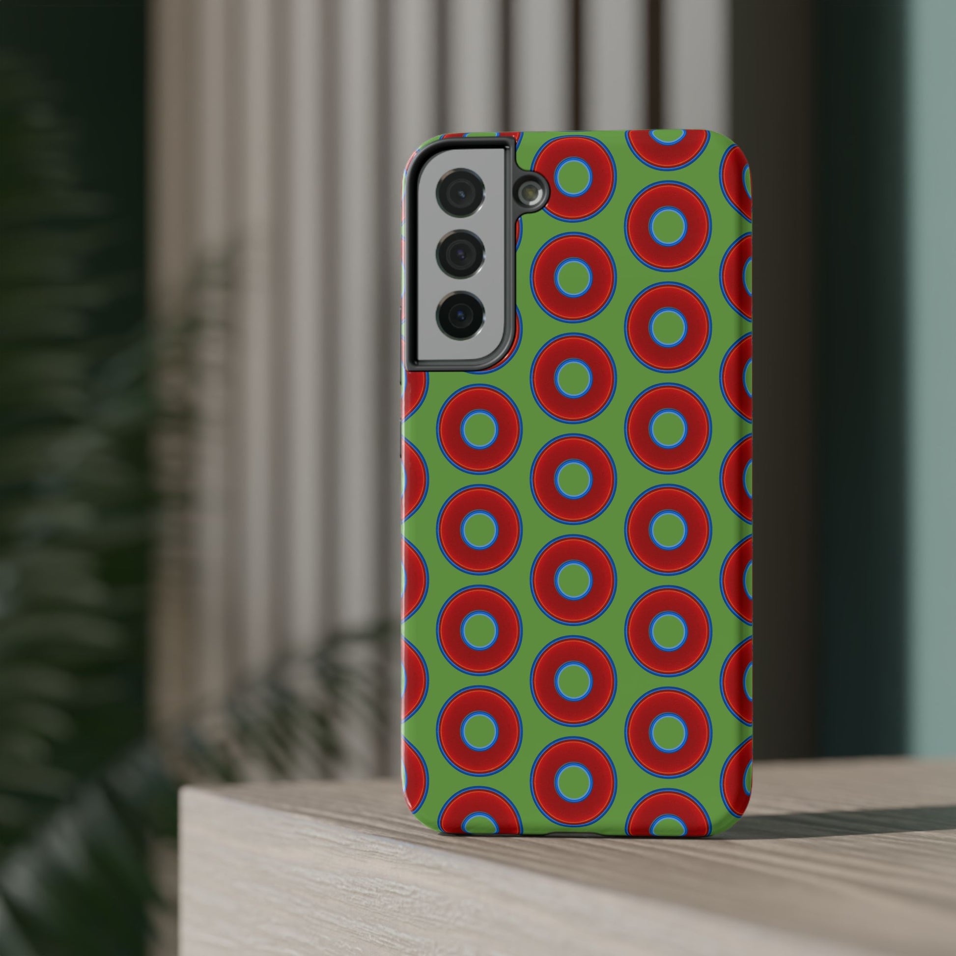 Impact-Resistant Lumpy Donut Case - red vivid donut print w/light green background