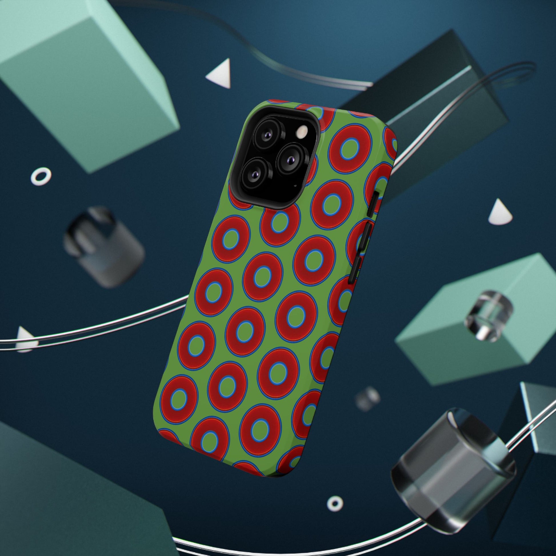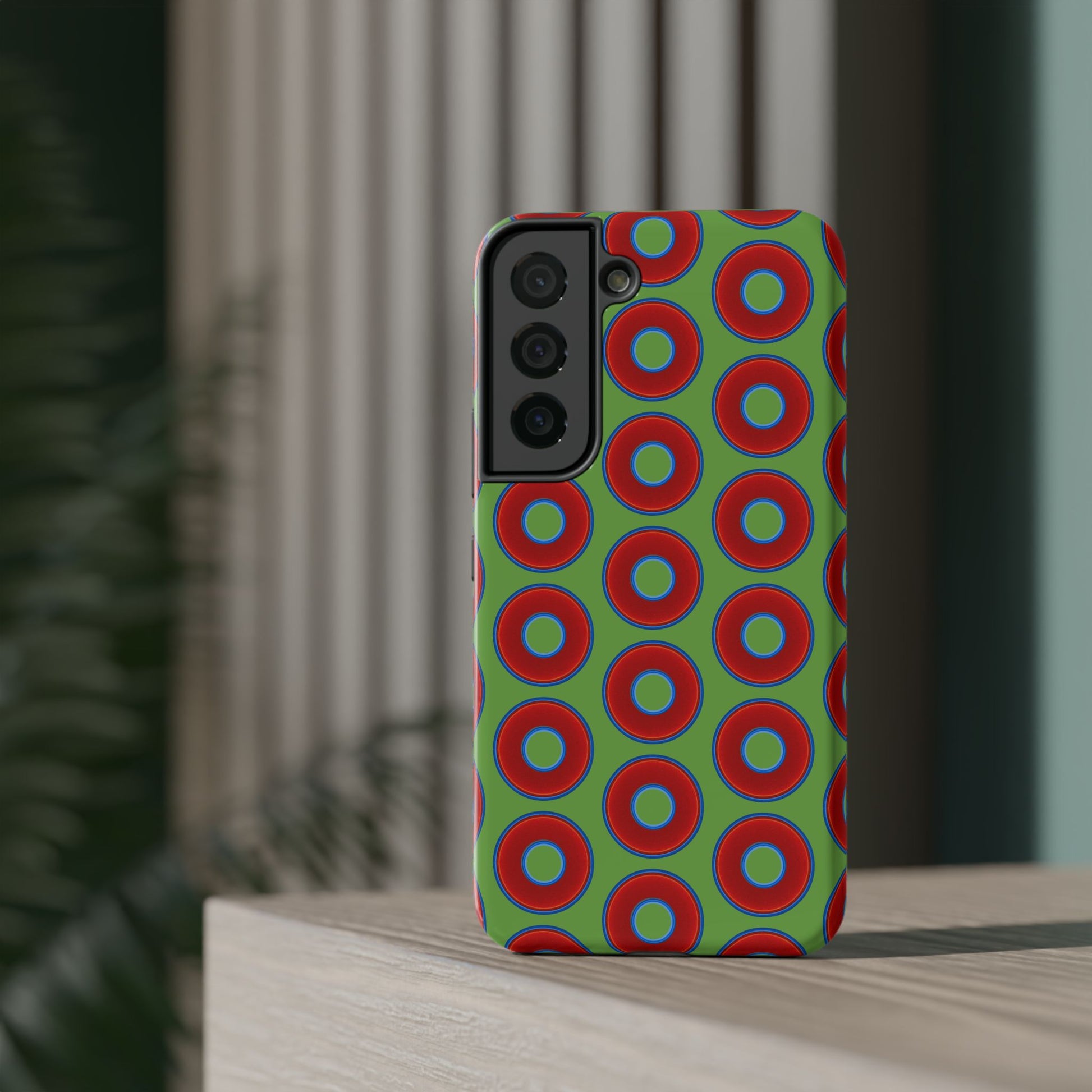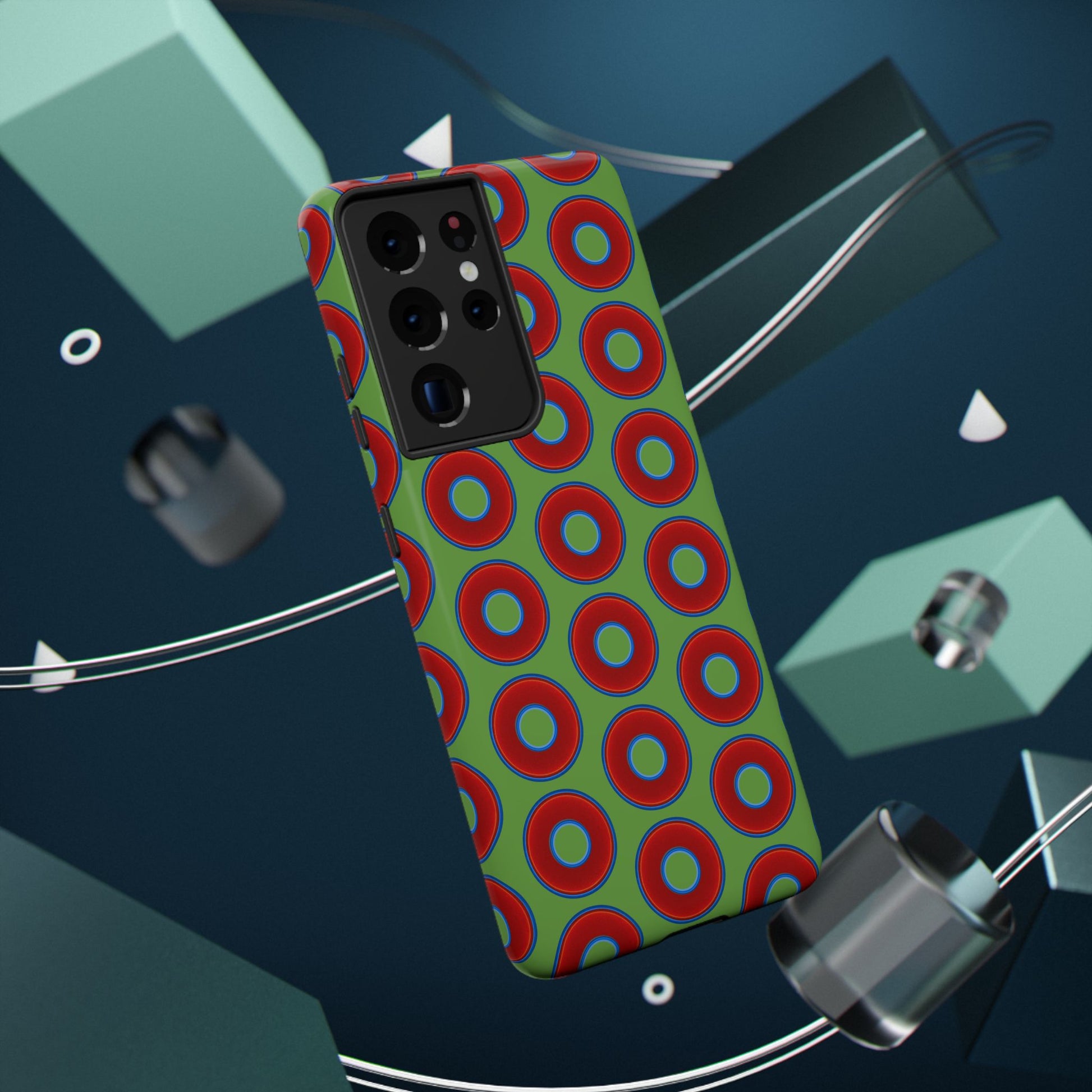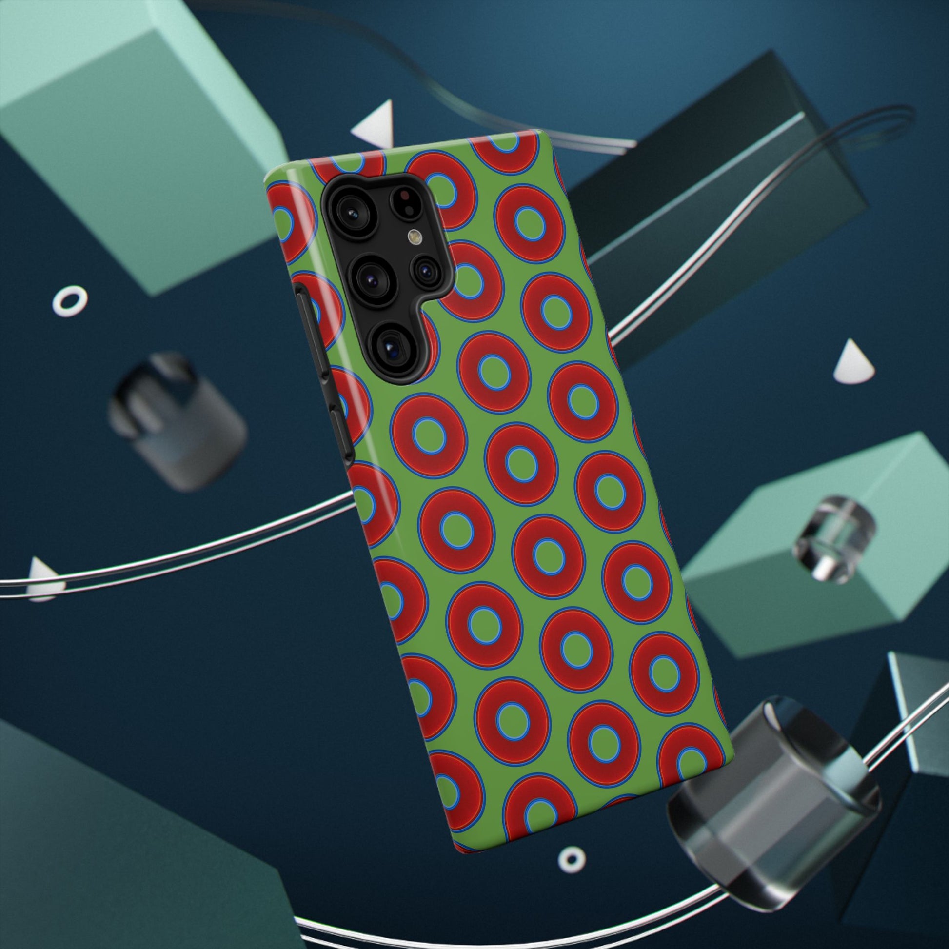 Impact-Resistant Lumpy Donut Case - red vivid donut print w/light green background