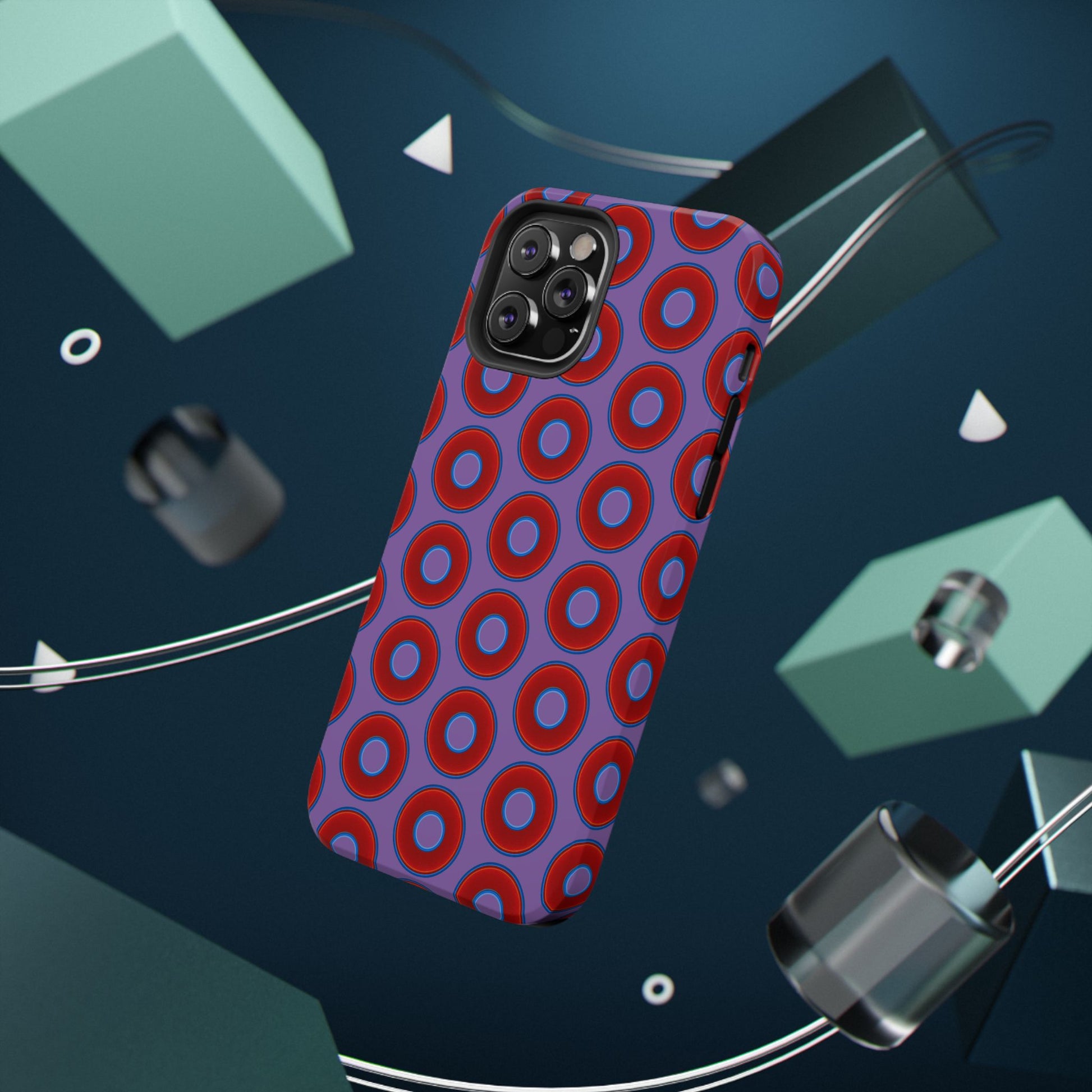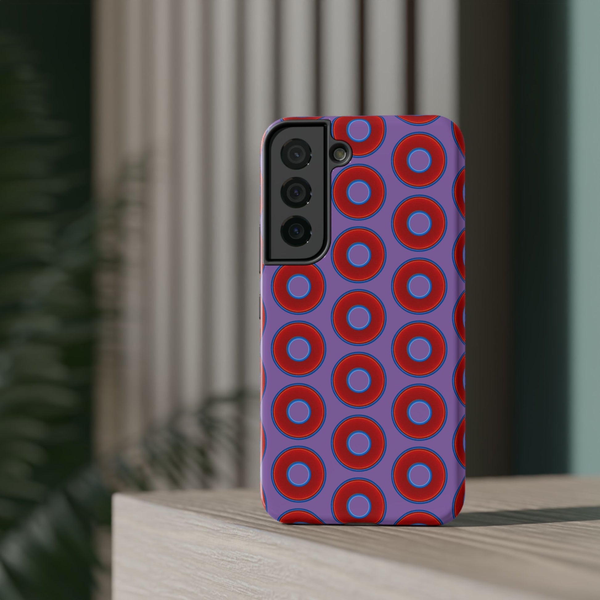 Impact-Resistant Lumpy Donut Case - red vivid donut print w/light purple background