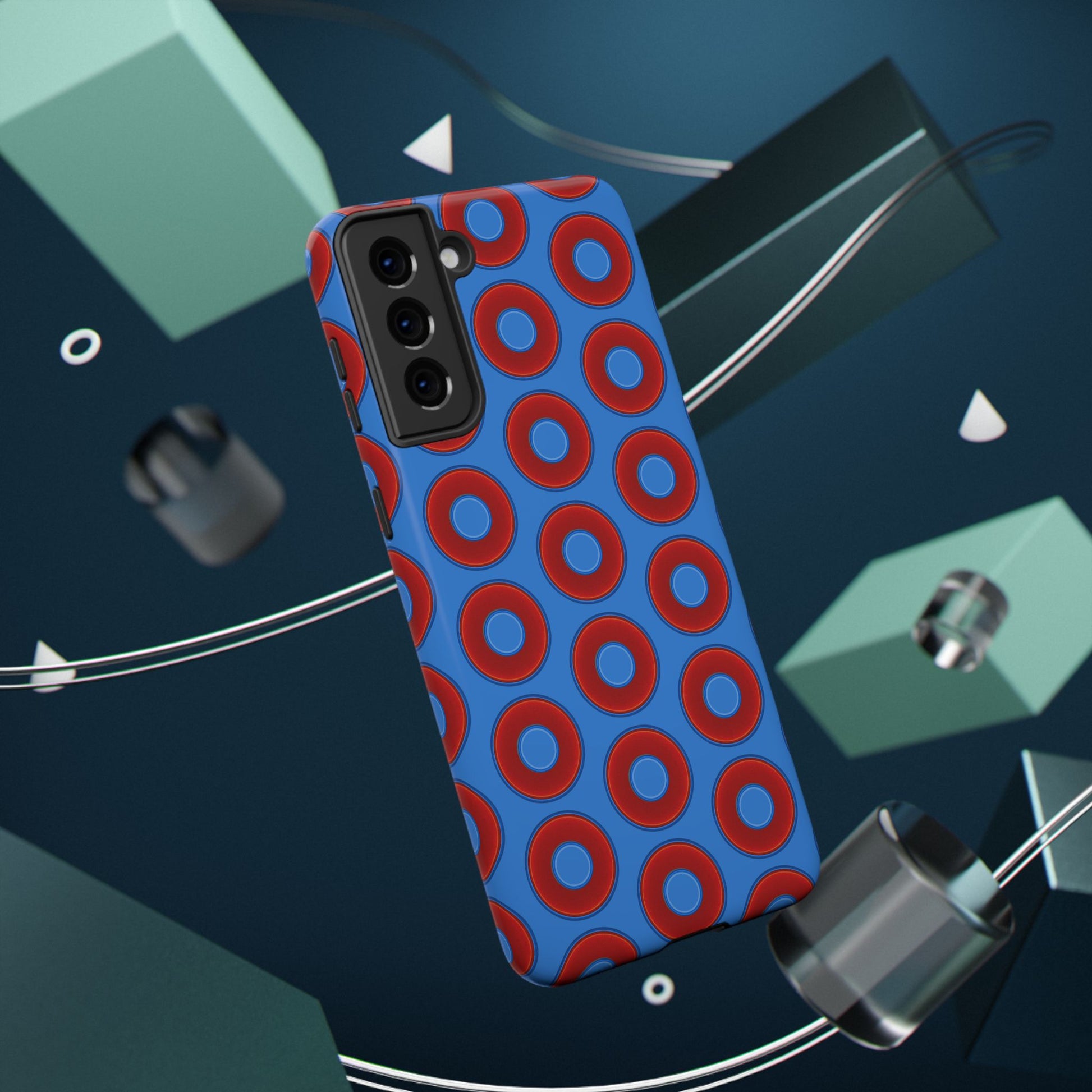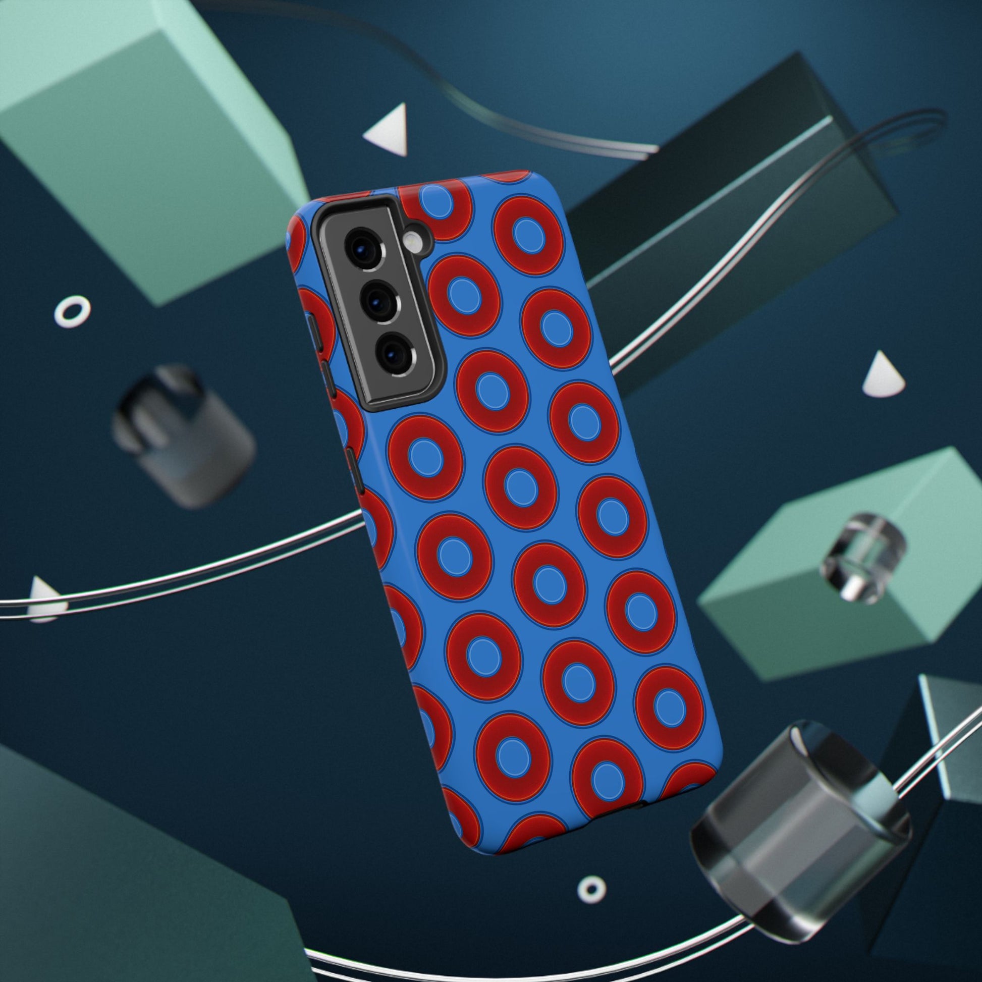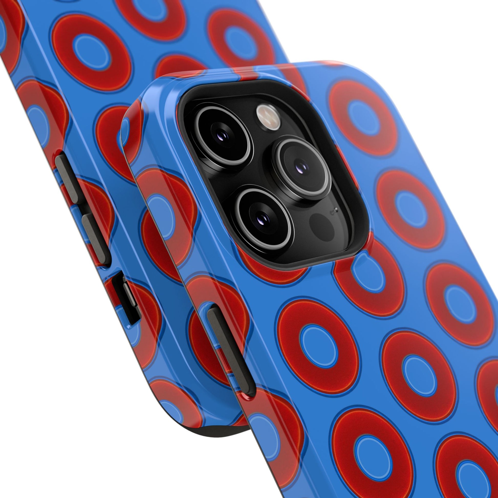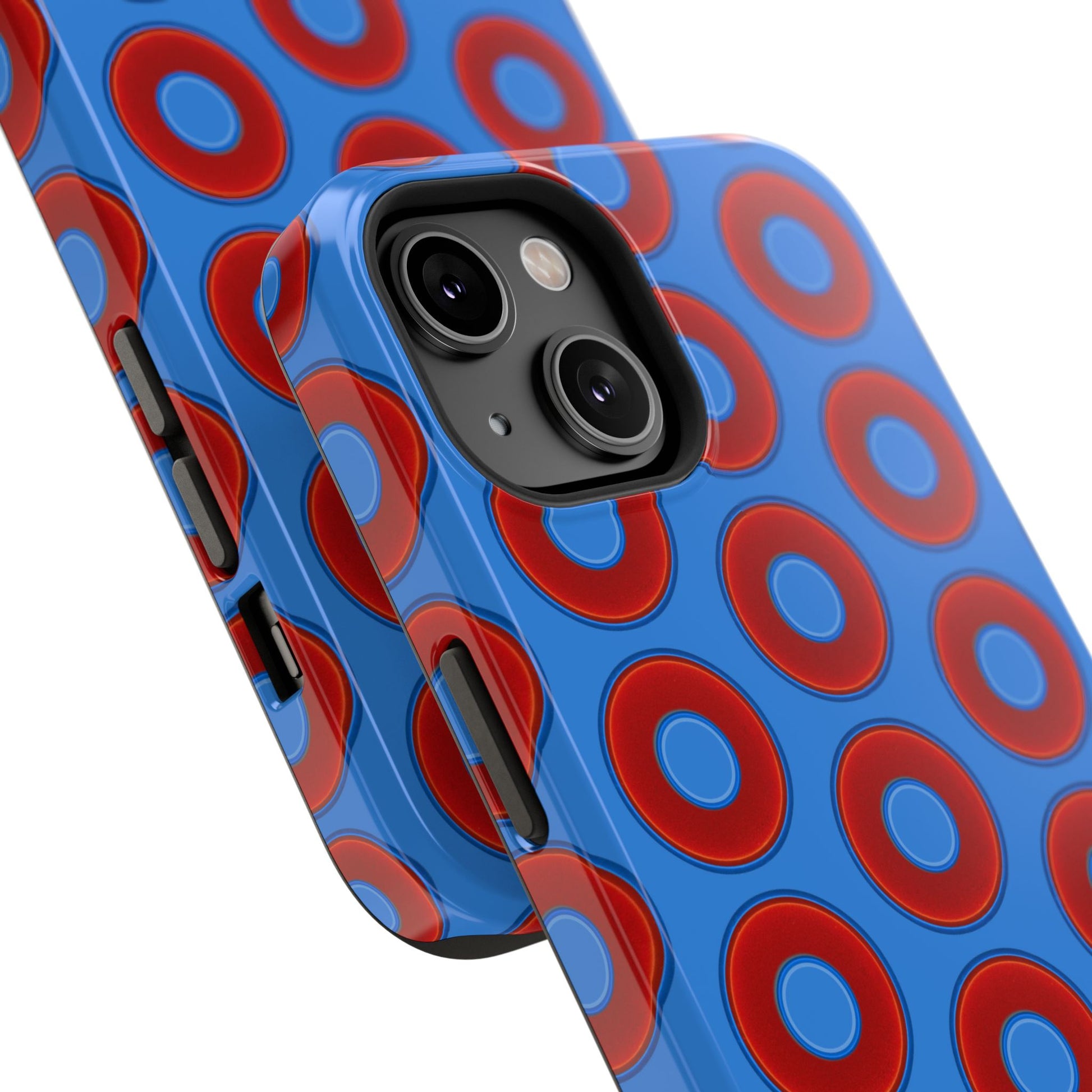 Impact-Resistant Lumpy Donut Case - red vivid donut print w/light royal blue background