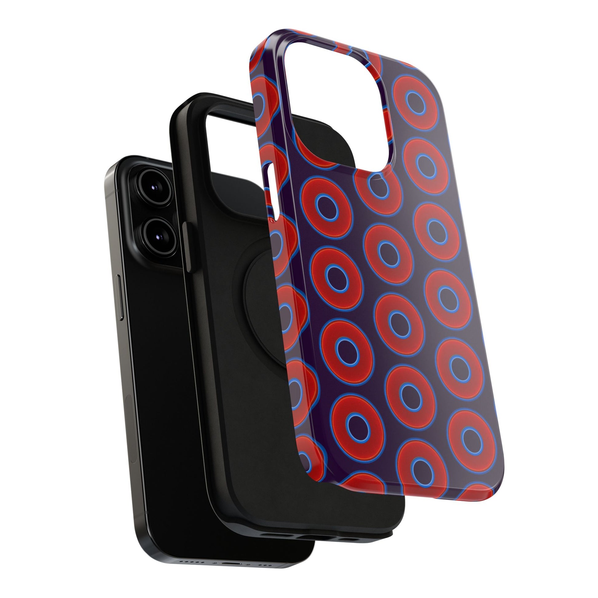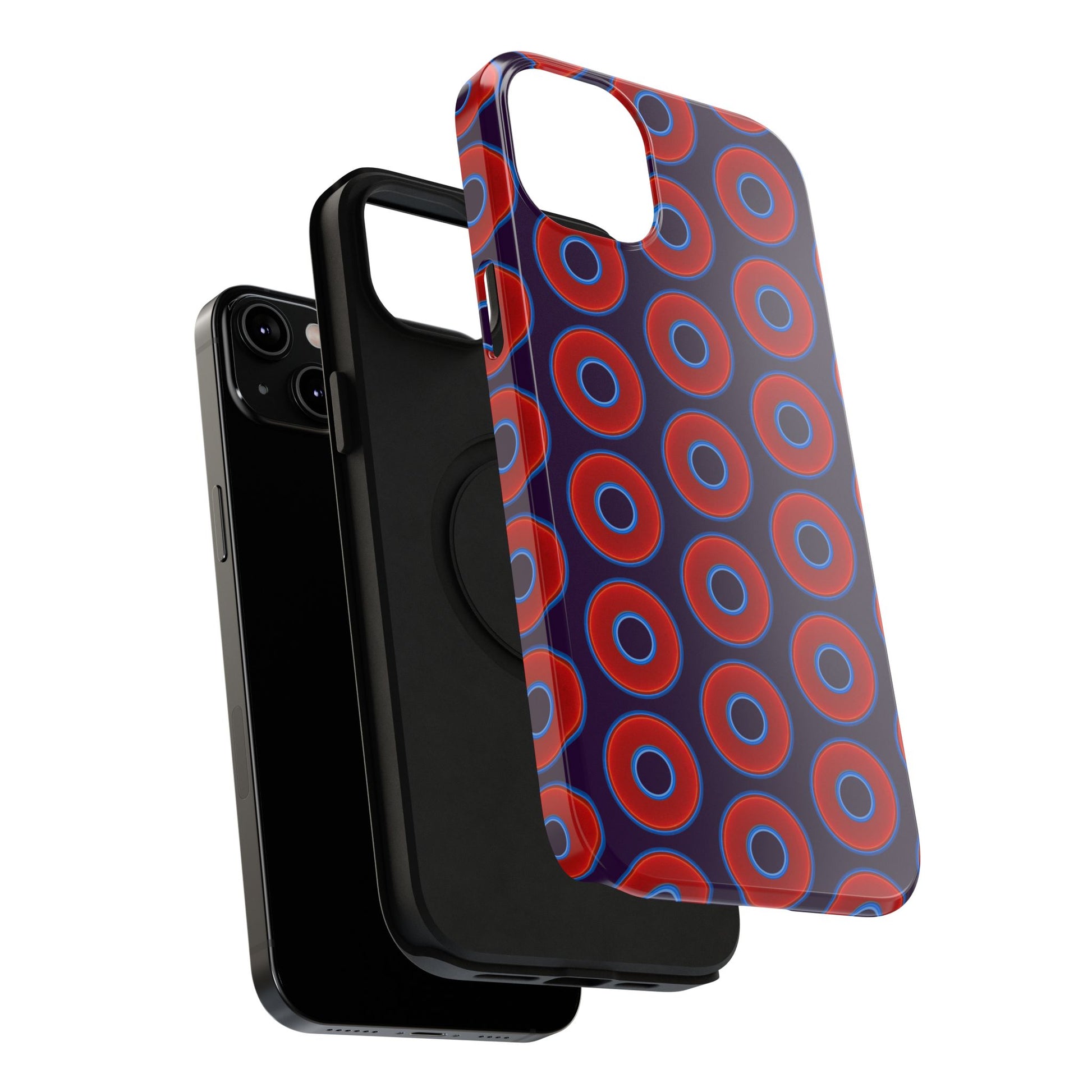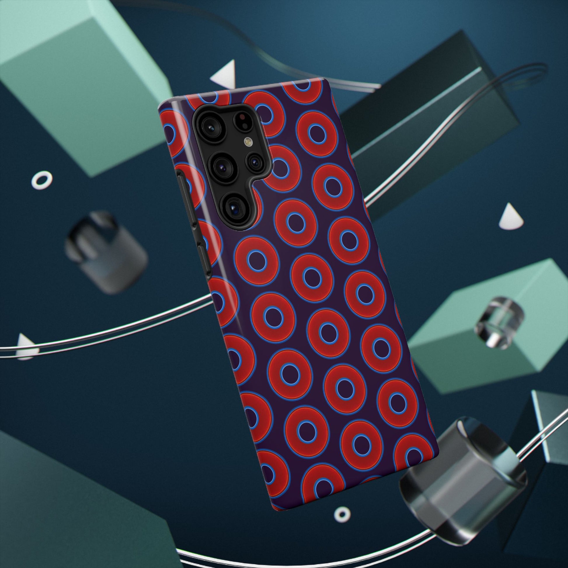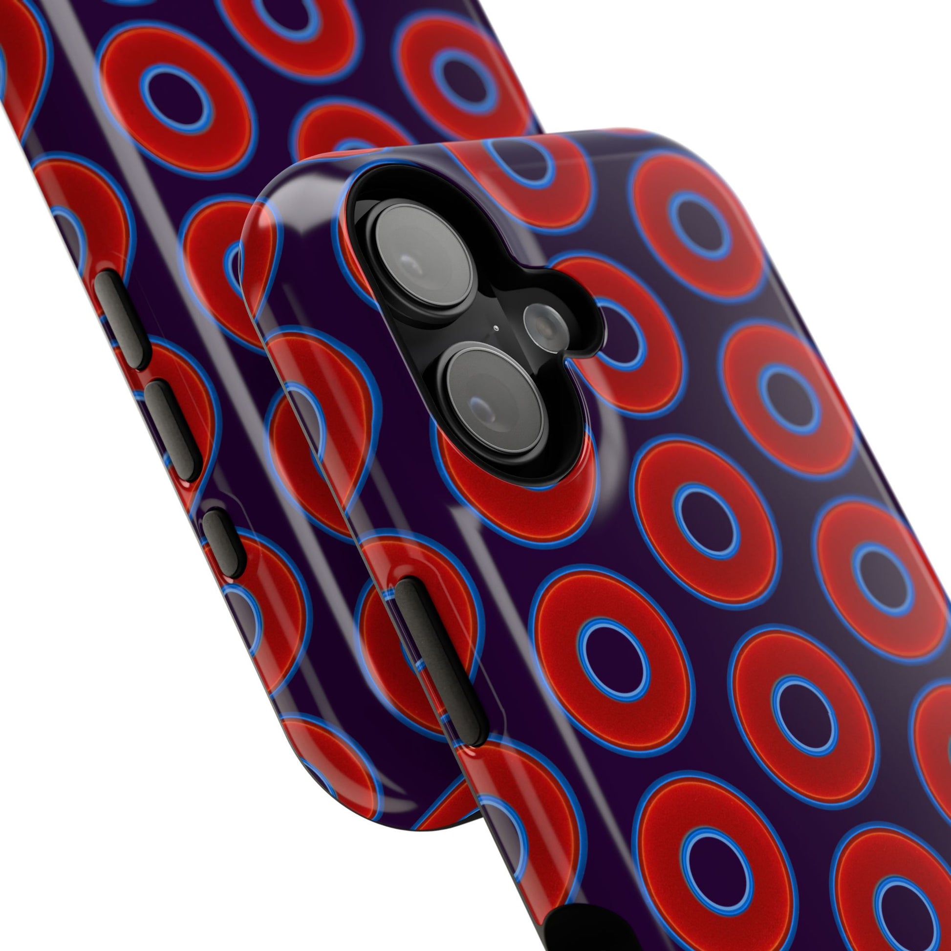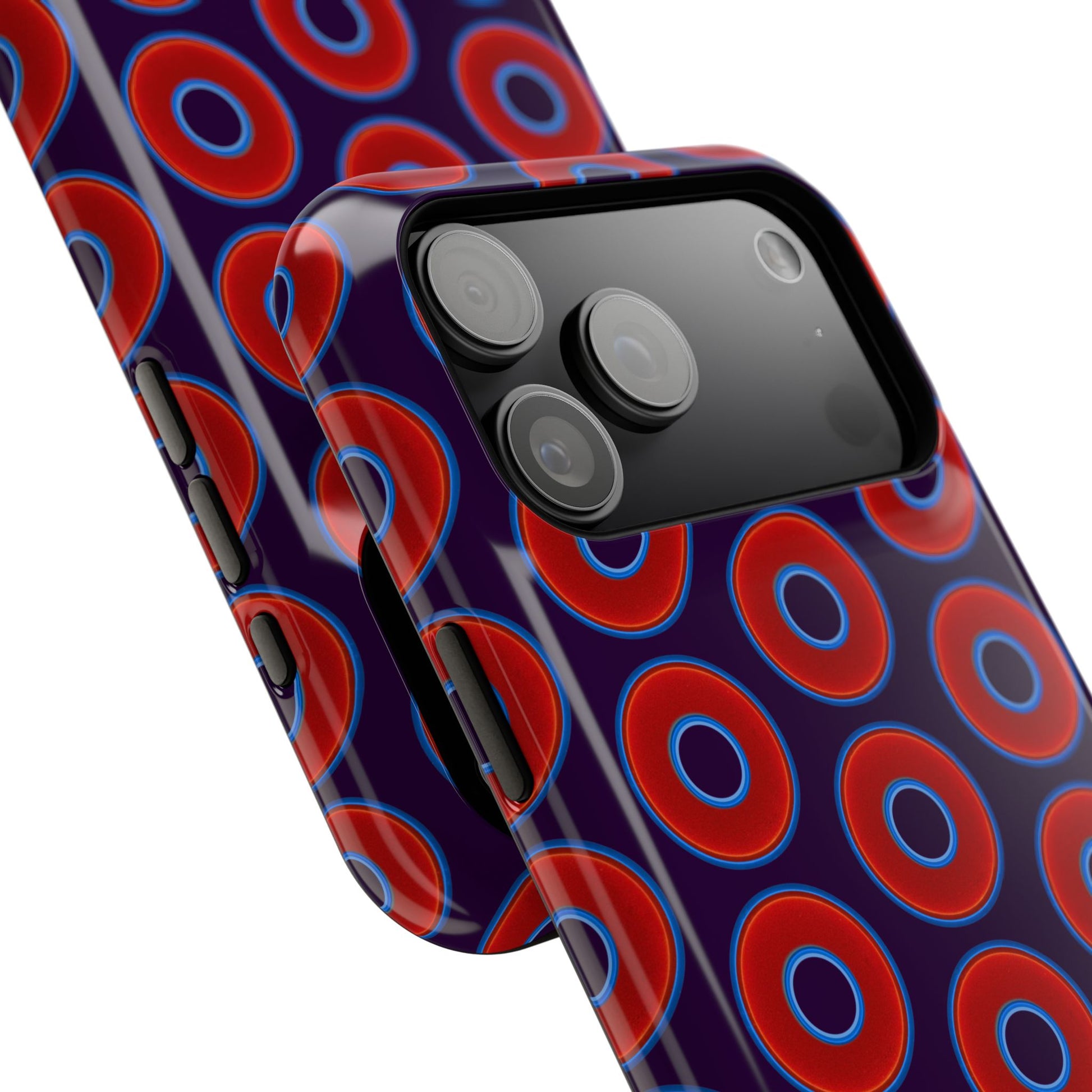 Impact-Resistant Lumpy Donut Case - red vivid donut print w/midnight purple background