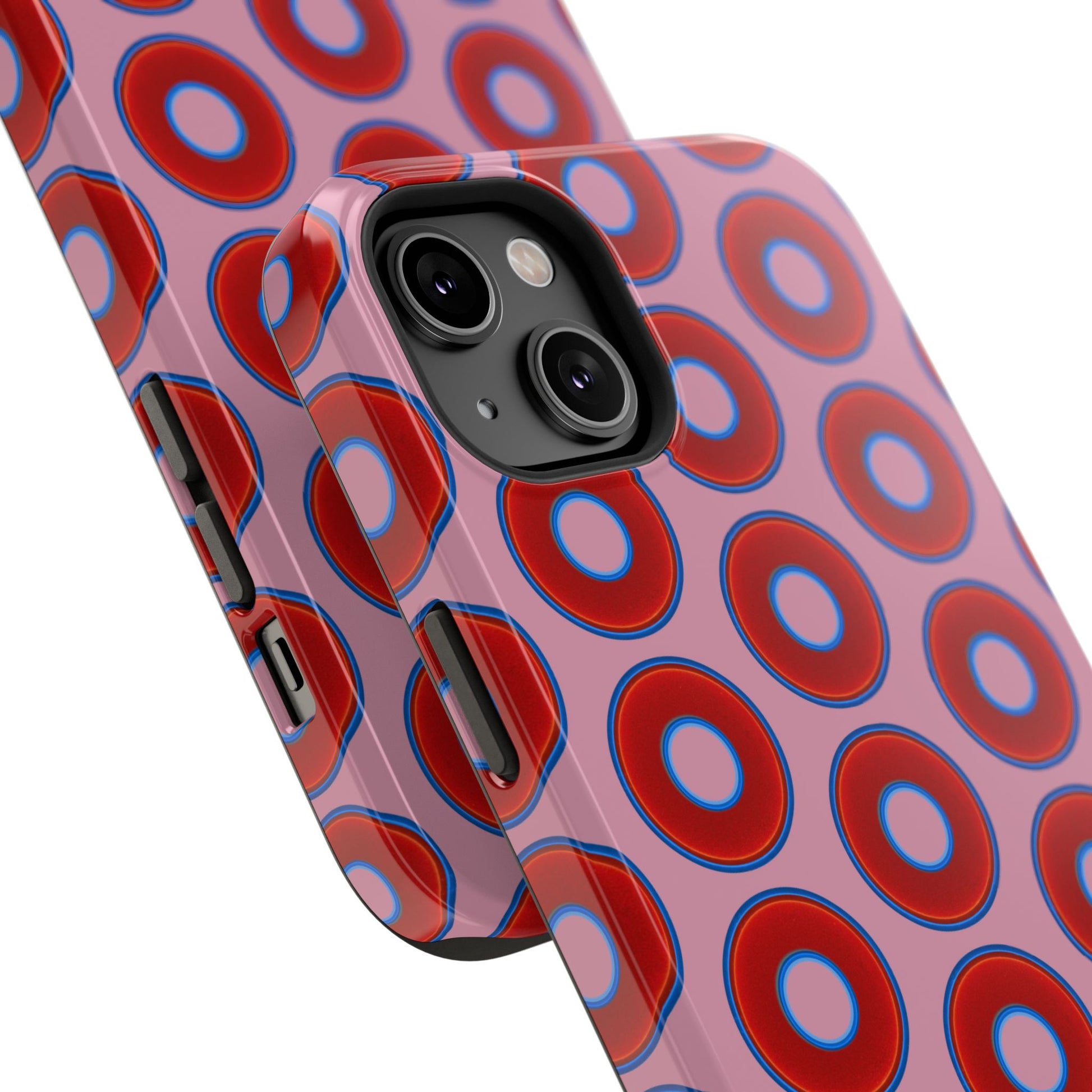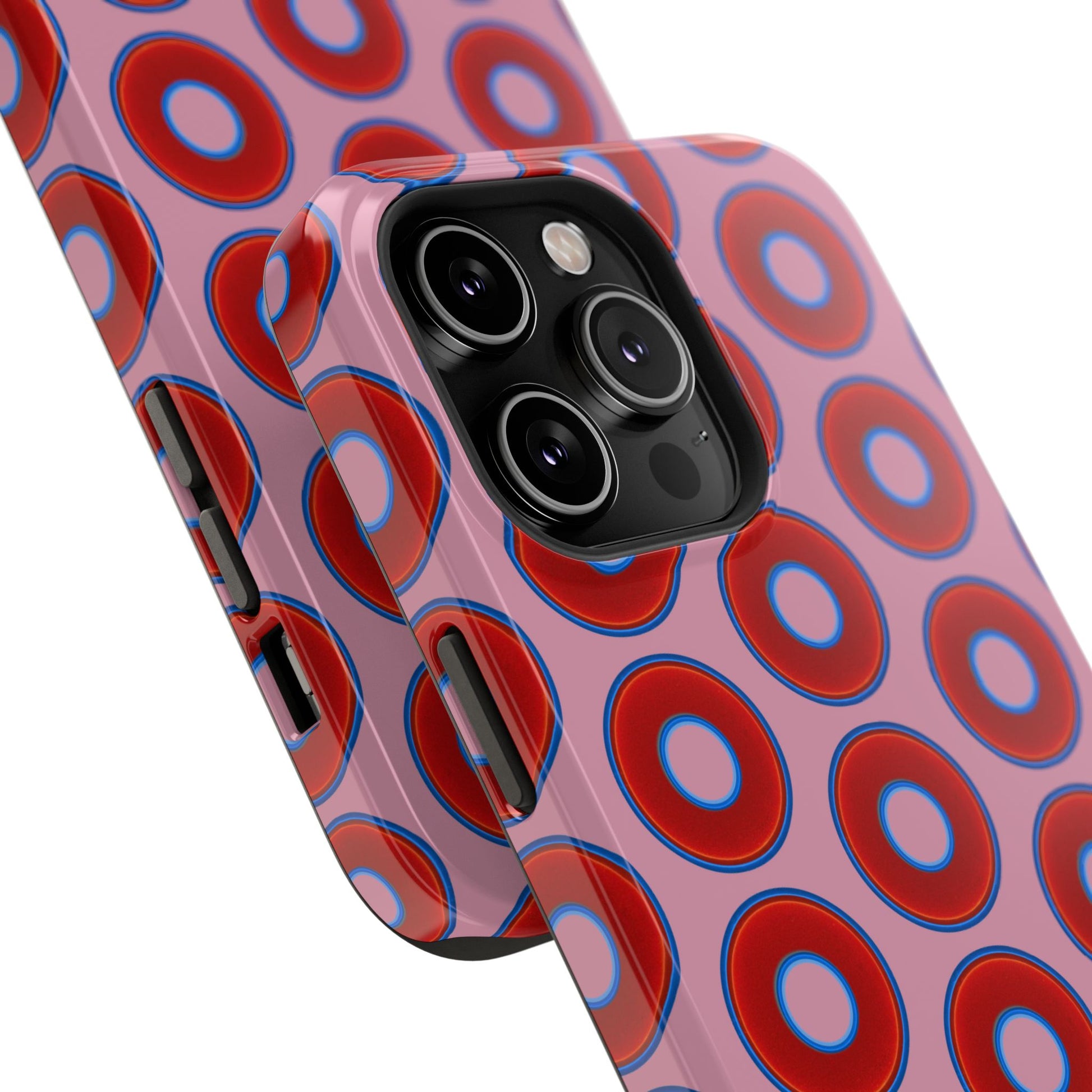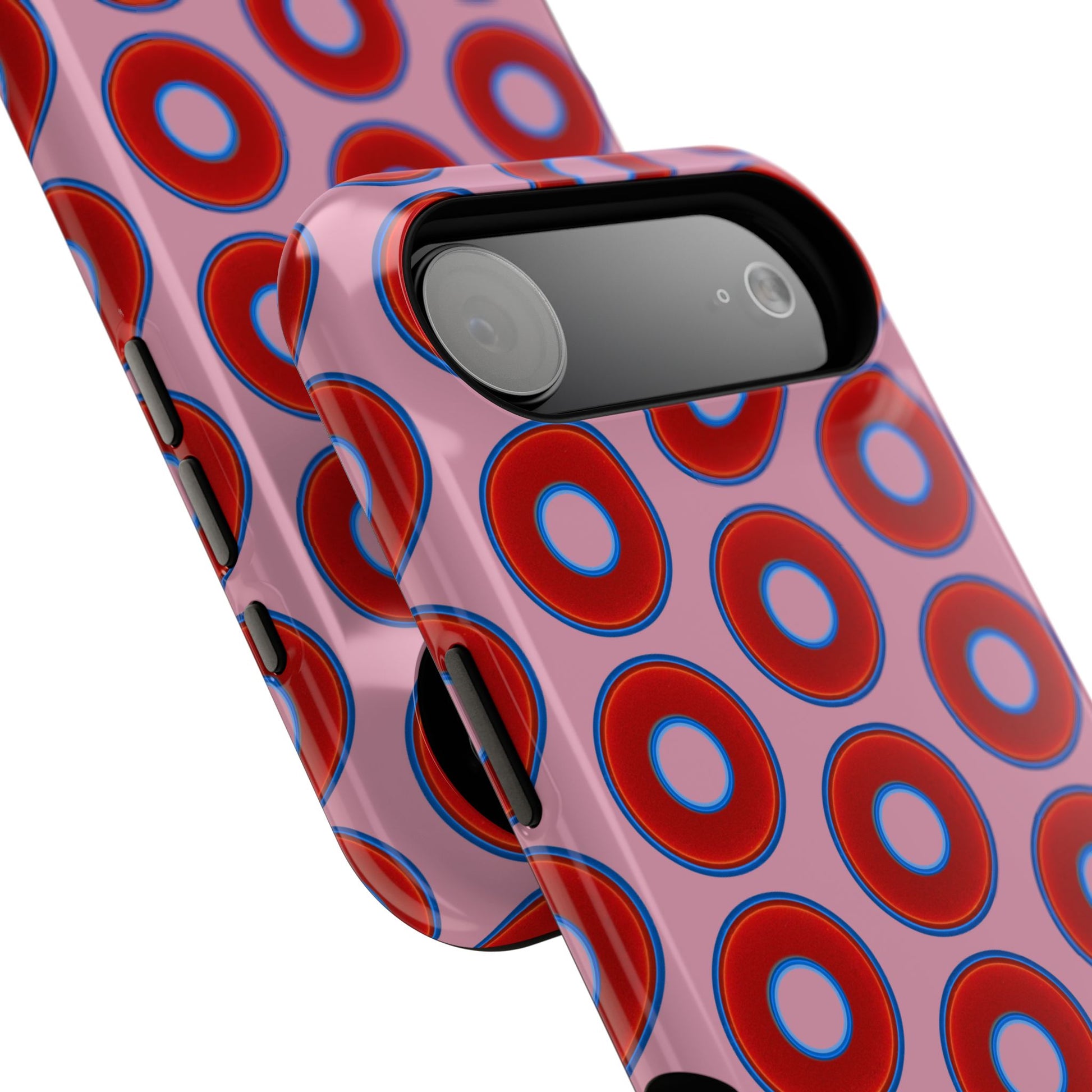 Impact-Resistant Lumpy Donut Case - red vivid donut print w/pale magenta background