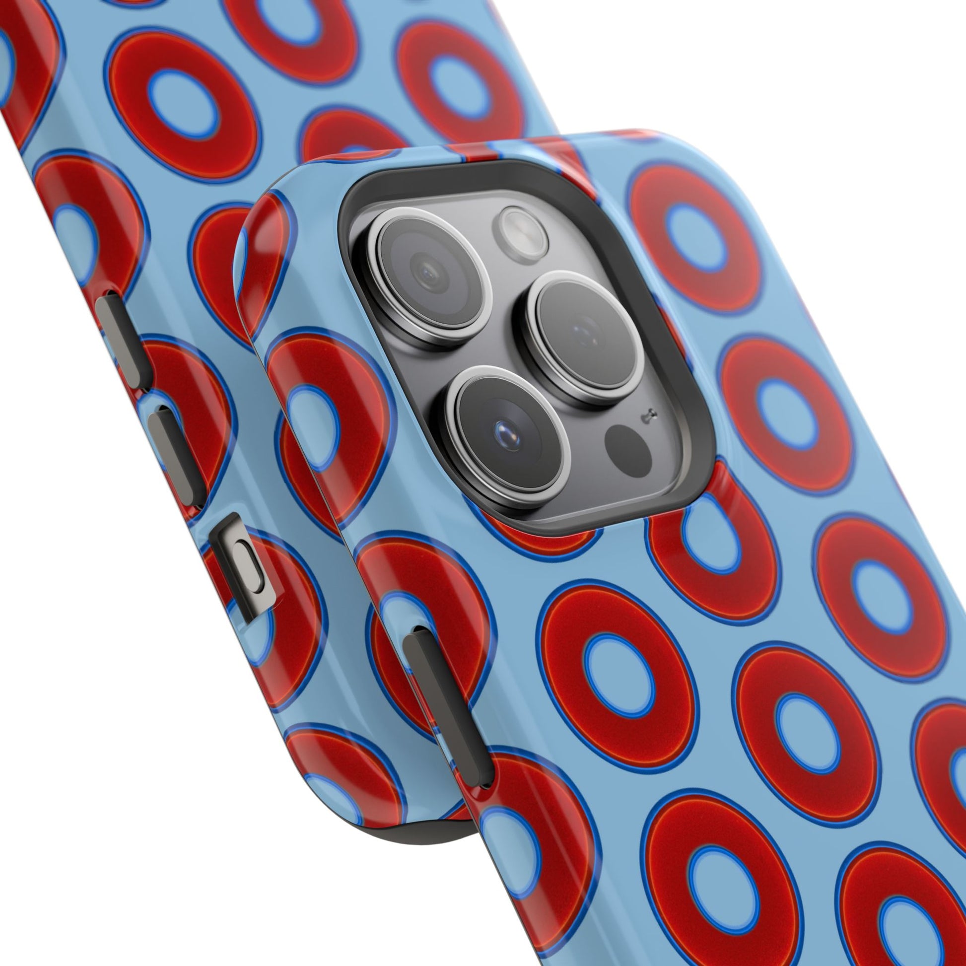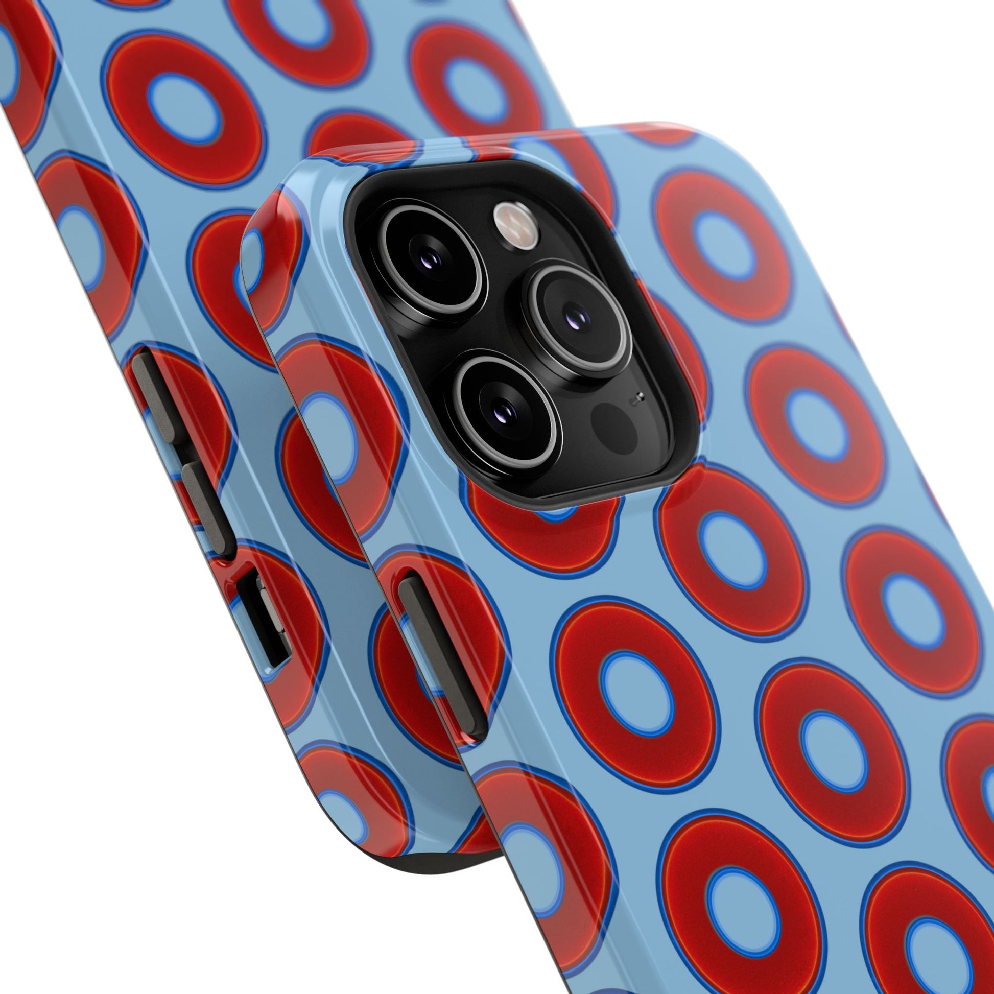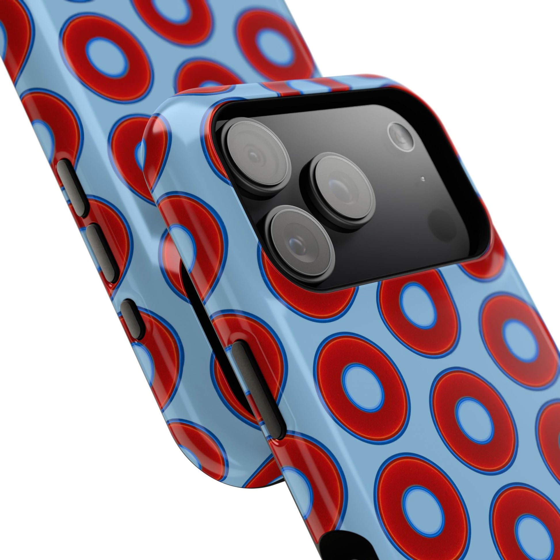 Impact-Resistant Lumpy Donut Case - red vivid donut print w/sky blue background