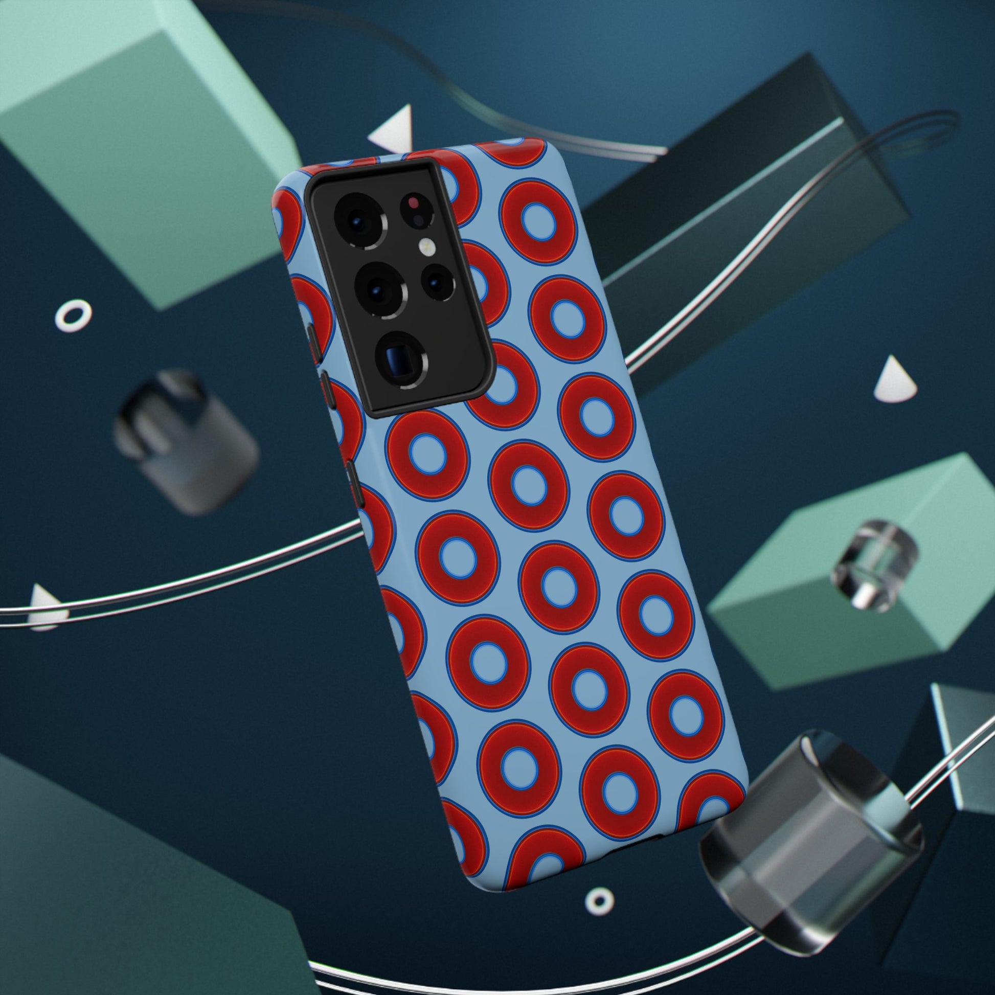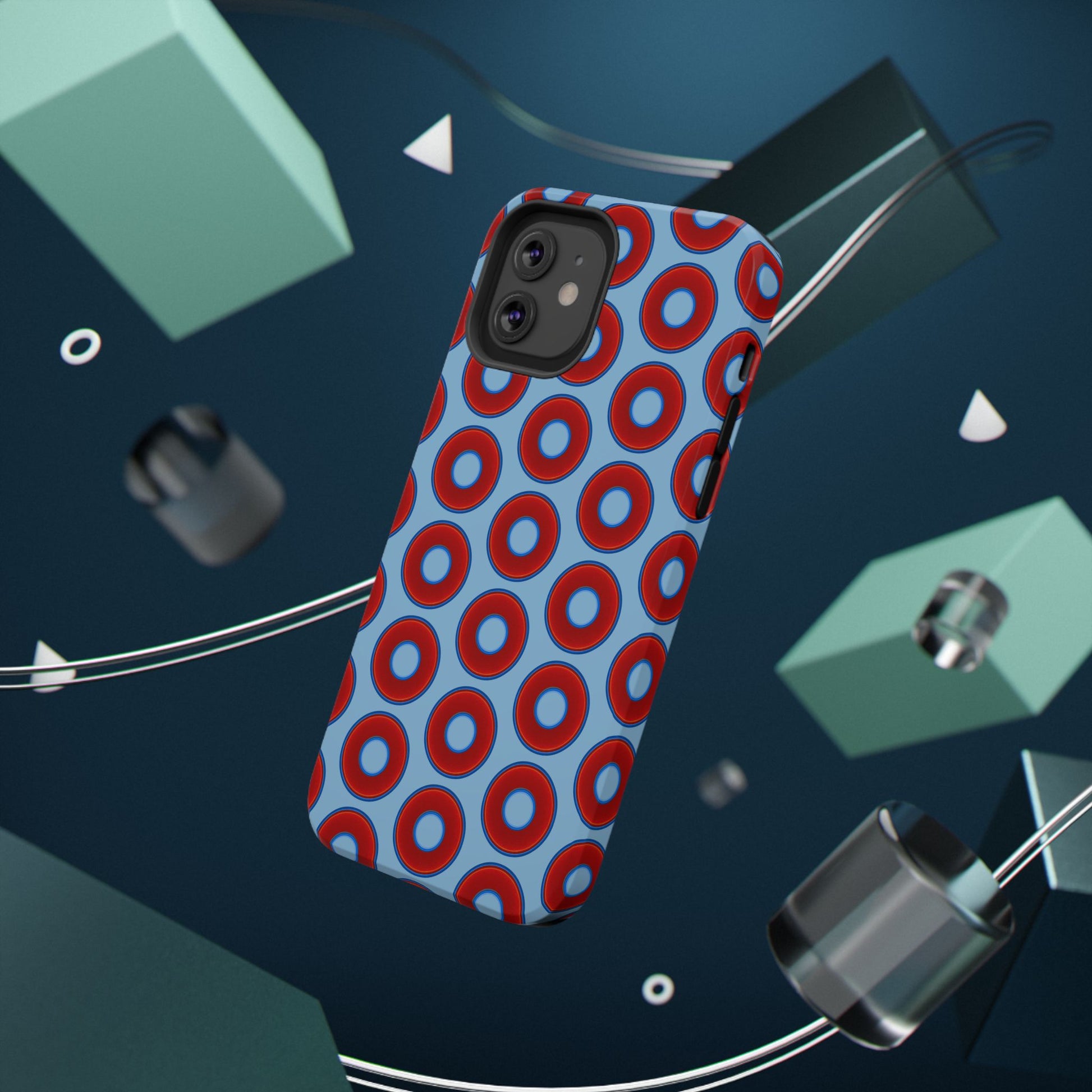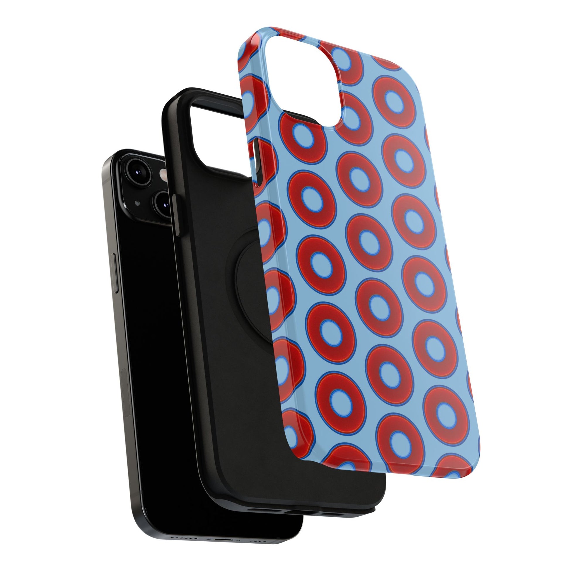 Impact-Resistant Lumpy Donut Case - red vivid donut print w/sky blue background