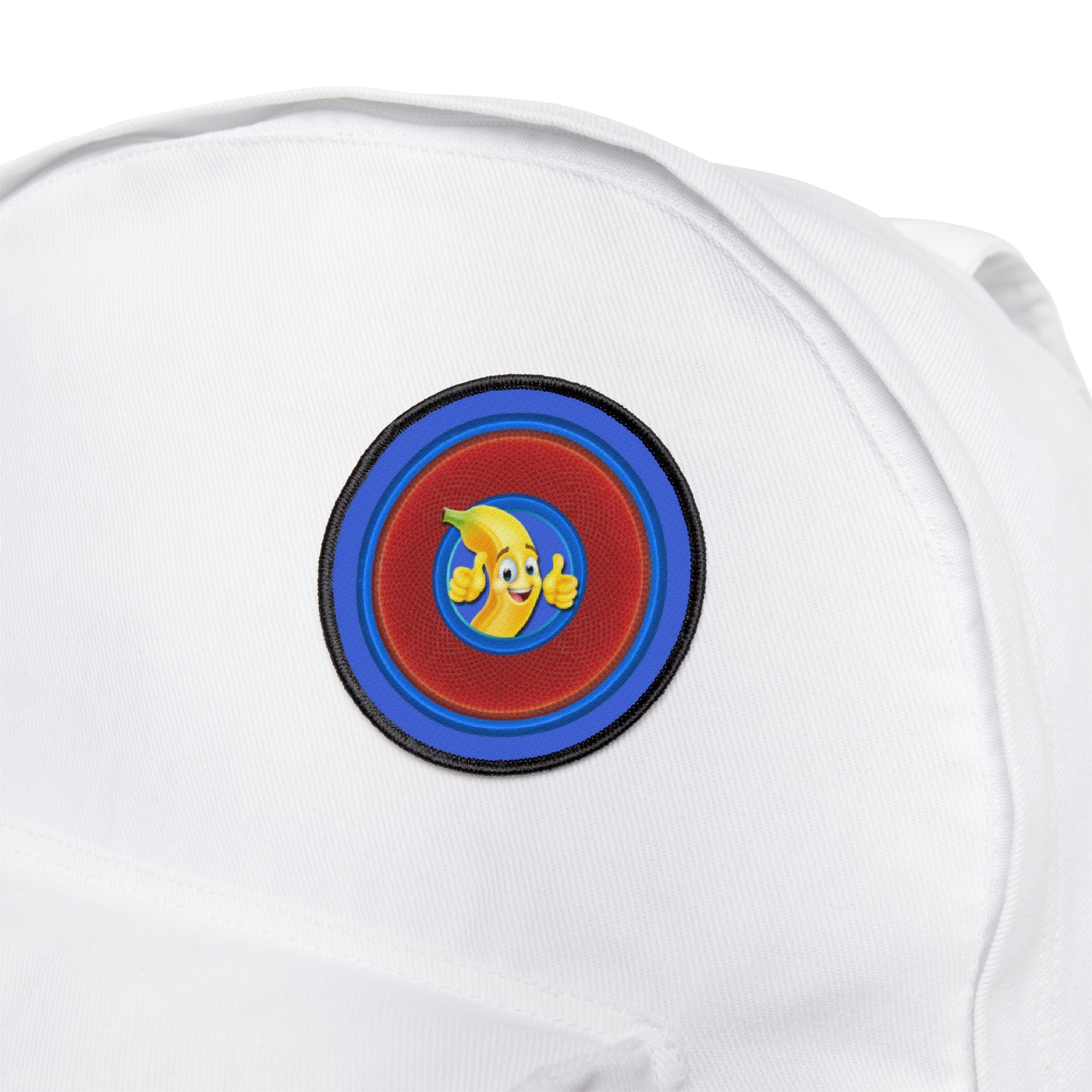 Iron-On Donut Patch - "Dis Sheet, it's Bananas" - variant 1 - red rustic donut