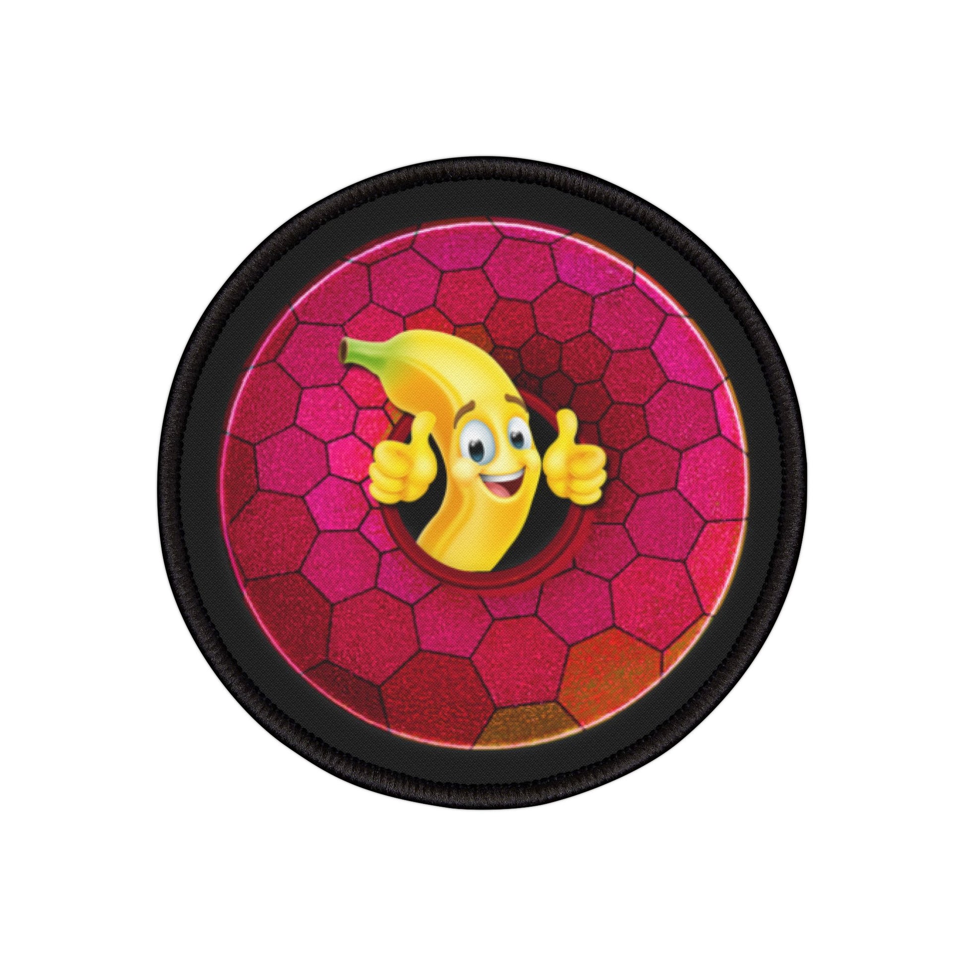 Iron-On Donut Patch - "Dis Sheet, it's Bananas" - variant 6 - magenta hexadonut