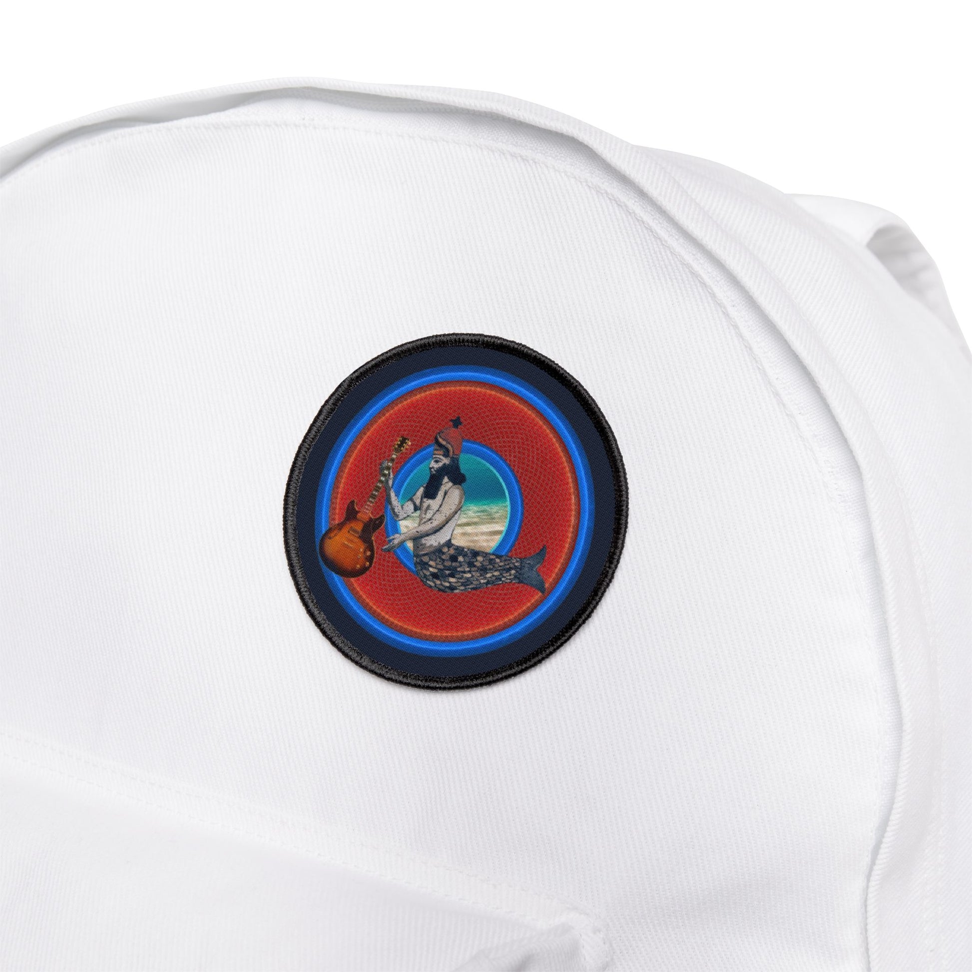 Iron-On Donut Patch - "Doggone Dagon Donut - The 1st Rockstar" - rustic red/blue donut - variant 4