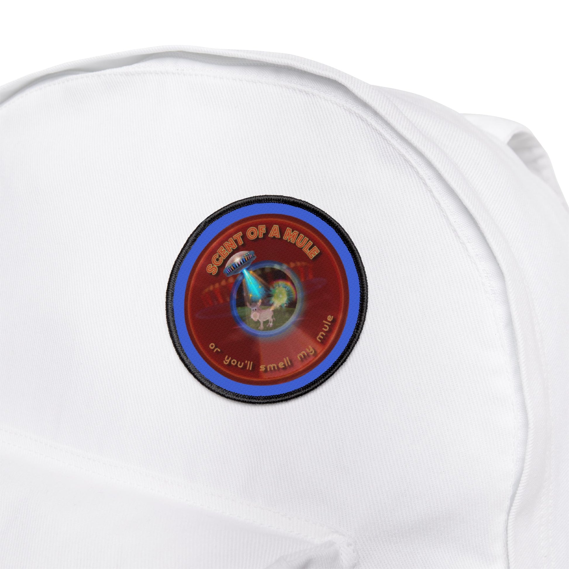 Iron-On Donut Patch - "Donut Patches? In Tomahawk County?" - vivid red donut - variant 4