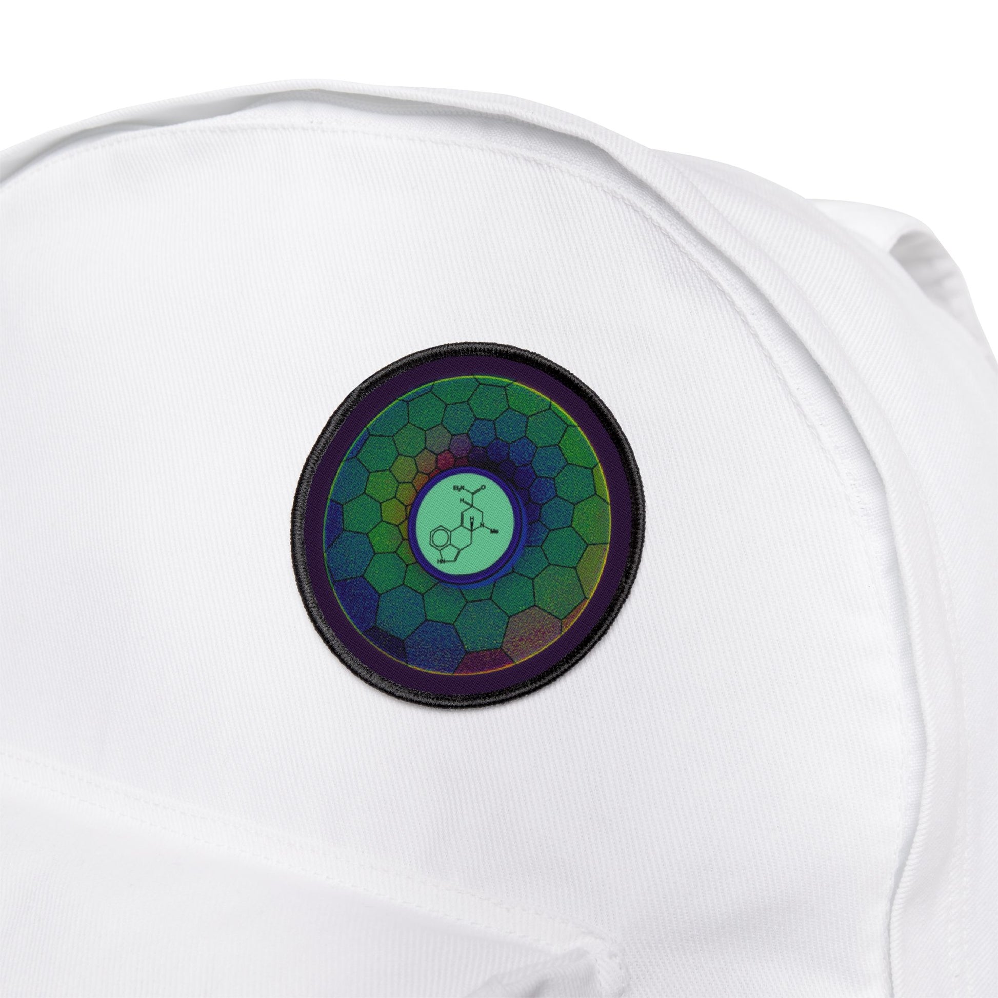Iron-On Donut Patch - "Dr. Albert Hofmann's Donut Patch" - green hexadonut - variant 3