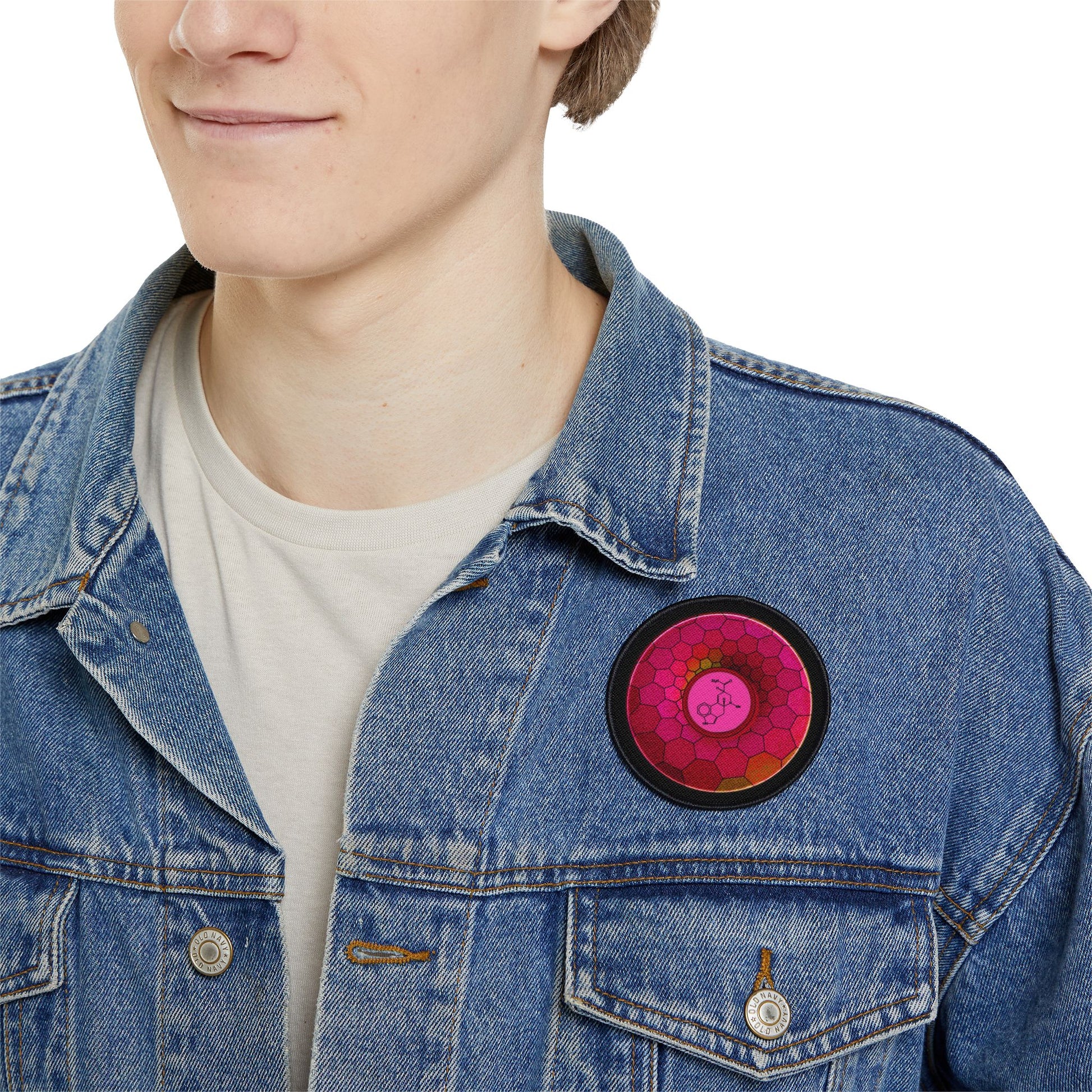 Iron-On Donut Patch - "Dr. Albert Hofmann's Donut Patch" - magenta hexadonut - variant 1