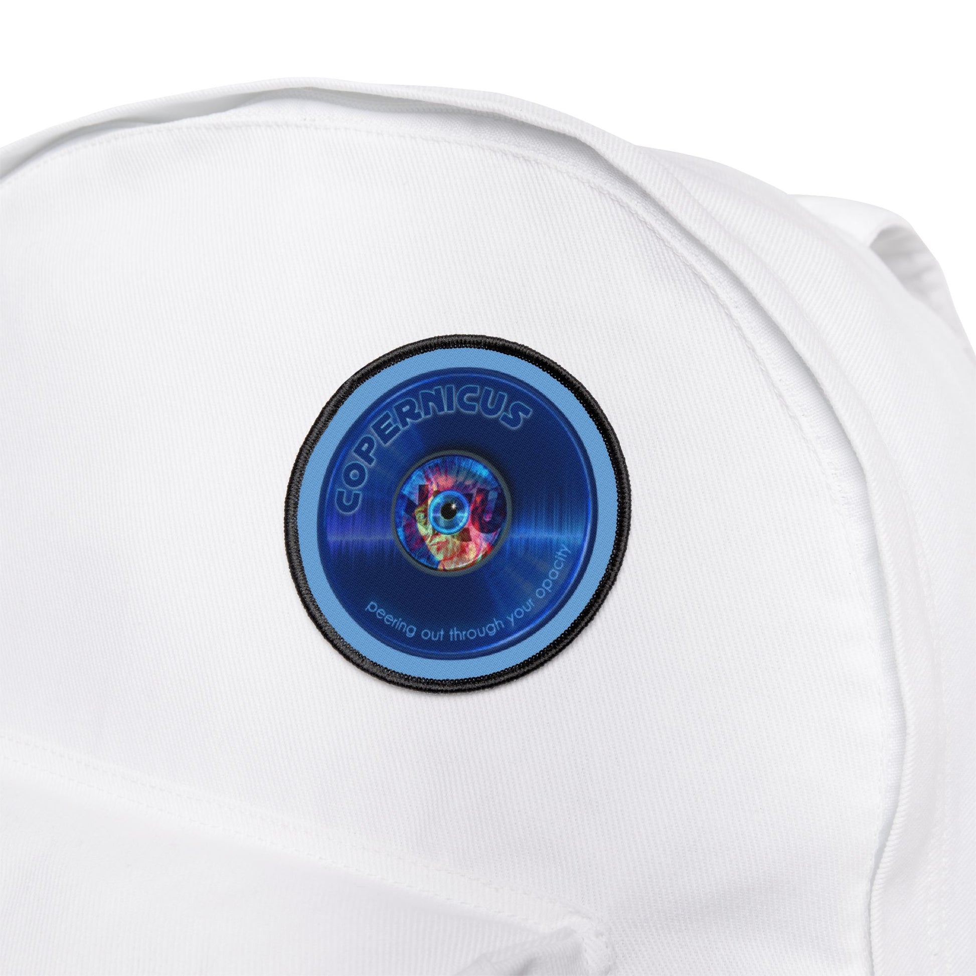 Iron-On Donut Patch - "Drunken Copernicus" - series 1.0 - variant 1 - blue record donut