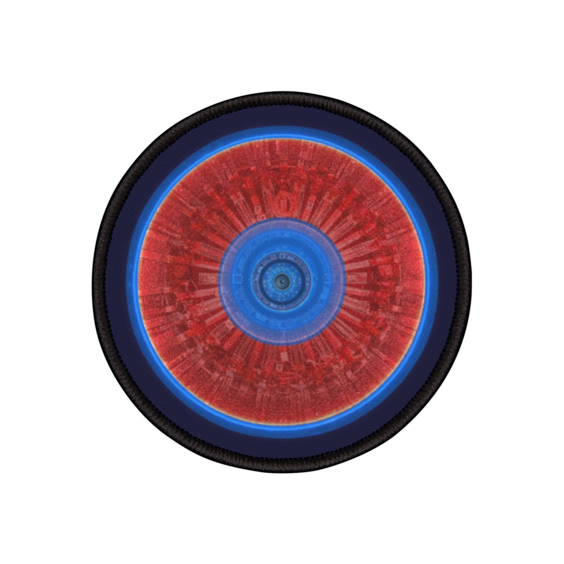 Iron-On Donut Patch - "Graphic Translation Donut Patch" - vivid red/blue tube donut - variant 1