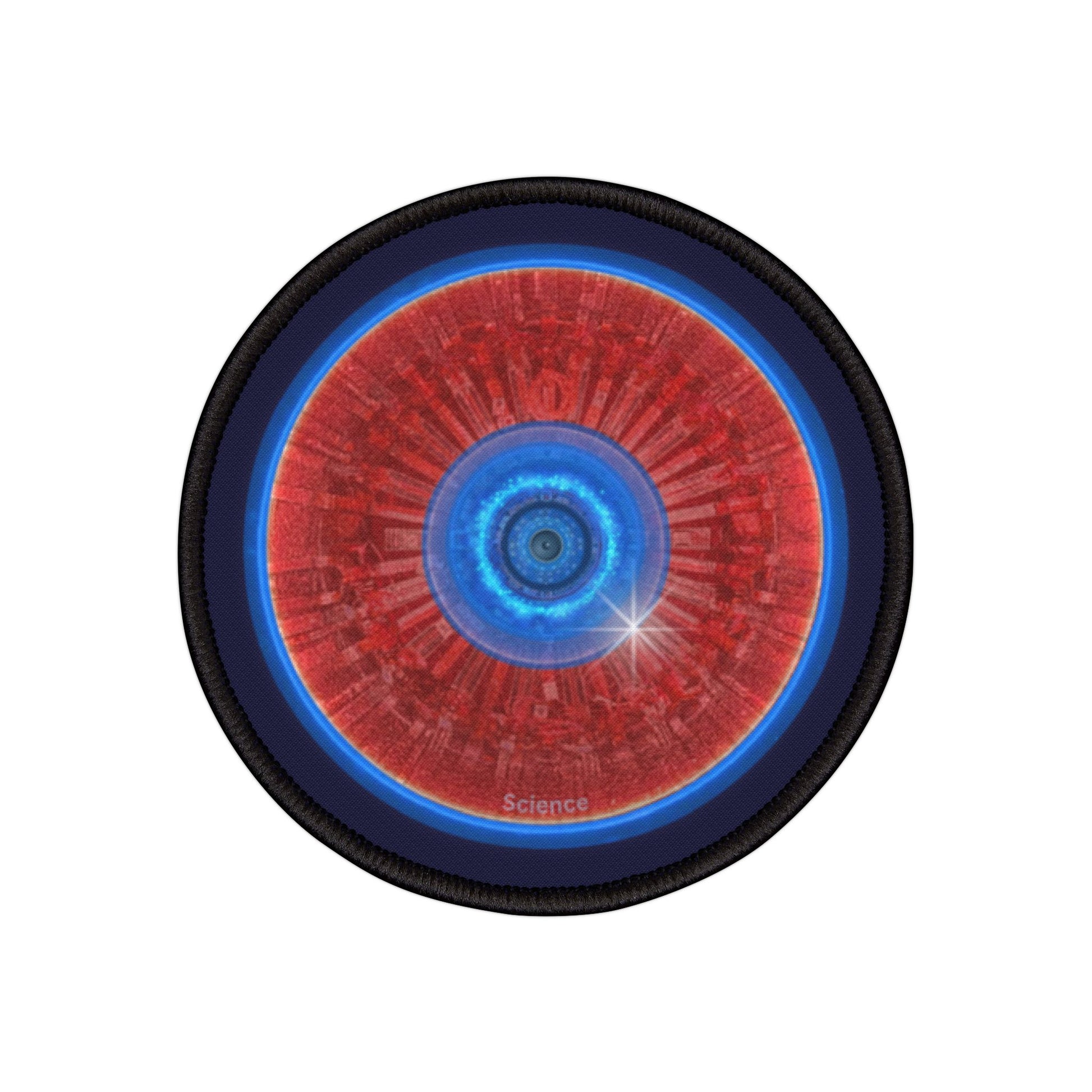 Iron-On Donut Patch - "Graphic Translation Donut Patch" - vivid red/blue tube donut - variant 3