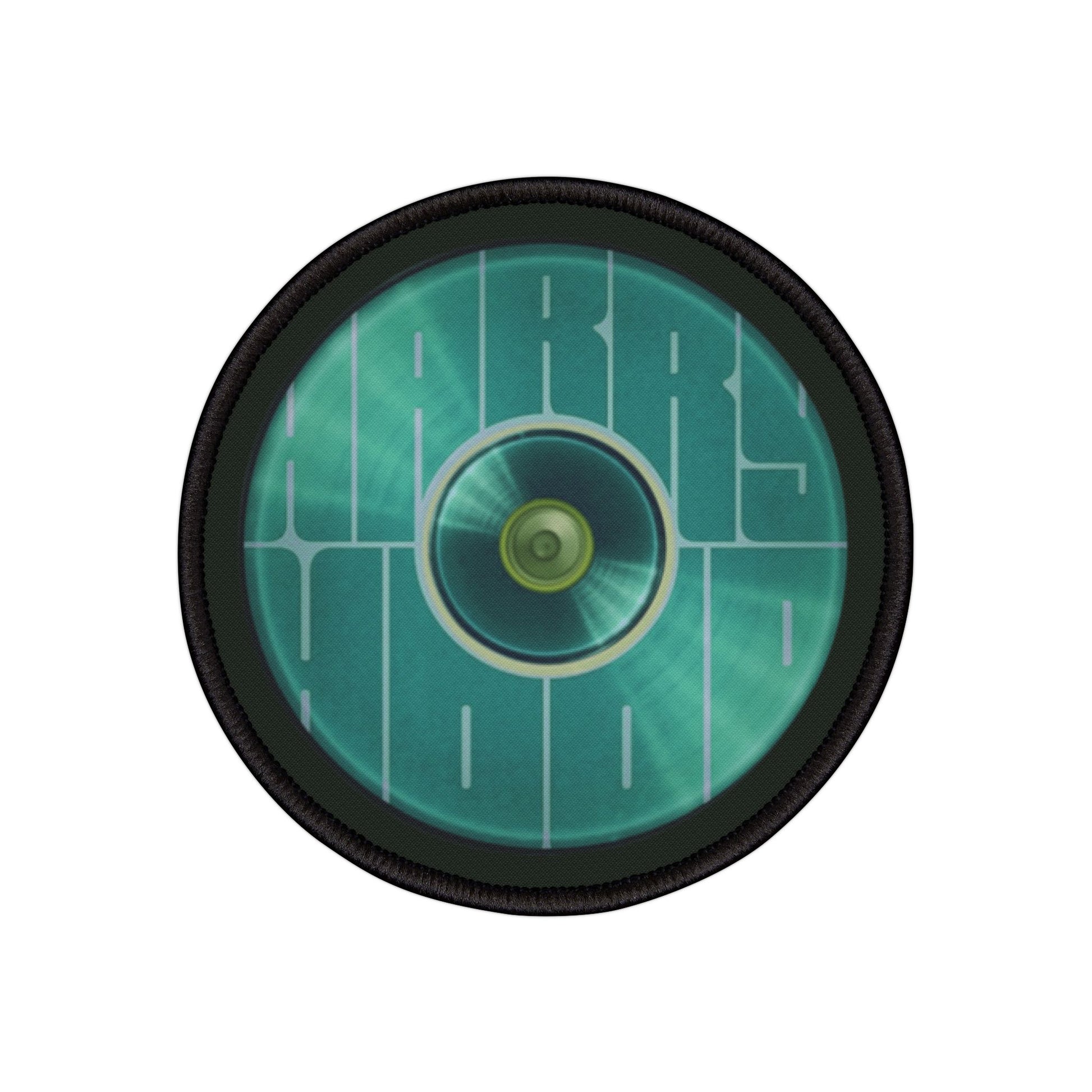 Iron-On Donut Patch - "Harry Hoodlum Donut Patch" - vivid green word donut - variant 2