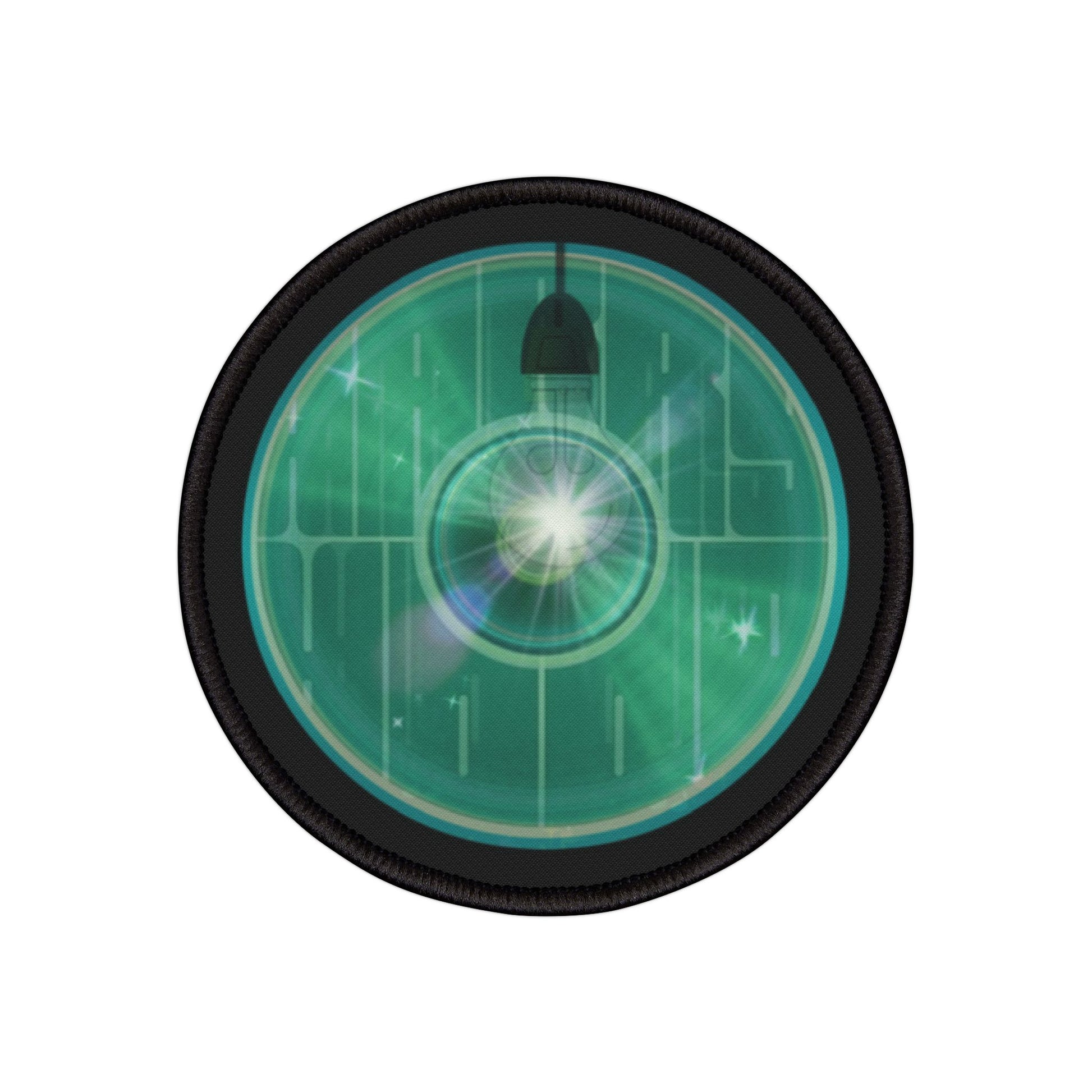 Iron-On Donut Patch - "Harry Hoodlum Donut Patch" - vivid green word donut - variant 3