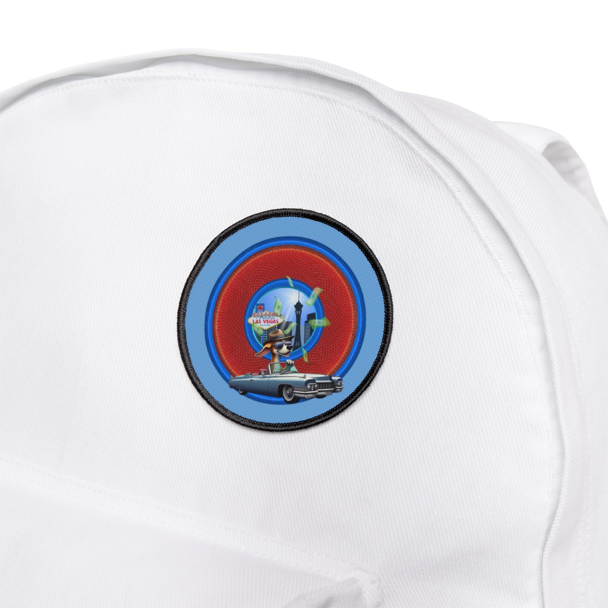 Iron-On Donut Patch - "Jimmy's Runaway Donut Patch" - rustic red/blue donut - variant 2
