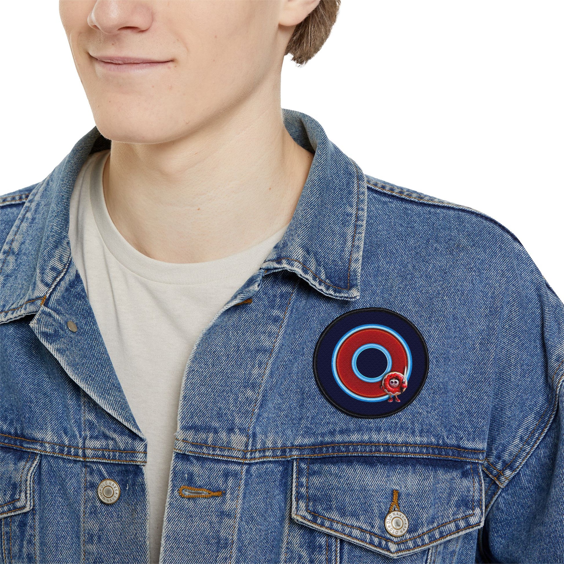 Iron-On Donut Patch - "My Phriend the Donut's Patch" - rustic red/light blue donut - variant 1