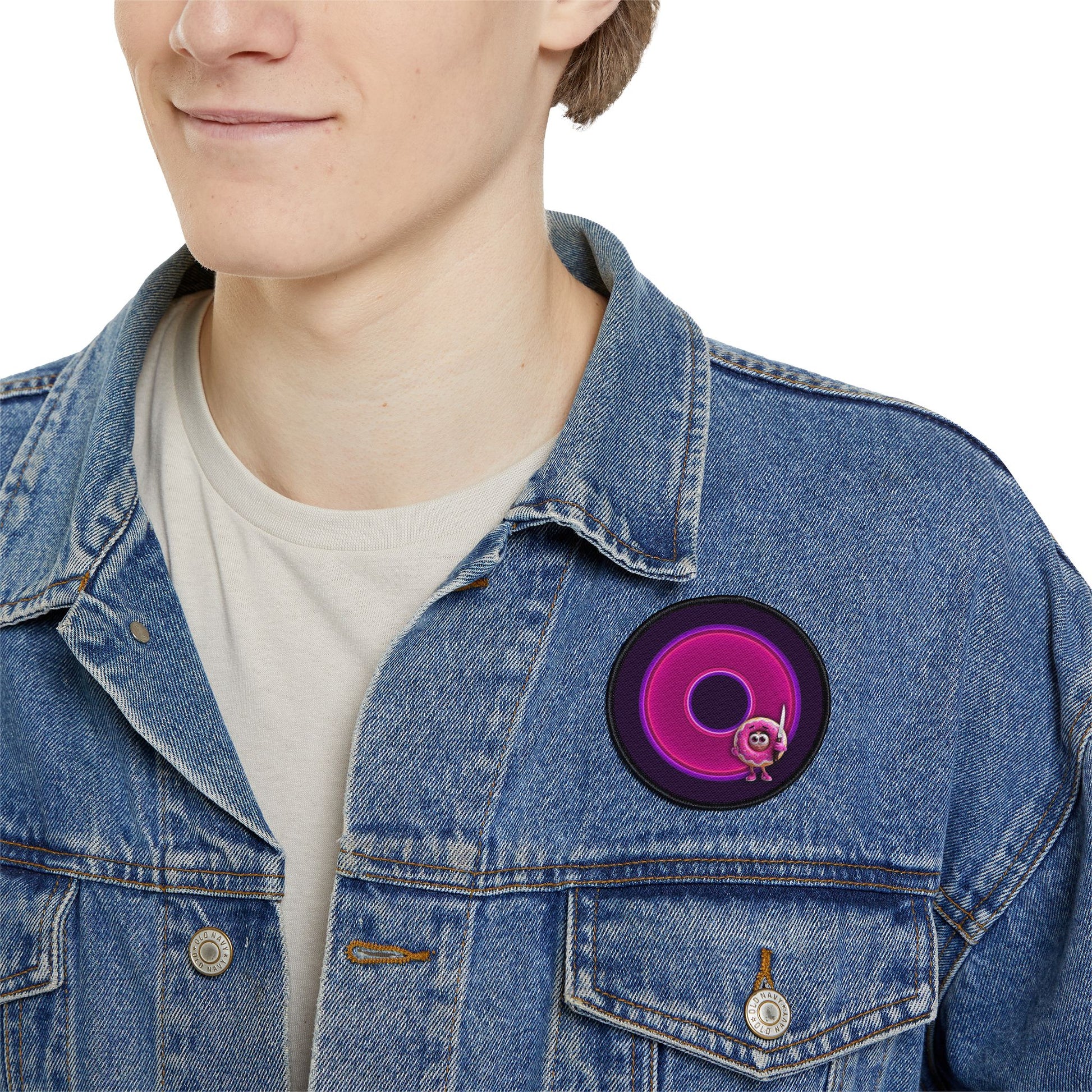 Iron-On Donut Patch - "My Phriend the Donut's Patch" - vivid magenta donut - variant 3