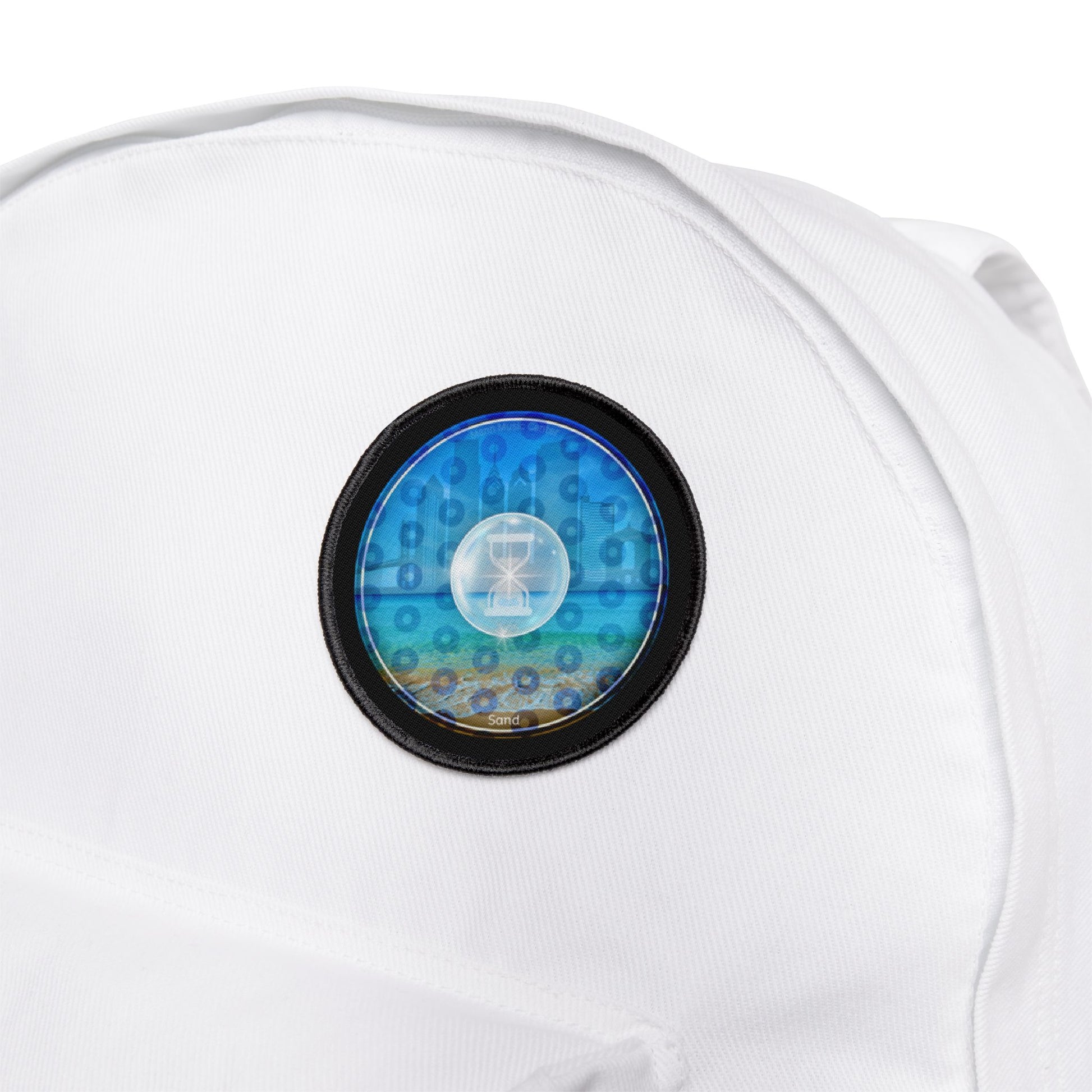 Iron-On Donut Patch - "Philly Special - Still Loading Sand" - vivid blue paradoxical pic donut - variant 1