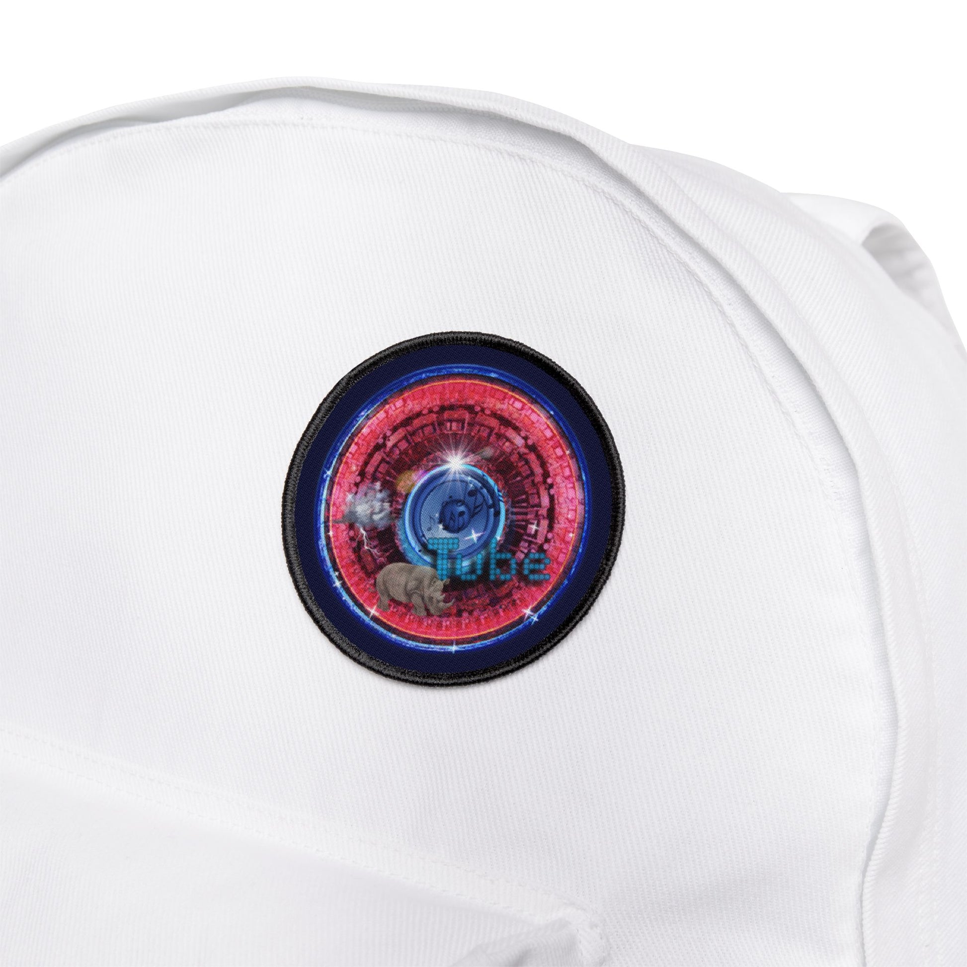Iron-On Donut Patch - "Rhino's Thunderous Donut" - vivid red/blue tube donut - variant 1